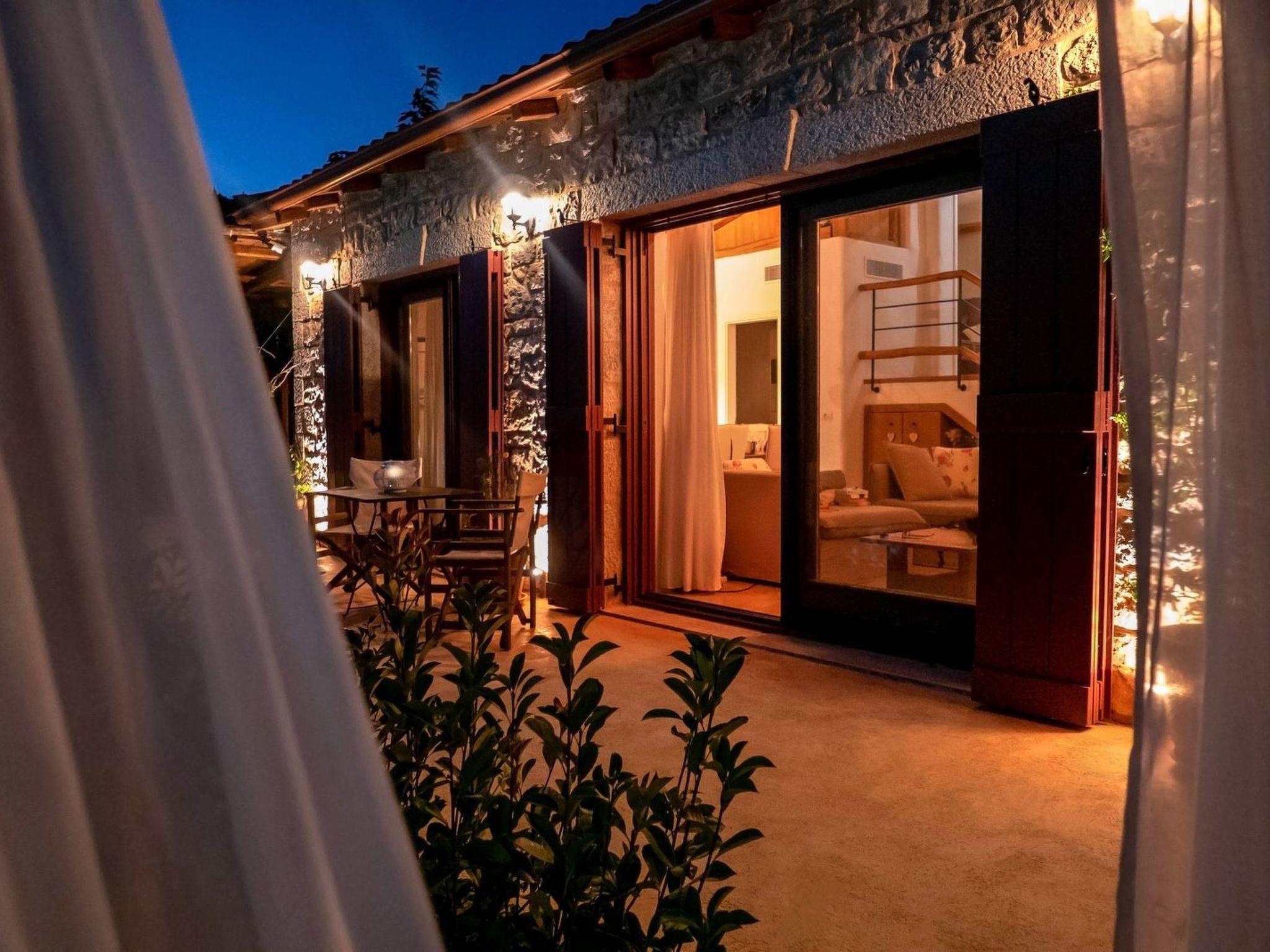 Luxury & Nature In the four acre land, having in mind the nature not to be violated and the residencies to be in harmony with it, earthy colors and natural materials are chosen while the flora of the surrounding space is preserved hiding them literally in the bosom of the hill. Natural stone benches, different levels, paths, olive trees, vegetable gardens, fruit-baring trees, beautiful corners hidden or visible ones, compose the main parts of the property. The individual stone residencies with the modern equipment, the spacious patios and the private swimming pools compose a discreet luxury.