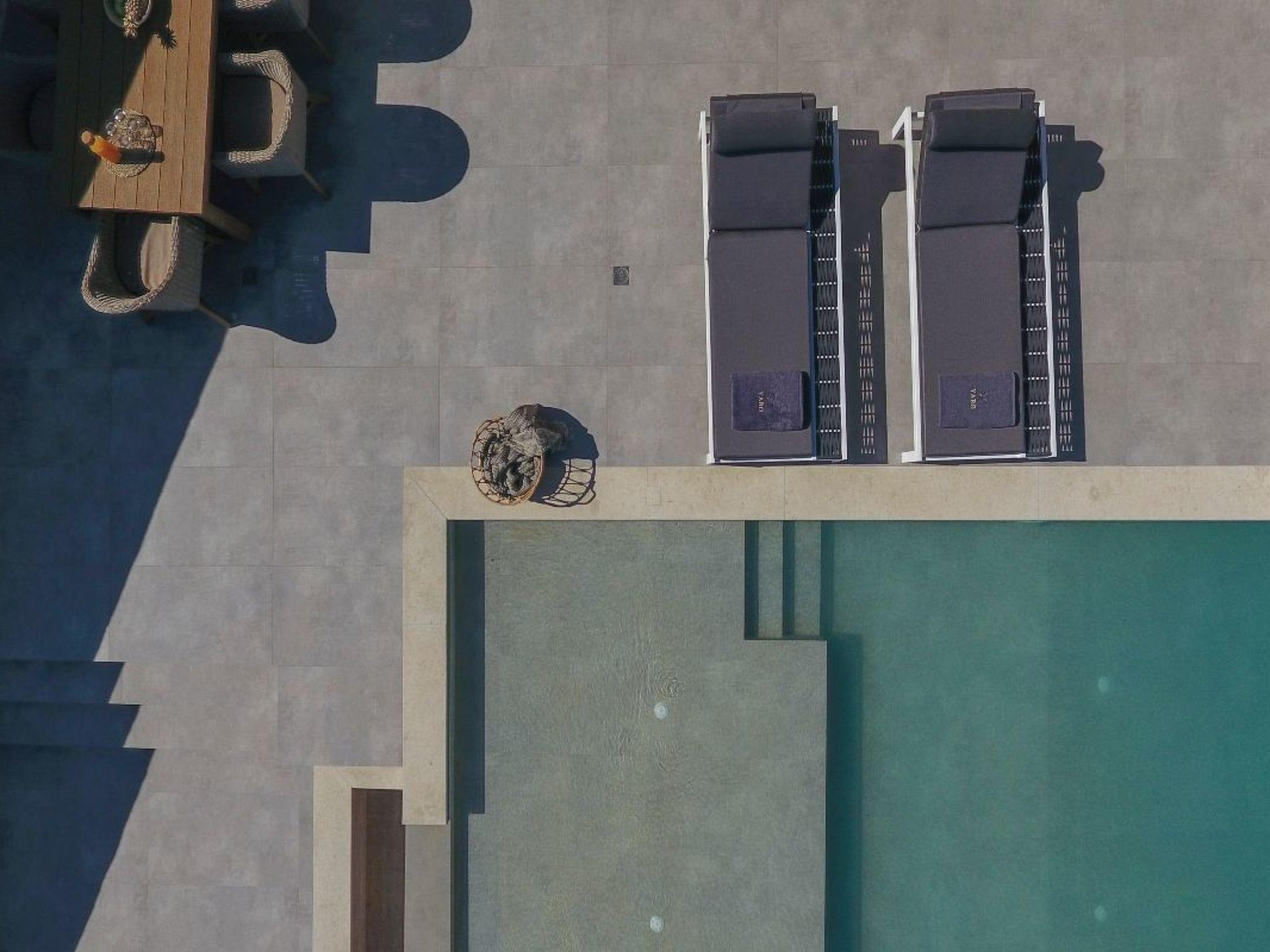 The outdoor space of Villa Rona encapsulates tranquility and refined simplicity, using natural elements like marble, granite, and wood to create a serene haven. The heart of this oasis is the swimming pool, boasting an infinity view that merges seamlessly with the horizon, enhancing the zen-like atmosphere. The outdoor dining experience is elevated by panoramic views and the subtle presence of indigenous plants, offering a unique opportunity to enjoy a sunset dinner. Additionally, the villa’s barbecue facilities promise memorable feasting experiences, whether it be grilling vegetables for a light meal or preparing a sumptuous feast for friends and family.