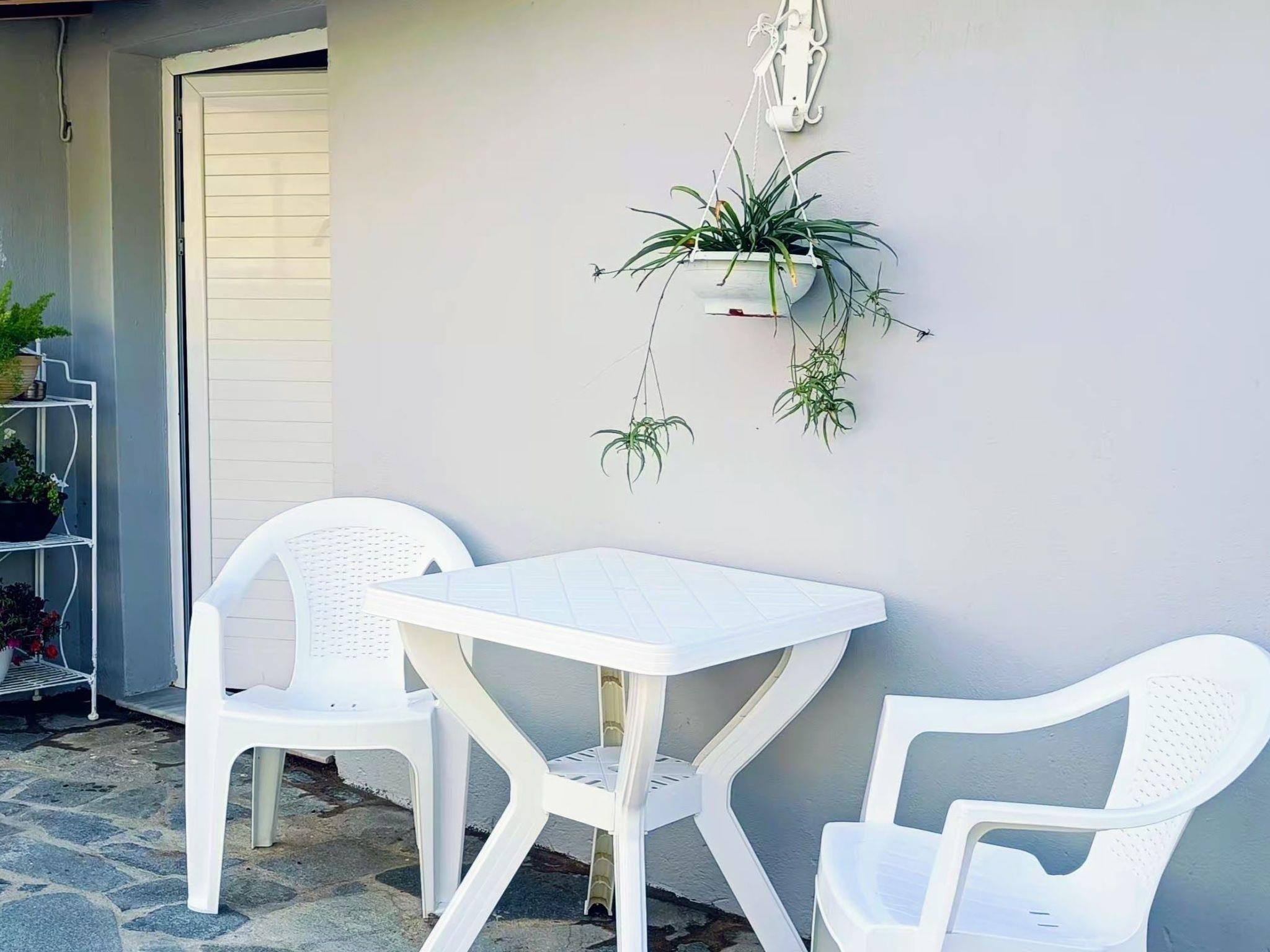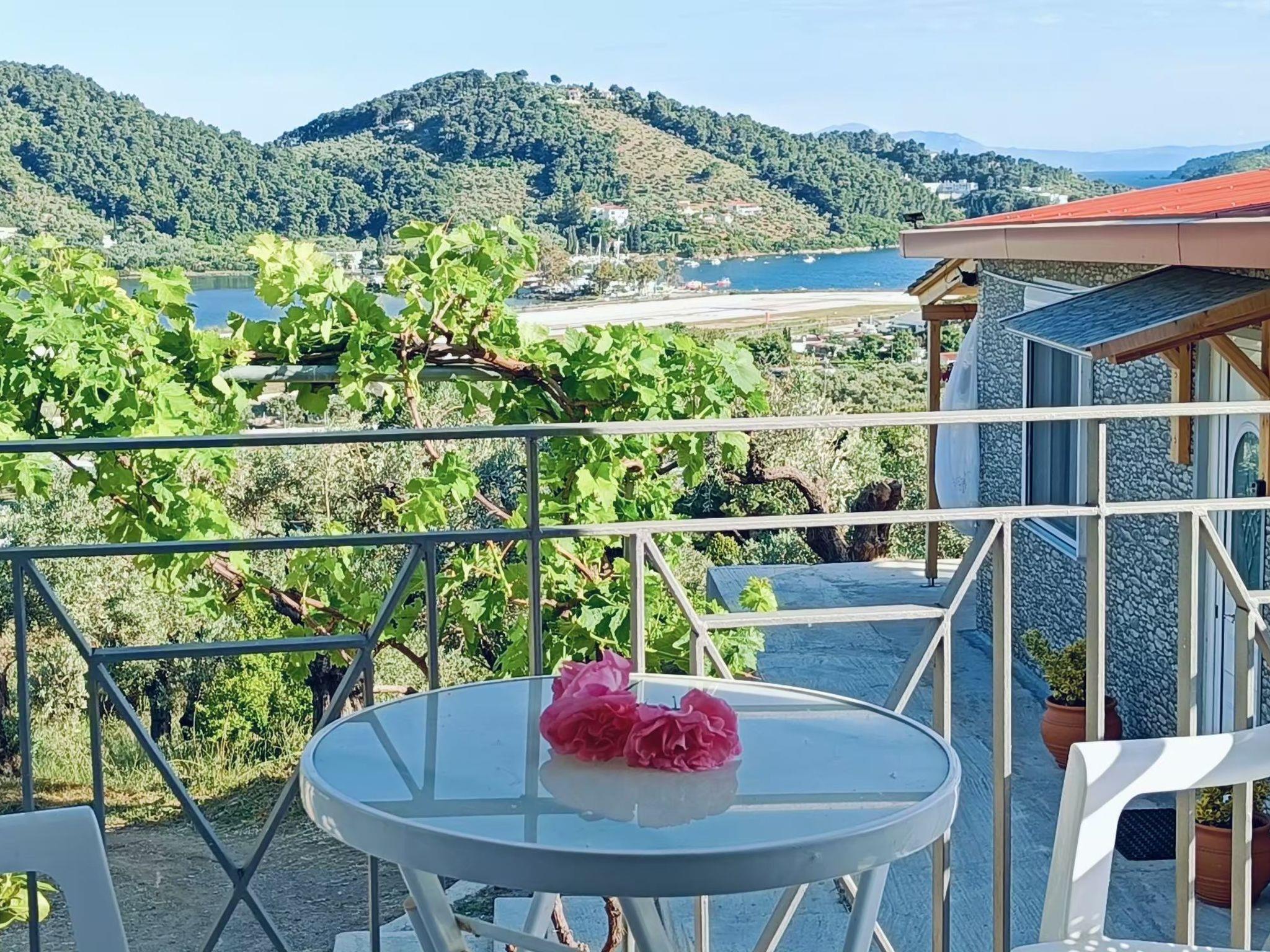 Outside, the communal garden is a verdant oasis where you can unwind and reconnect with nature. The balcony, a prime spot for taking in the awe-inspiring views, becomes your personal lookout to the dynamic landscape below, including the fascinating activity of Skiathos Airport's runway. It's the perfect setting for leisurely breakfasts or evening drinks, enveloped by the serene atmosphere of the island.