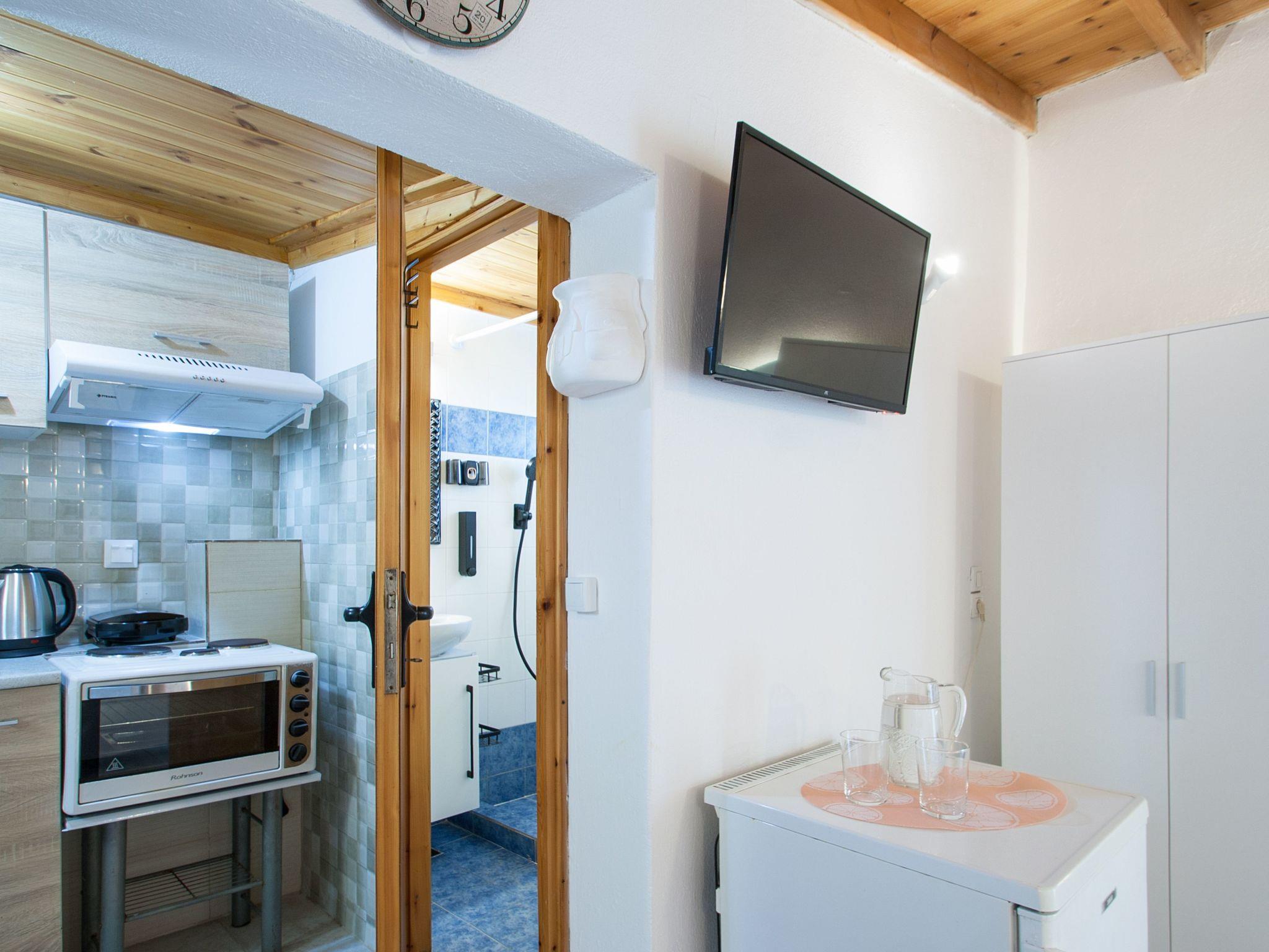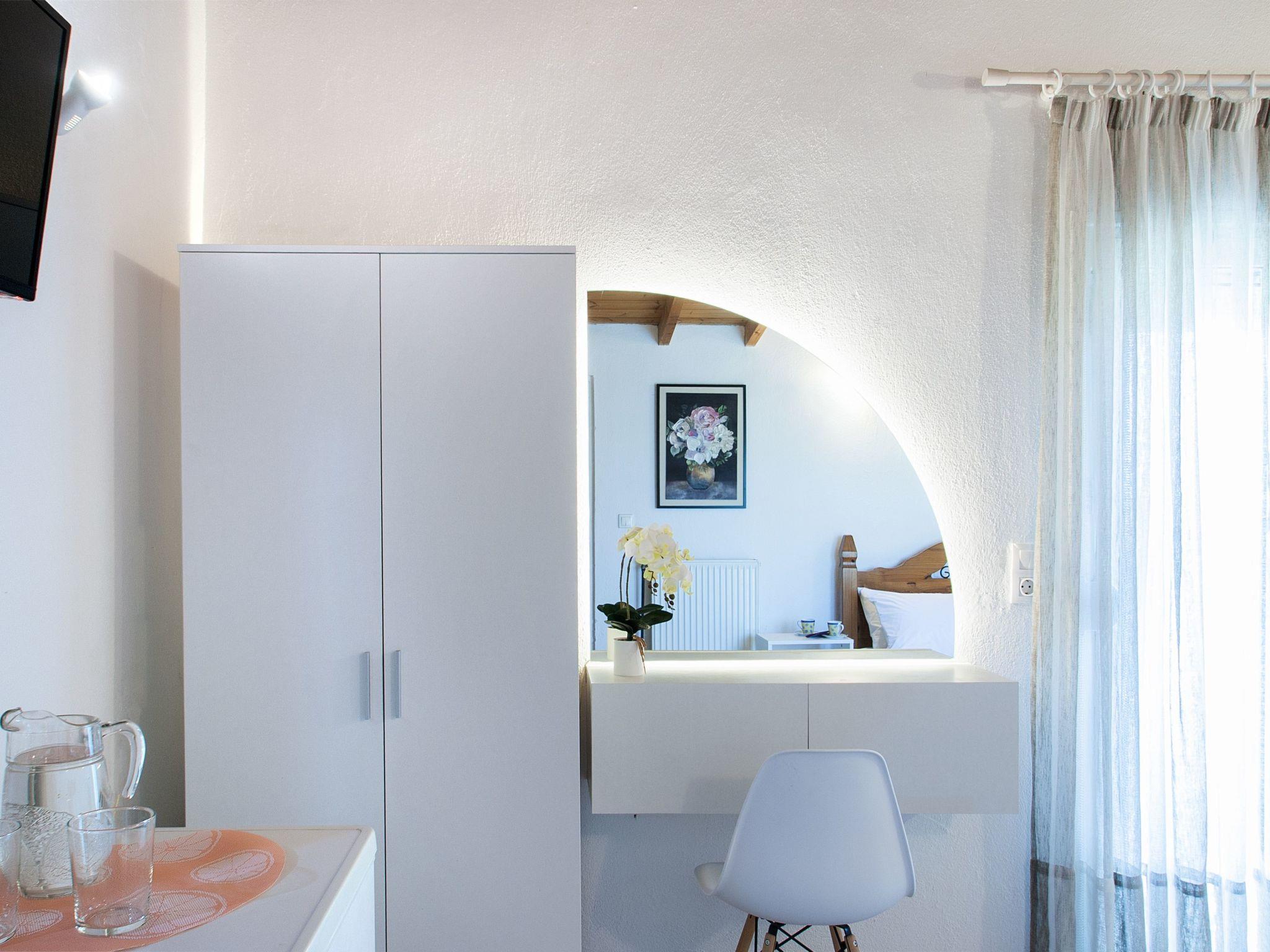 Inside, the apartment is equipped with everything you need for a comfortable stay. Air conditioning ensures the space remains cool and inviting throughout your visit, making it a refreshing haven to return to after a day under the Aegean sun. For your convenience, a mini oven and an electric kettle are available, allowing you to prepare light meals and beverages with ease. Additionally, the washing machine for your sole use adds an element of home-like comfort, ensuring you have everything you need right at your fingertips.