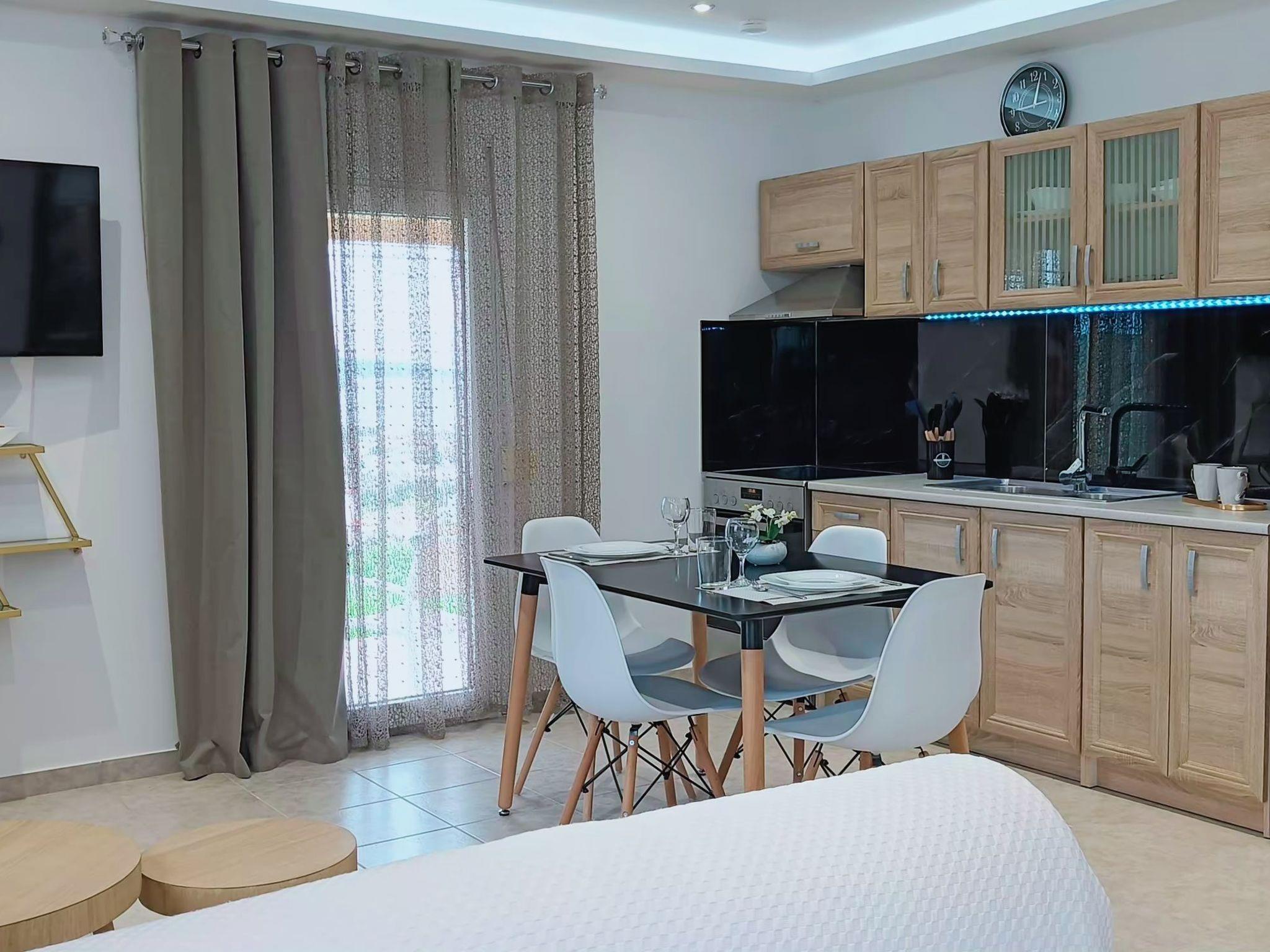 Step outside onto the terrace and you're greeted by a vista that captures the essence of Skiathos - the juxtaposition of sea and mountain, along with the exciting view of airplanes as they ascend and descend from the nearby runway. The outdoor area also features a garden for communal use, offering a perfect spot for relaxation amidst greenery and fresh air. Whether you're looking to unwind with a book or sip on a glass of wine as the day fades, the outdoor spaces provide the ideal setting.