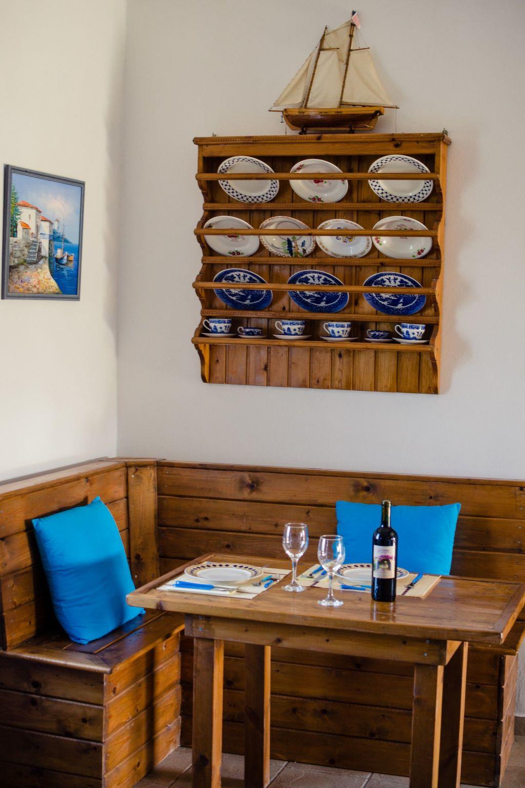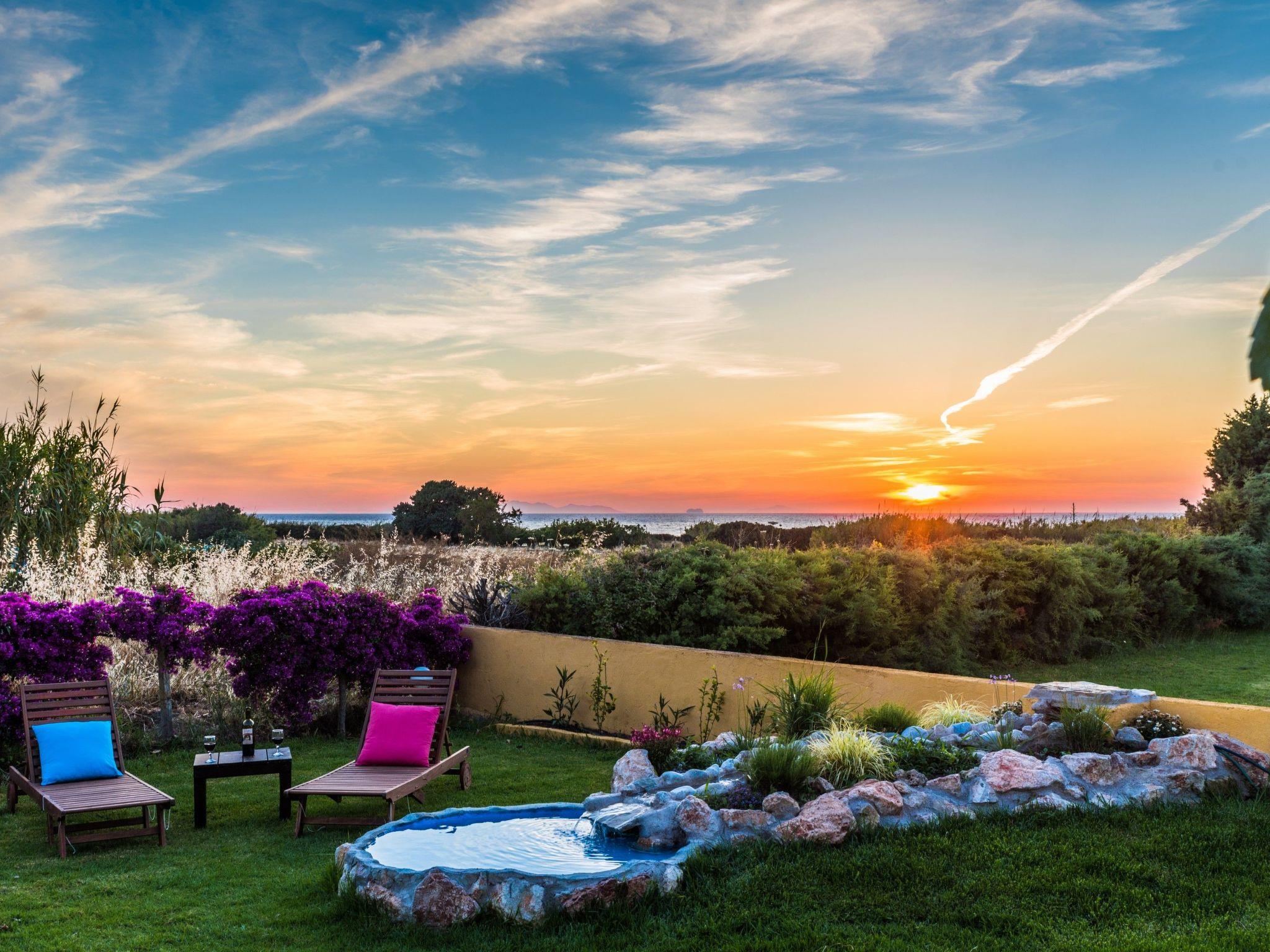 Outside the villa, a large shady veranda with a view to the sea makes al fresco dining or evening drinks a delight. In the front yard, a perfectly decked out BBQ area with a traditional village oven is at the disposal of our guests. At the entrance of the property there is ample space for car parking, and next to the driveway there are lawns where one can play volleyball or other fun sports, enjoy a nap in the hammock, or soak in the sun on the loungers.