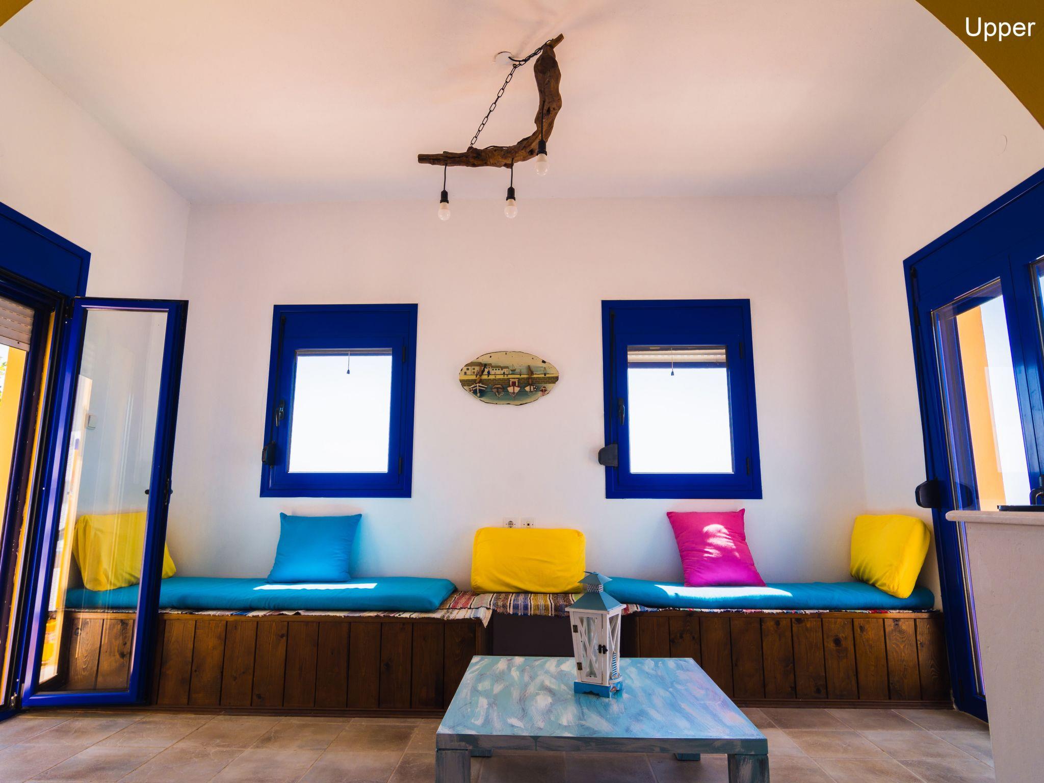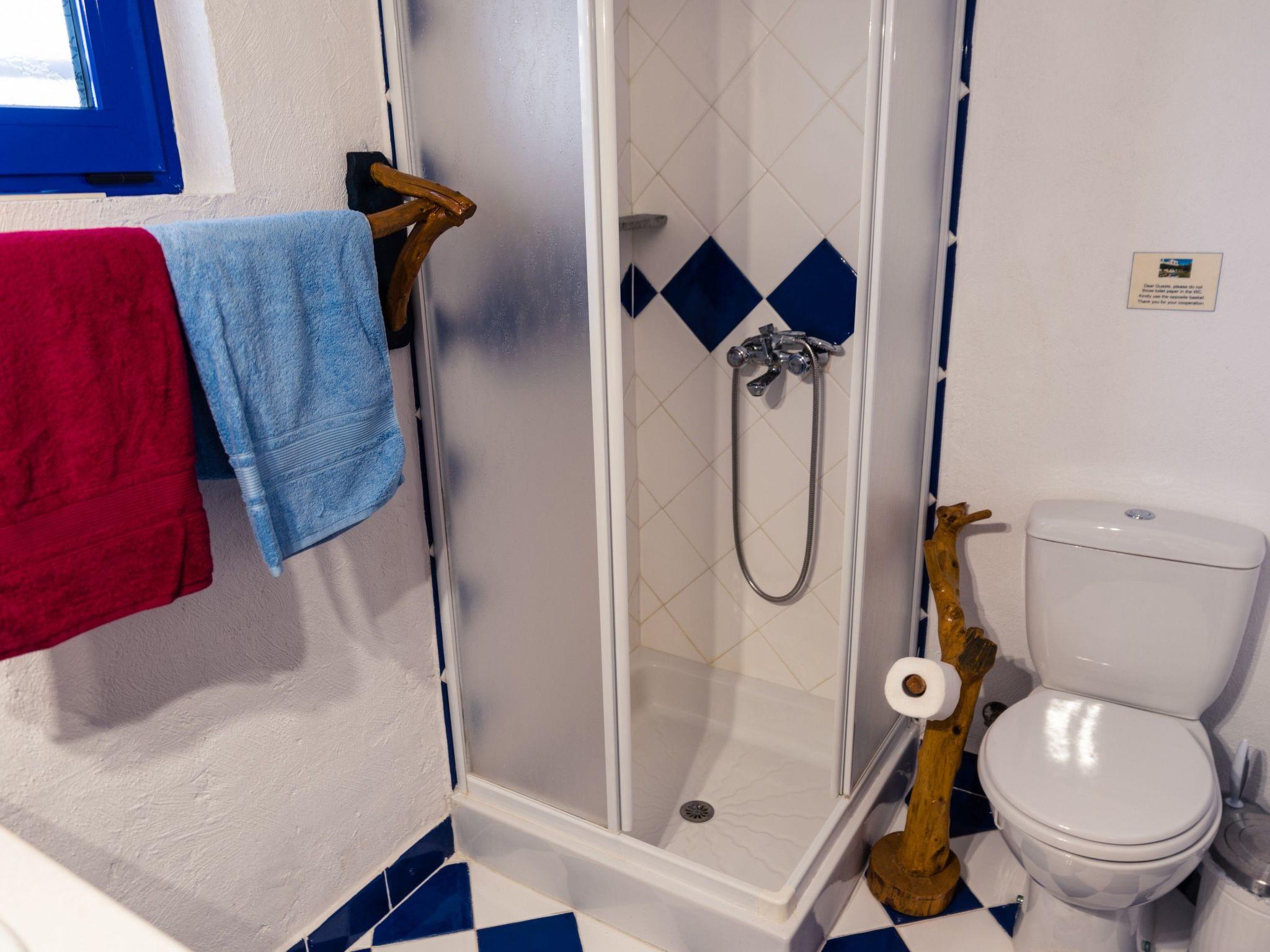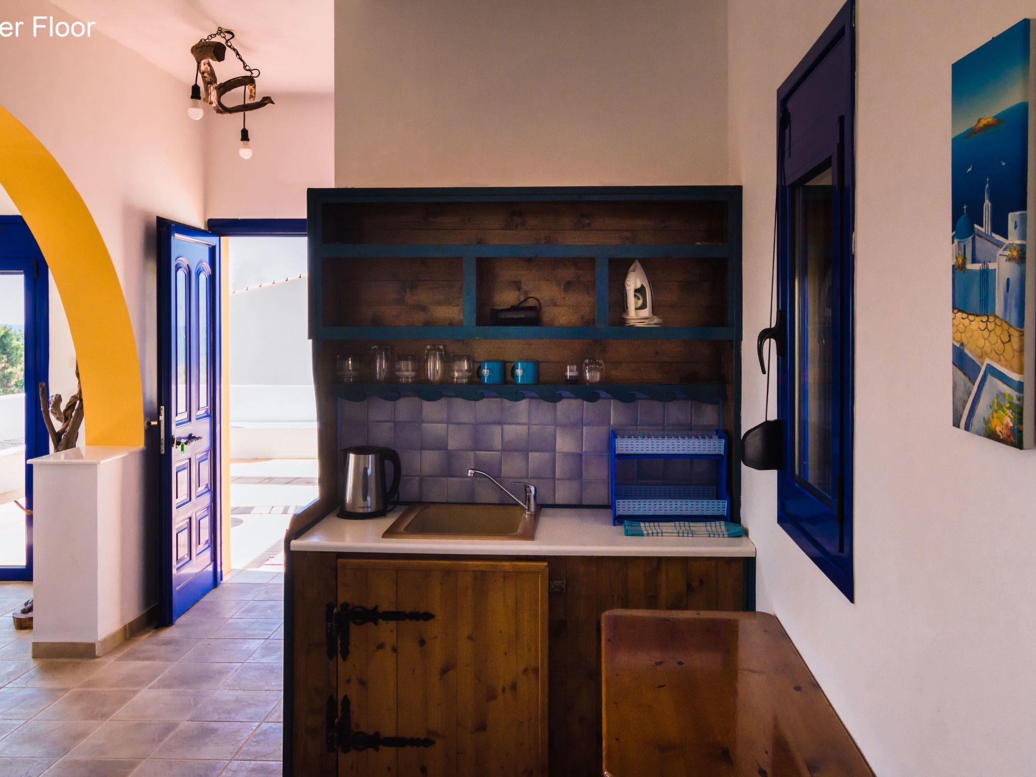 The interior of Villa Marqua includes two enchanting bedrooms fashioned in the customary island style with traditional handmade king size beds offering their occupants the tranquility and rest they need on their vacation. An open-plan room includes a spacious lounge area with fireplace, stereo sound system and flat screen television for countless moments of relaxation, as well as a fully equipped country style kitchen where our guests are invited to try out their culinary skills. A cozy rustic dining area is located in the same space.