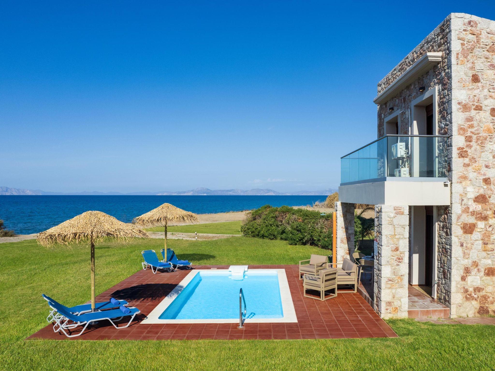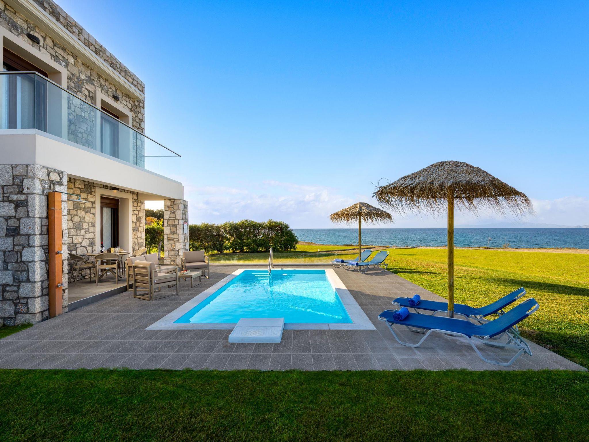 The decoration is simple, practical and comfortable. On the first floor of Attalos Villa there are 2 fully air-conditioned bedrooms with double beds on the first floor. Also, on the ground floor there’s a comfy double sofa bed in the living room. There is a bathroom with a shower in each floor. The kitchen is fully equipped and suitable for any meal preparation and shares the space with the beautiful living room and the peaceful dining area. Guests will find a screen TV with satellite channels and free Wi-Fi access throughout the property. Outdoors, there’s an incredible private swimming pool with its sunbeds where you can relax under the Aegean sun. The sea view is quite mesmerizing and unique. Guests will have the opportunity to sit and relax at the patio and enjoy the BBQ facilities.