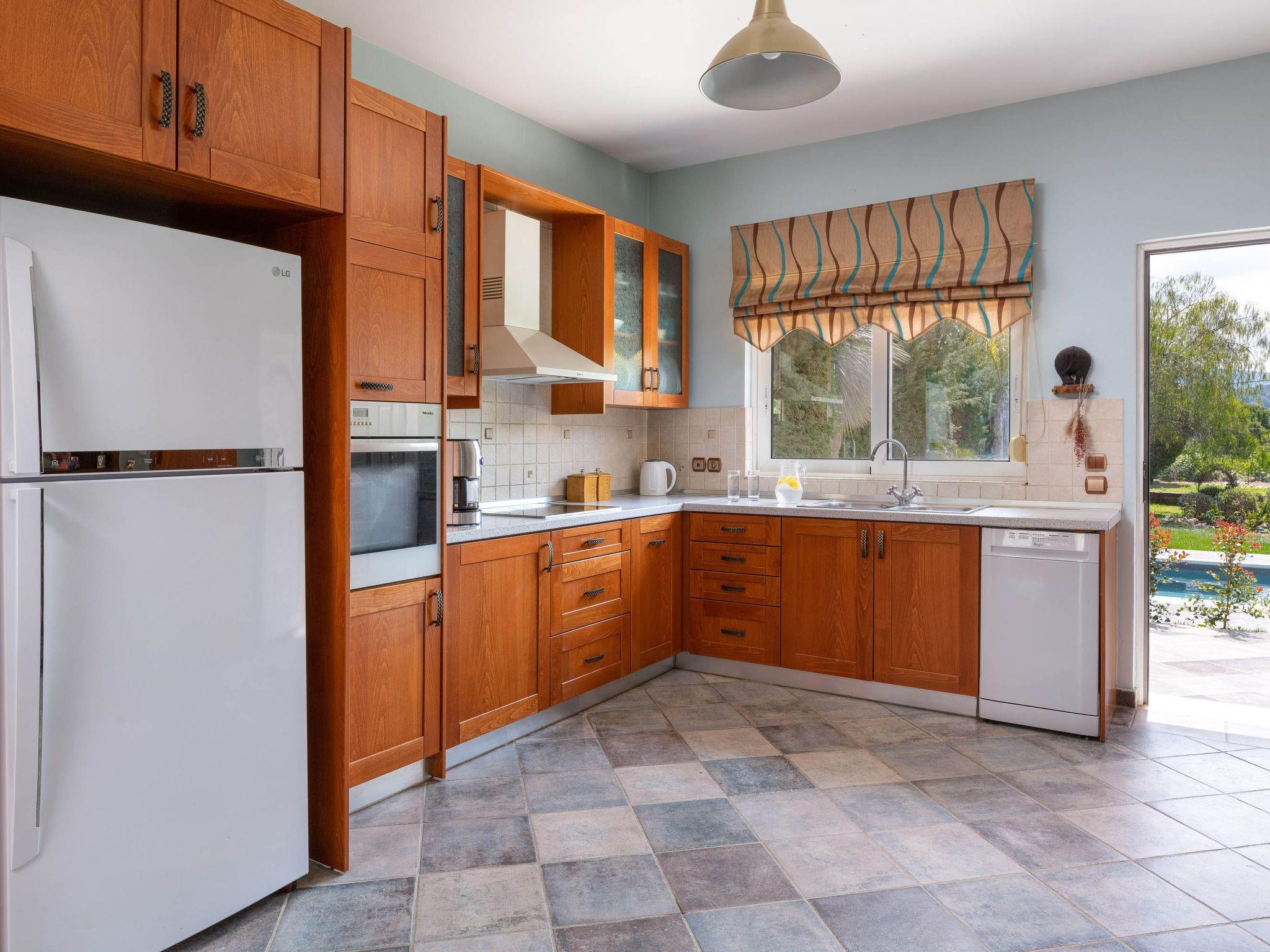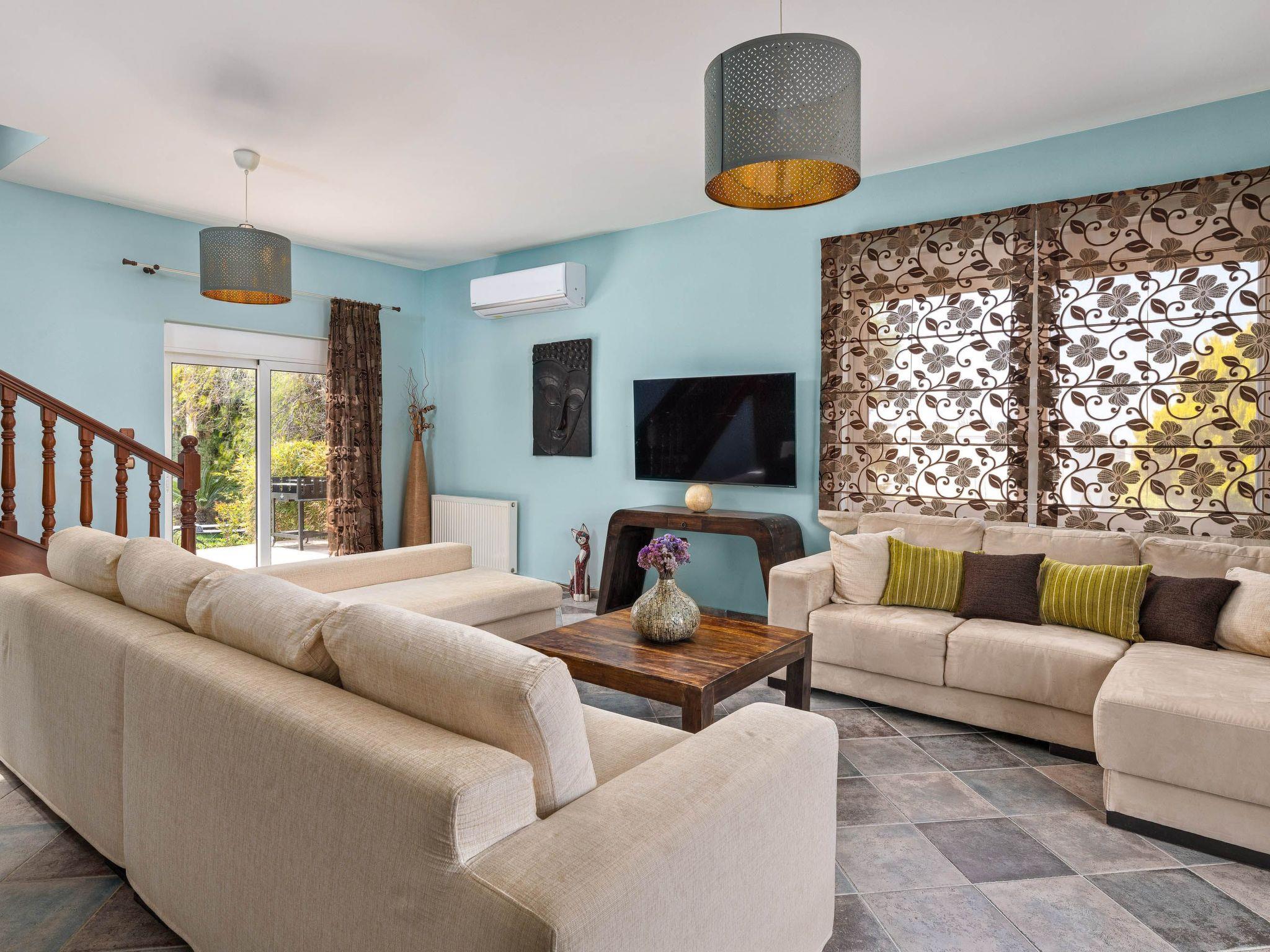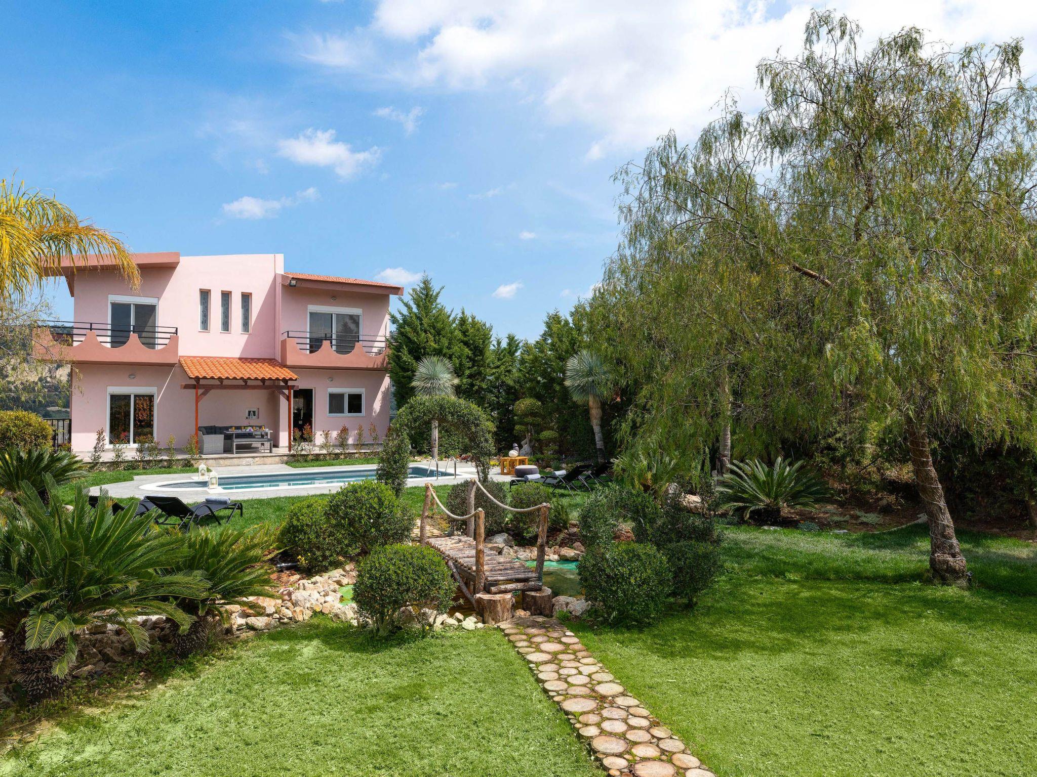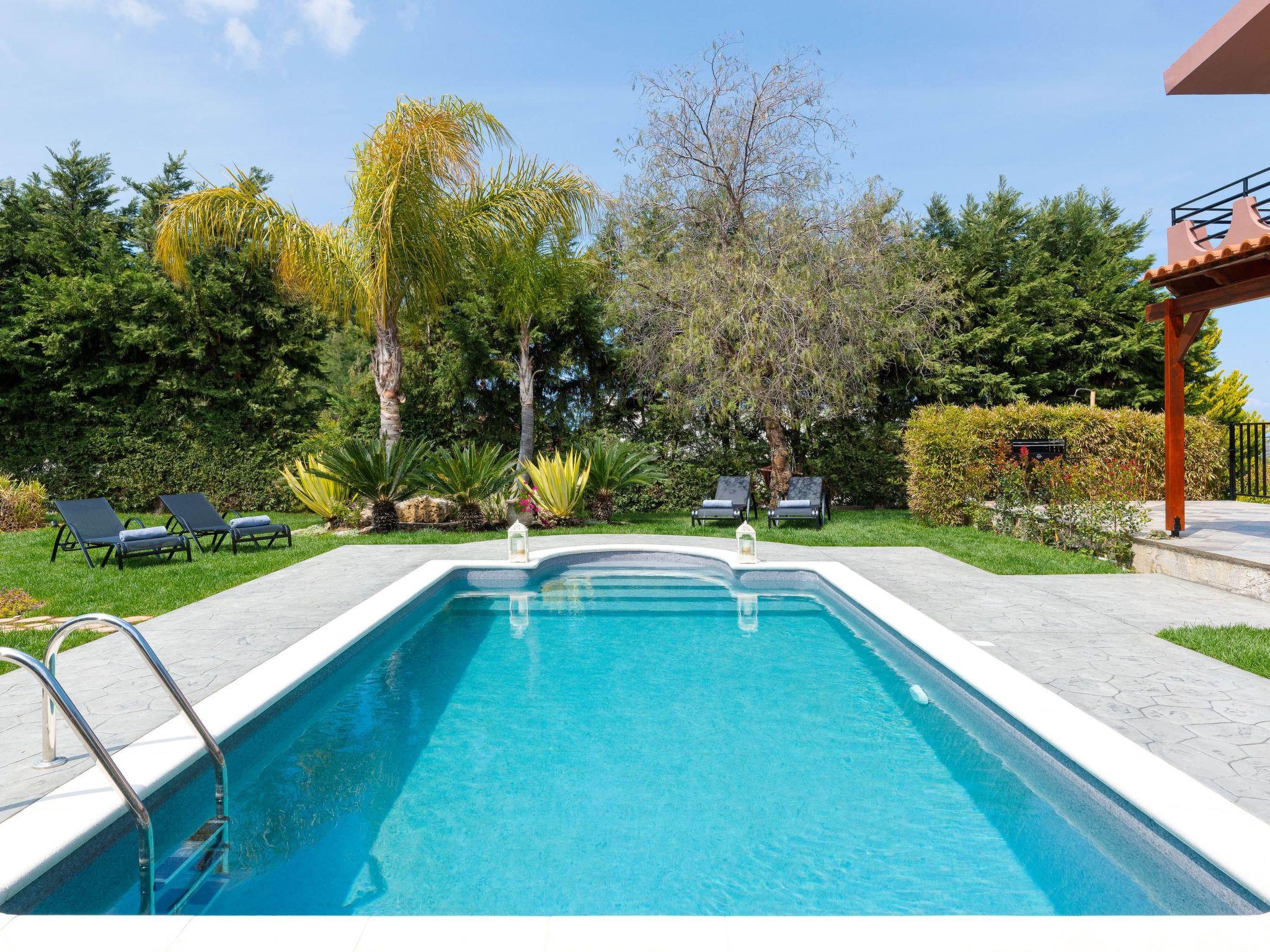 Zenia Villa is a dreamy property located at Damatria Village, less than 15 minute driving distance from the airport. It offers an exquisite private swimming pool and an exotic garden with a pot. The nearest beautiful beach is found at a driving distance of only 10 minutes. It conveniently accommodates up to 7 guests and promises privacy and an unforgettable stay. Zenia Villa has an incredible interior design with colorful details. It offers 3 fully air-conditioned bedrooms with double beds and balconies. Also, it has 2 bathrooms. One of them with a shower and another one with a bathtub with jacuzzi features for your ultimate relaxation. The property has a fully equipped kitchen suitable for any meal preparation. This beautiful villa has a spacious open plan living room in earth tones with comfortable sitting areas, equipped with flat screen TV with Netflix and satellite channels. There’s free Wi-Fi access throughout the property. Outdoors, there’s a private swimming pool surrounded by the sunbeds , a hammock and an exotic atmosphere that will give you a carefree feeling. There’s a picturesque garden with a pond. You can always prepare a meal at the BBQ facilities and enjoy a gathering with your loved ones especially recommended on the evening hours.