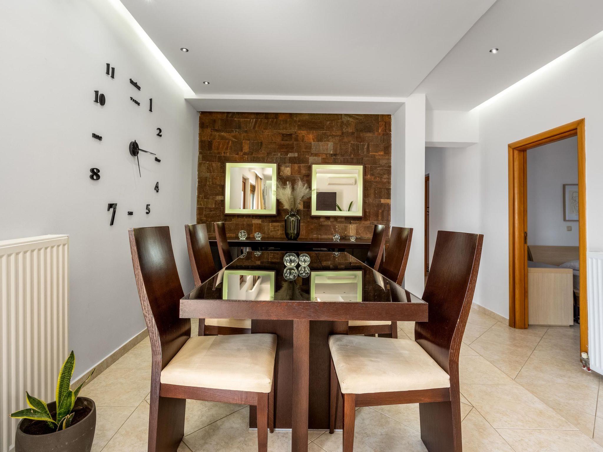 There are 3 air conditioned bedrooms, two with double beds and one with twin beds. The house has a spacious, modernly equipped kitchen and a comfortable dining area. The living room has access to a furnished terrace with panoramic views of the surrounding area and offers a unique setting for relaxation. There’s a screen TV and a free Wi-Fi access throughout the property. Outdoors, you’ll find a private swimming pool with its sunbeds to work on your tan under the rays of the Aegean sun. The surrounding area is quite inviting and welcoming. Also, there’s a BBQ facility as well as a dining area to enjoy a meal and a gathering with your friends or family. Last but not least, for your information we suggest to have a car for your transfer form and to the property.