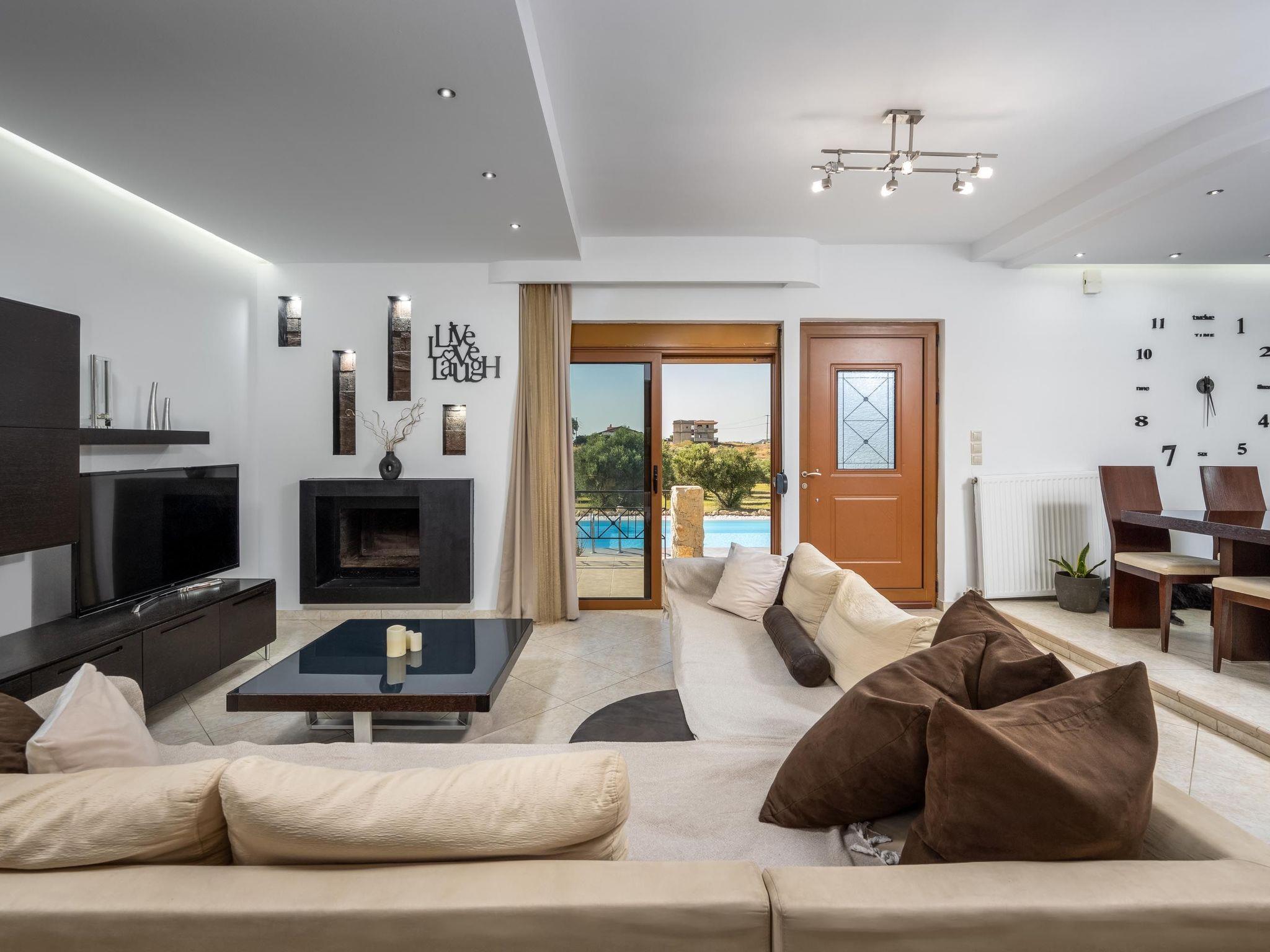 This unique villa is set in the calm and serene area of Pastida on a high point surrounded by hills; with views of olive groves, Filerimos, and beyond. Pastida is a village that has to offer you everything you might need during your stay and is located only 5 minutes' drive far from the villa. The coastline is found at a driving distance of only 10 minutes. Also, the airport of Rhodes is found really close to the villa, only 10 minutes. You should not miss visiting the center of Rhodes as well as the Old City of Rhodes. They are found at a driving distance of only 30 minutes. Also, Valley of Butterflies is near the villa, only 20 minutes. There you will have a chance to admire the beauty of Greek nature and see something truly unique! Rhodes has many places that worth visiting, one of them is the Lindos Acropolis, the most incredible archaeological site on the island. It is found at a distance of 50 minutes drive.