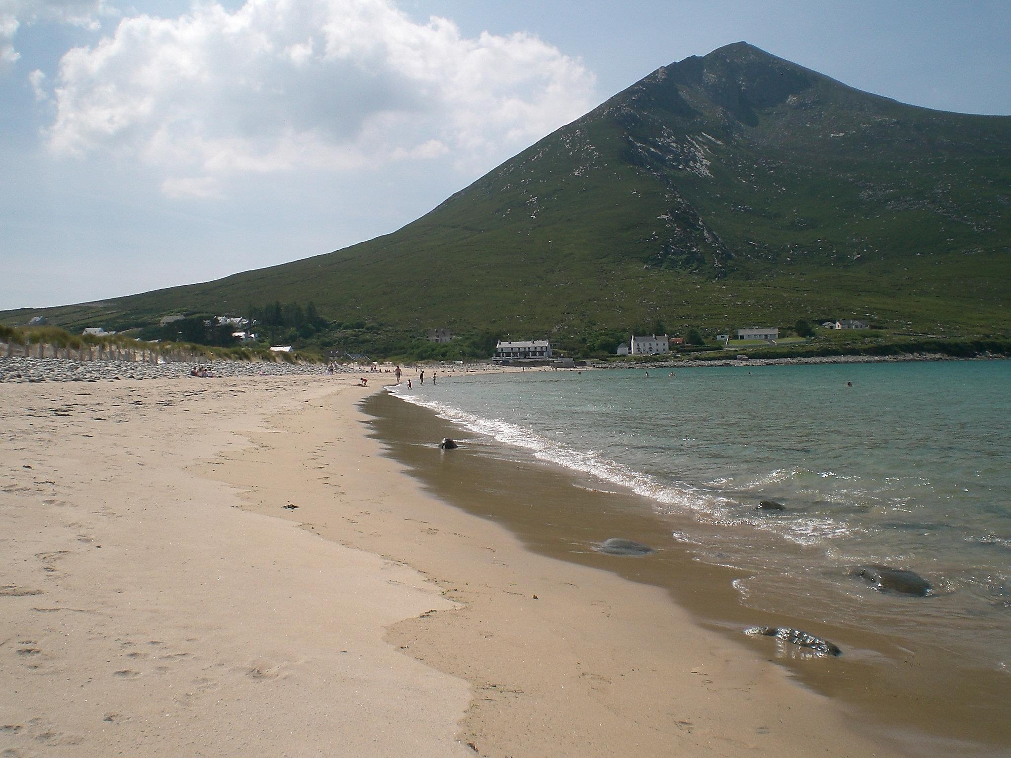Doogort (Dugort) 135 km from Galway: Very comfortable single-family house "Glenvale Cottage", surrounded by fields. On the outskirts, in a quiet position, 1 km from the sea, located by a road. For shared use: natural garden, parking at the house. Shop 4 km, grocery 2 km, bus stop "national School" 3 km, sandy beach 1 km. Golf course (9 hole) 11 km. Please note: car recommended. Situated in the north of the island, not far from the former holiday home of Heinrich Boells where he wrote his famous "Irish Diary". Sea and blue flag sandy beach. Outdoor adventure centre approx 5 km. Sea fishing and archaelogical summer school 7 km. Pub and restaurant, in season only, 1 km. Ideal position to enjoy the beautiful sights of the island, hill walking and fishing.