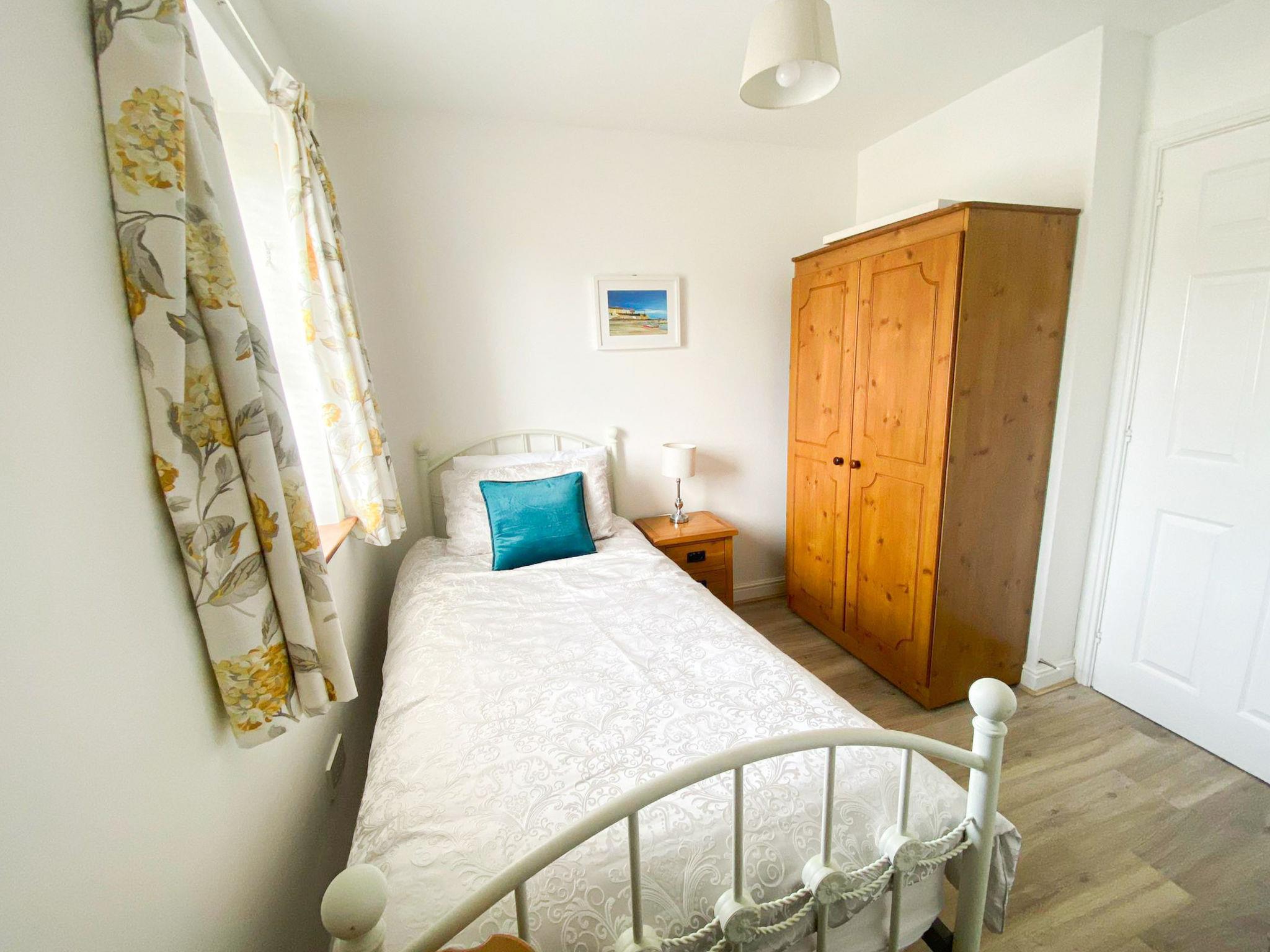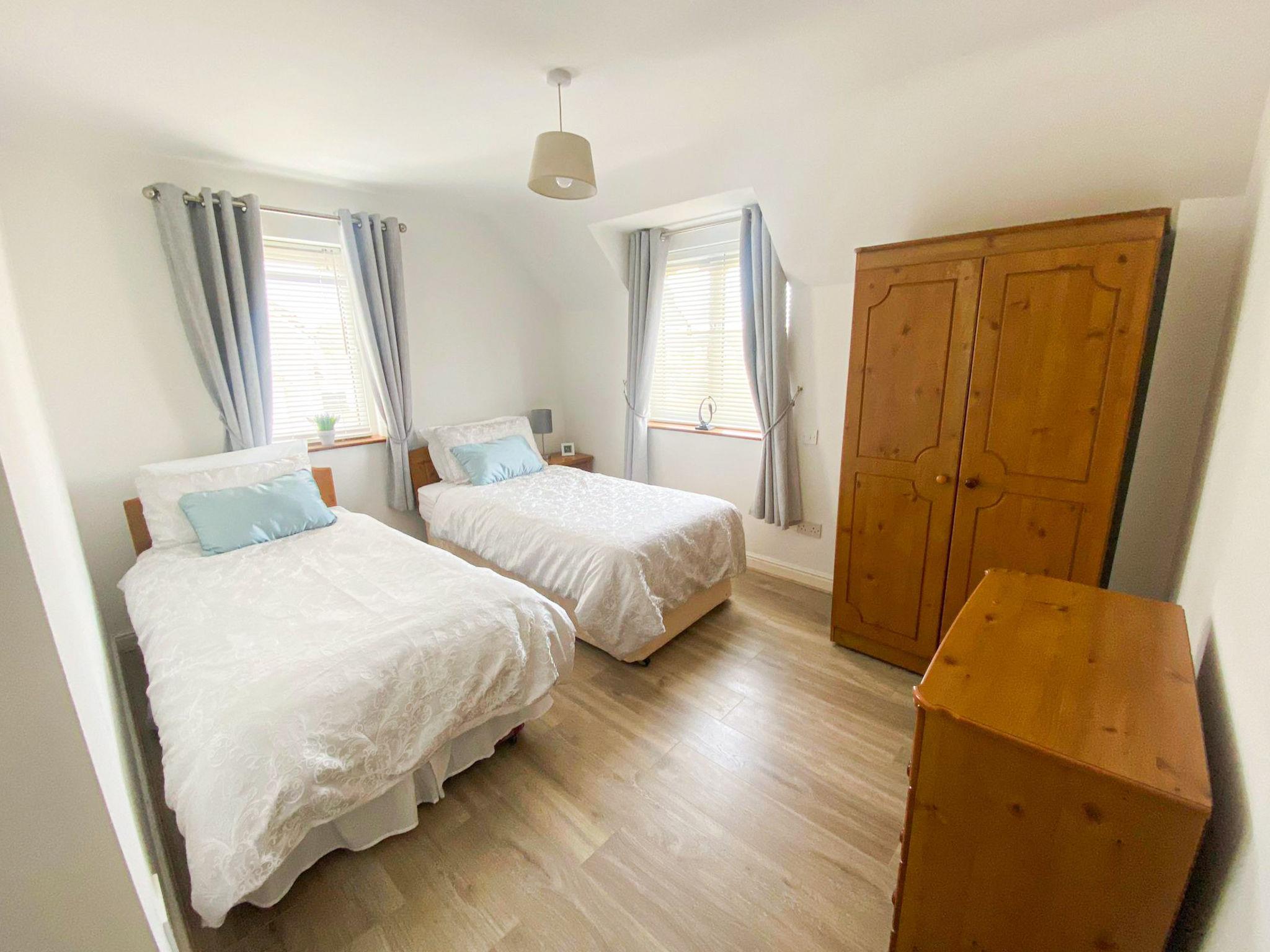 "Moore Bay(TR4) Holiday Homes 18A", 4-room house 120 m2. Object suitable for 5 adults. Living room with open-hearth fireplace and TV. 1 room with 1 bed. 1 room with 2 beds. 1 room with 1 double bed. Kitchen (4 hot plates, oven, dishwasher, toaster, kettle, microwave, freezer). Bath/WC, shower/WC. Facilities: washing machine, iron. Please note: non-smokers only. Smoke alarm.