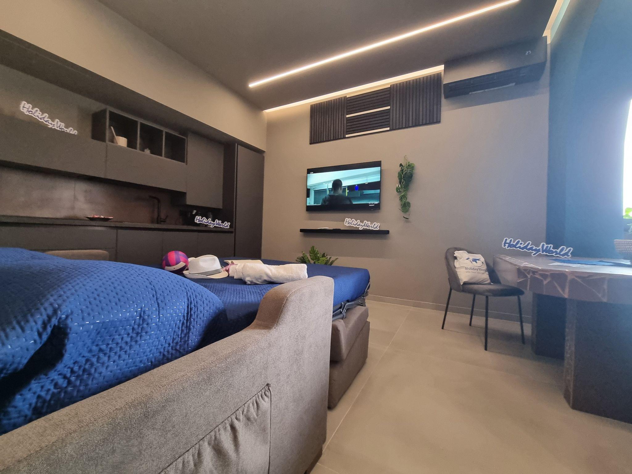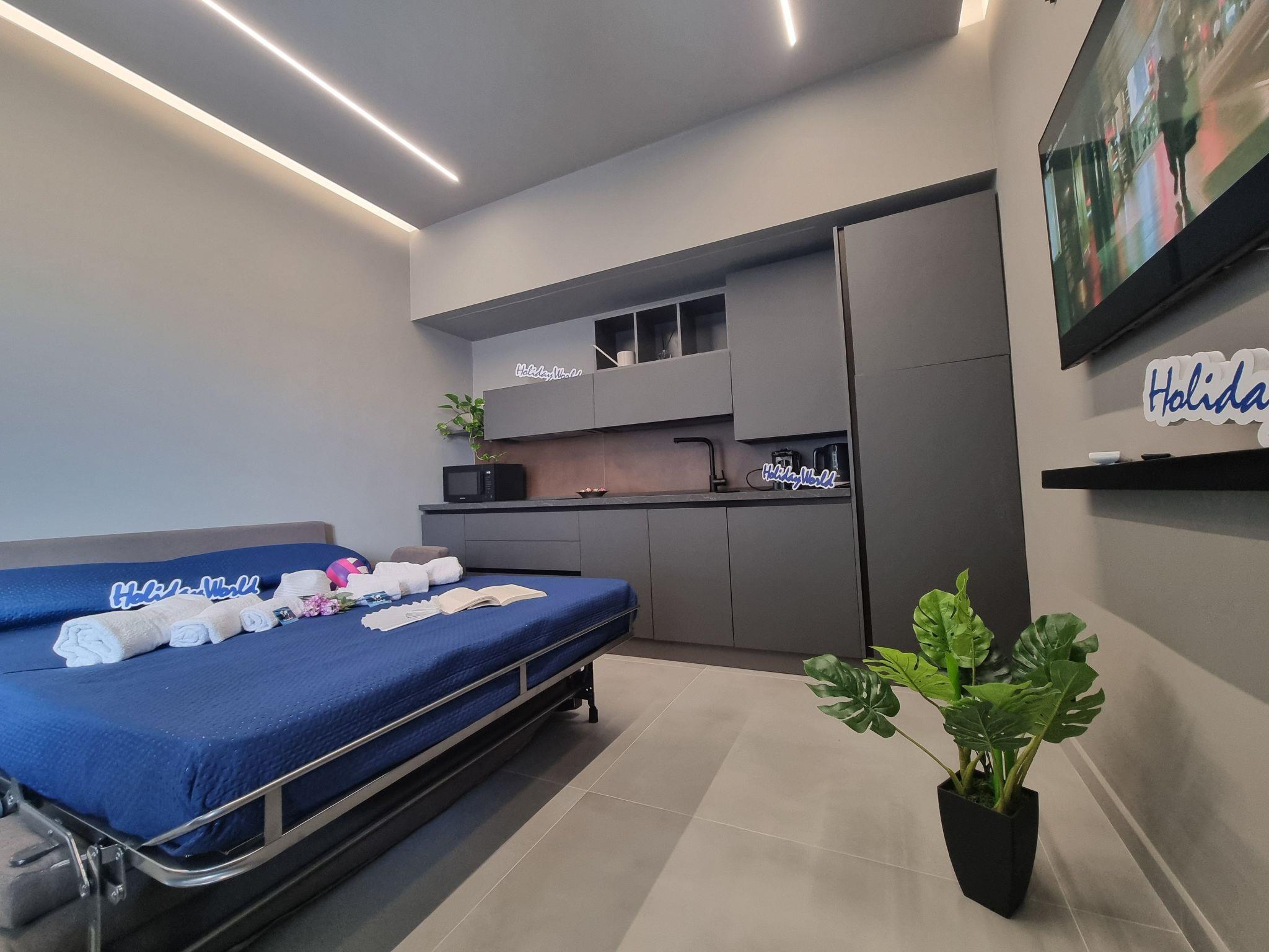 Antigua is a modern and functional flat located in Aci Castello (CT). The accommodation is distinguished by its spacious and bright ambience, characterised by elegant arches and a large window offering a panoramic view of the sea. The well-distributed living room includes a fully equipped kitchenette and a dining area with a stone table, creating a warm and inviting atmosphere. In addition, the single sofa bed is perfect for an adult and a child, adding further comfort to the home. A further highlight of the property is the terrace for shared use. This outdoor space is a true oasis of relaxation, equipped with a Jacuzzi for four, an outdoor shower, an outdoor kitchen with barbecue and a large table and chairs. There is also a gazebo with a corner sofa, outdoor armchairs, stools and parasols, all designed for maximum comfort and practicality. From this terrace, the view is spectacular: the sea in front and Mount Etna looming majestically in the background. Here, every sunset becomes an unforgettable moment, with ever-changing panoramas, offering a unique natural spectacle. Its location, a short walk from the centre of Aci Castello, makes it easy to explore the village, a fascinating corner of the eastern coast of Sicily, offering breathtaking views of the sea and Mount Etna. For nature and adventure lovers, Aci Castello is also the ideal starting point for exploring Mount Etna, one of the most active volcanoes in the world. Here you can go hiking, trekking and other outdoor activities, immersing yourself in incredible panoramas ranging from wilderness to spectacular views of the coast and crater. Whether you are looking for tranquillity or adventure, Suite Antigua offers the perfect setting for a relaxing holiday full of memorable experiences.