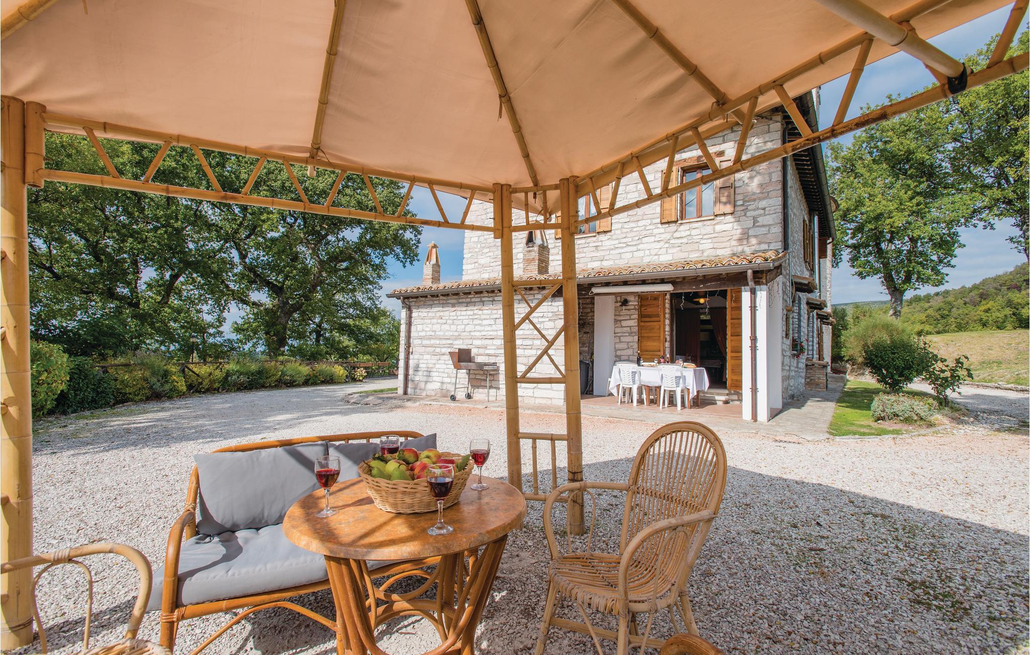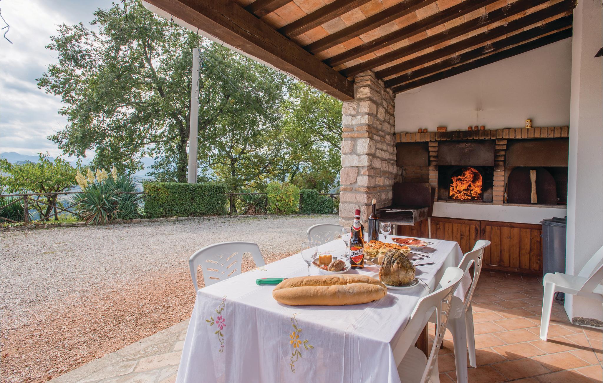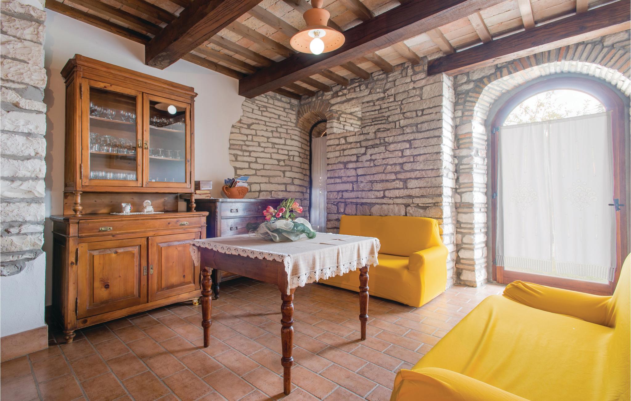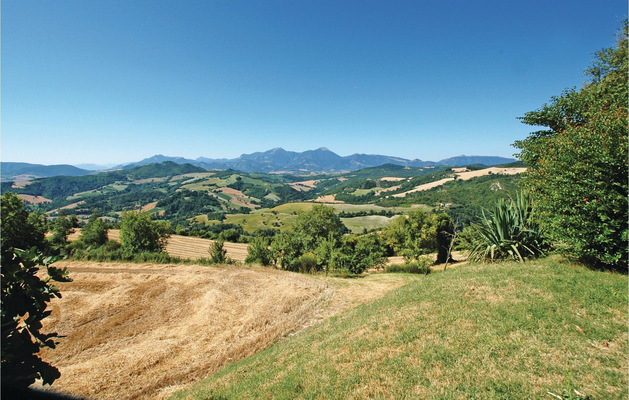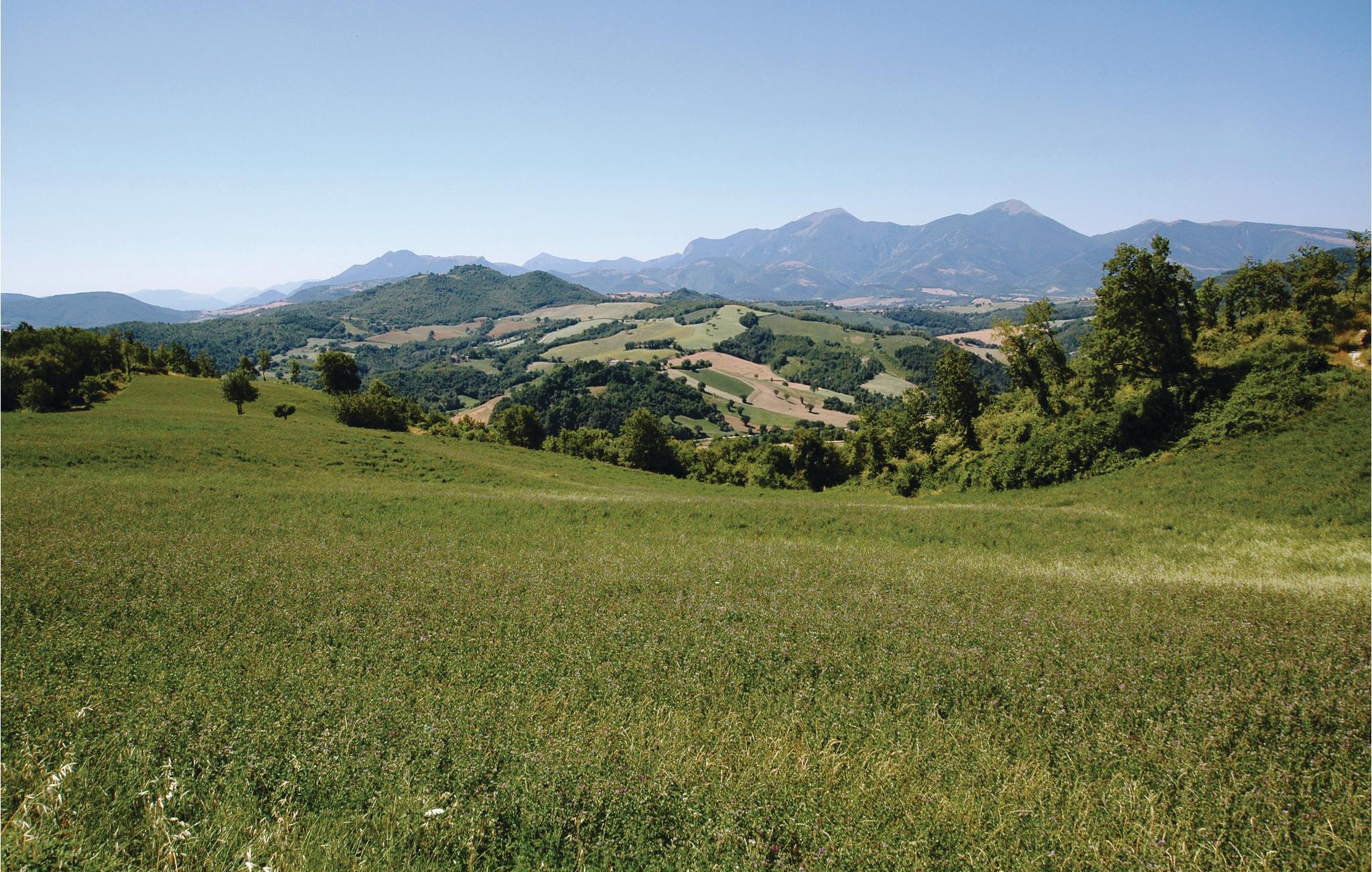 I det fjellrike innlandet ved Adriaterhavet, mellom Urbino (30 km) og Gubbio (40 km), ligger dette koselige feriehuset på 600 meters høyde, i en unik panoramaposisjon. Den tidligere prestegården dominerer med sin kirke fra sin egen høyde og gir beboerne en virkelig unik utsikt over fjellene (Monte Nerone 1525m, Monte Catria 1700m) og dalene. Her har du rikelig med privatliv - ideelt for familier og grupper. Det renoverte huset har beholdt sin rustikke sjarm, med trebjelker og originale fliser som skaper en varm og koselig atmosfære.