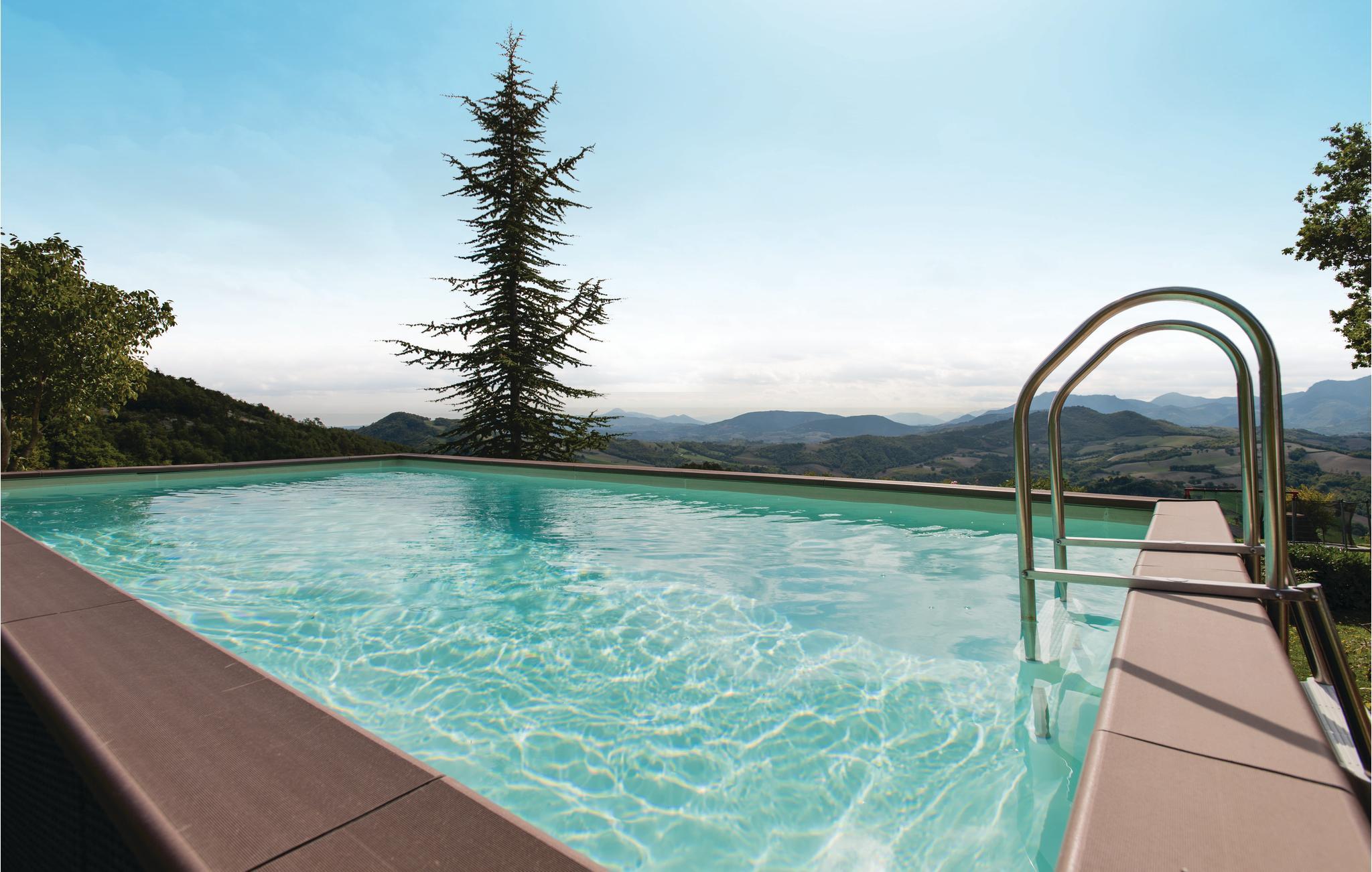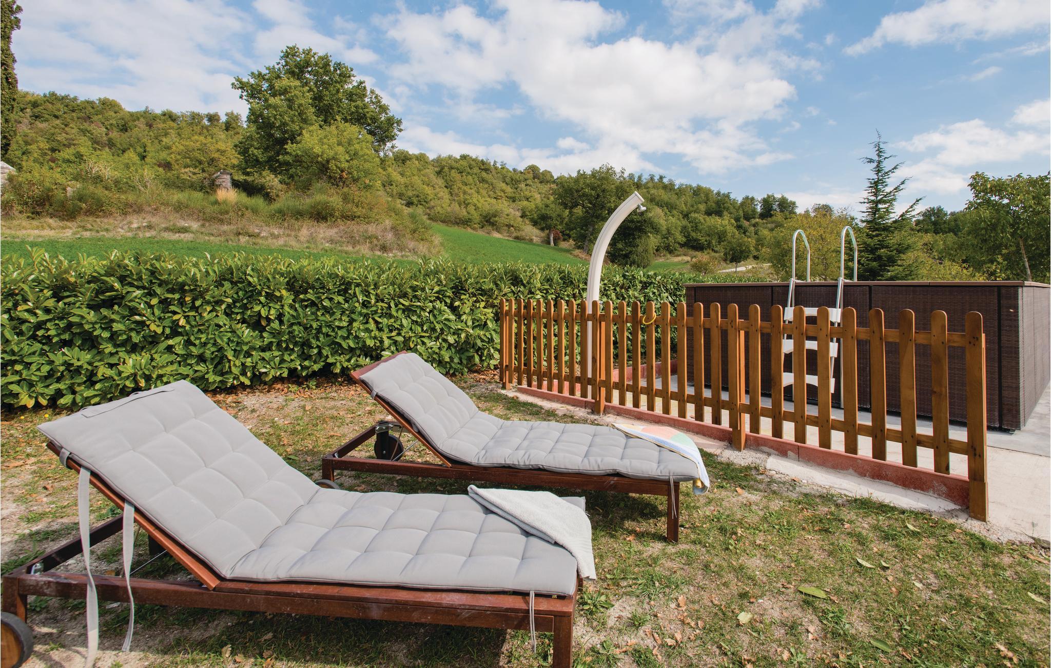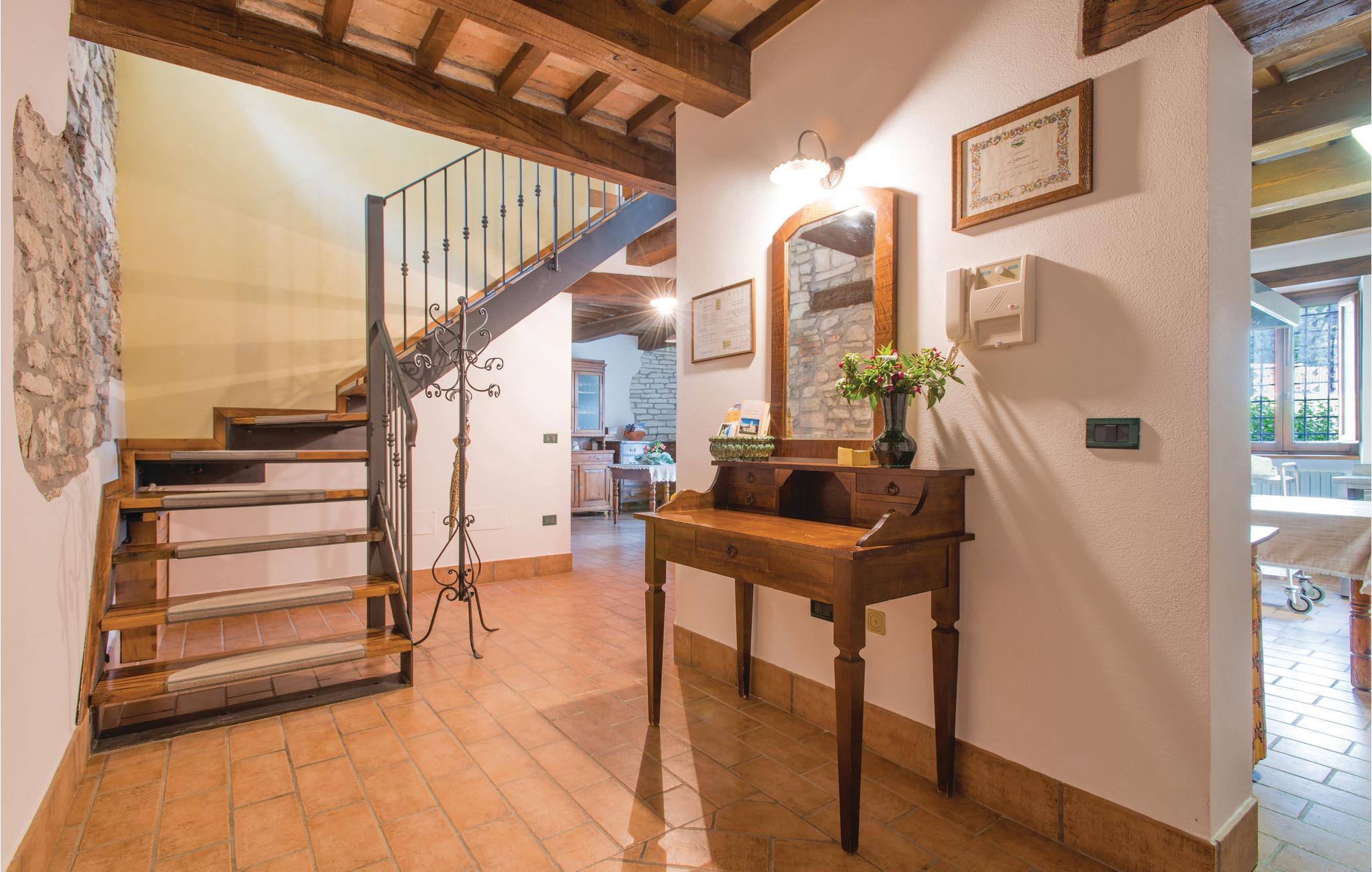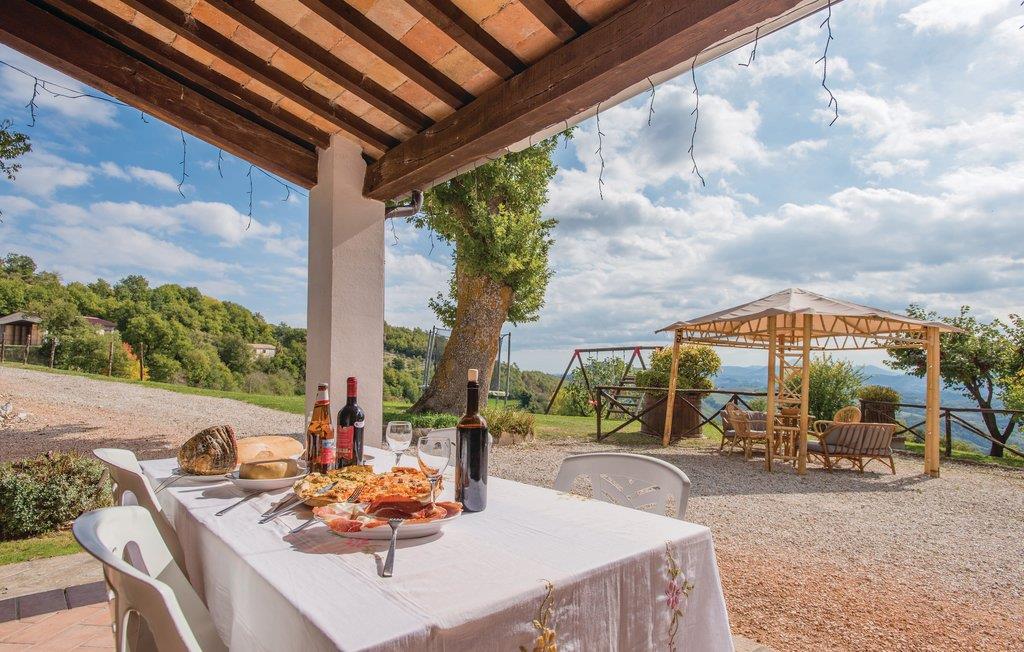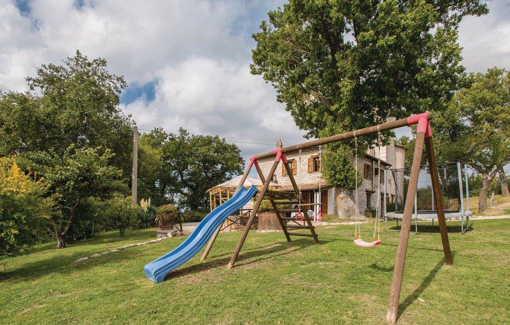 I første etasje finner du den rustikke spisestuen med utgang til den overbygde terrassen, et profesjonelt kjøkken, stue og toalett; de seks soverommene med to bad ligger i 1. etasje. På eiendommen har du det private badeområdet (oppsatt basseng 3 x 6m) med solsenger, forskjellige sittegrupper, ballspill og barnespill til din disposisjon. Direkte fra huset kan du gå på fantastiske turer; fotturer eller sykling i den nærliggende naturparken Furlo, hvor du kan oppdage ville hester og ørner, eller i fjellet!