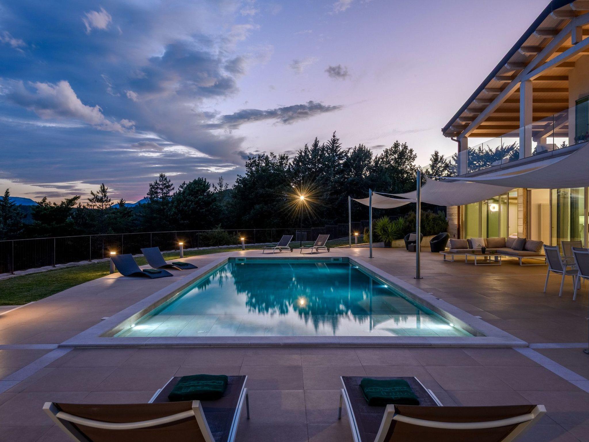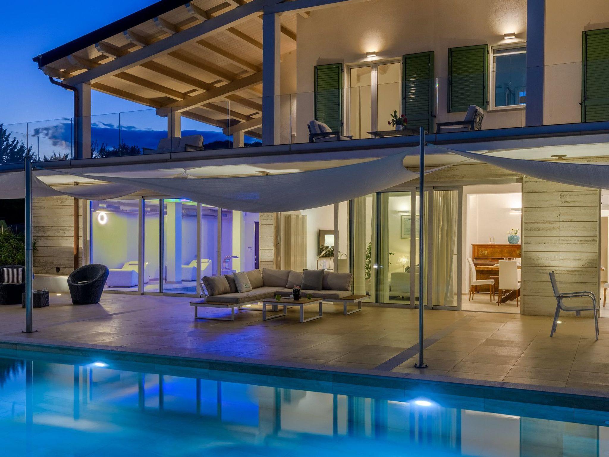 Villa Montefalcone is a beautiful modern villa with a swimming pool, large kitchen with island and large panoramic terrace, indoor pool and sauna.