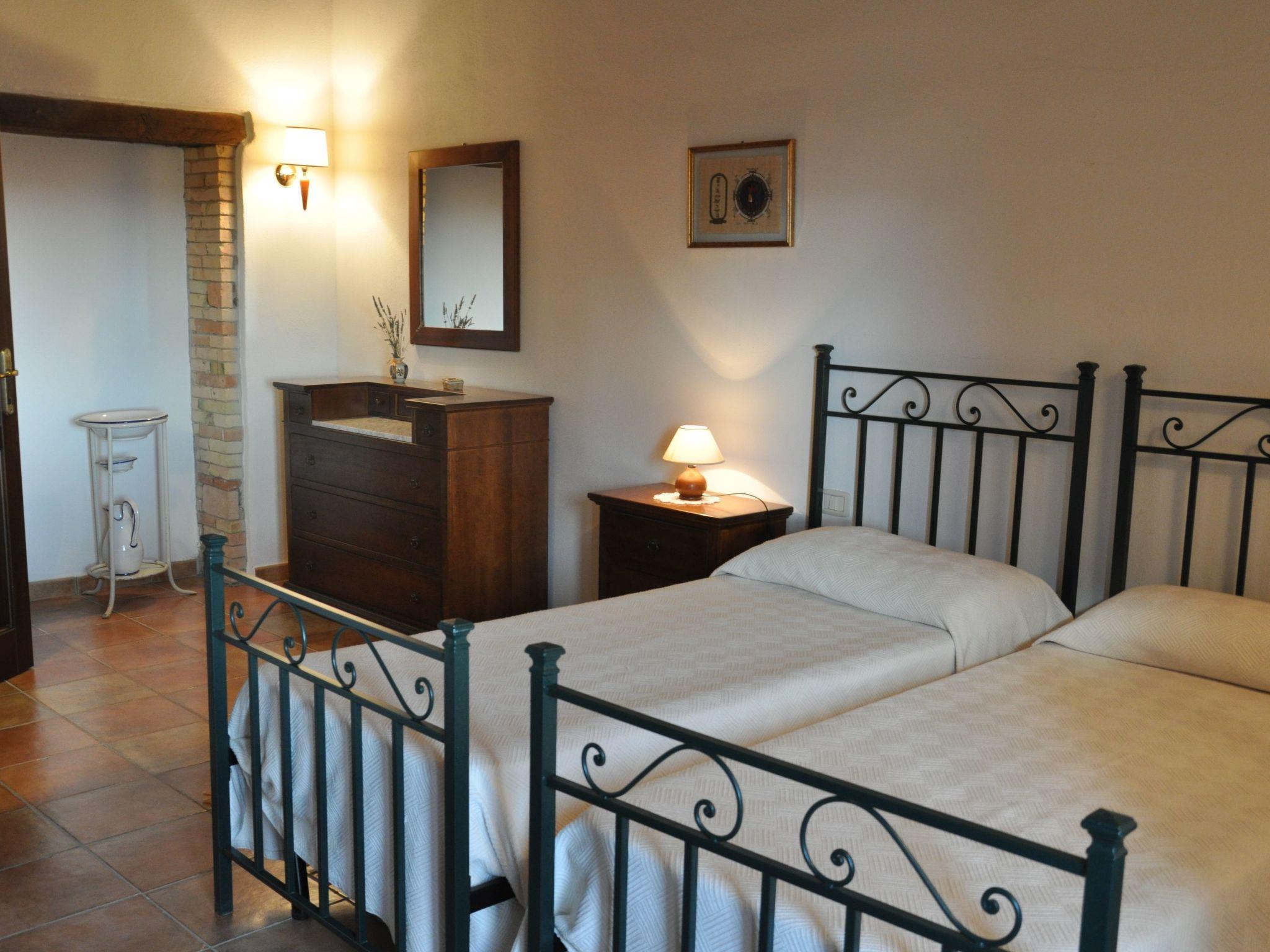 Bellavista Holidays is an independent farmhouse that consists of 4 apartments and an annexe, each independent and with its own outdoor spaces.Groups usually meet in the Rufeno apartment where they can all comfortably eat together.The apartments are composed as follows:Rufeno - 4 beds (110 sqm)Ground floor: Entrance - large living room with kitchen and dining area, a double bedroom, a twin bedroom, a bathroom with tub.Amiata - 4 beds (120 sqm)Ground Floor: Entrance - living room with fireplace, kitchen, two double bedrooms, a bathroom with tub, a bathroom with shower.Cetona - 6 beds (130 sqm)First floor: Entrance - living room with fireplace and dining area, kitchen, two double bedrooms, one twin bedroom, one bathroom with shower, one bathroom with bathtub.Azzara - 6 beds (150 sqm)Ground Floor: entrance - living room with fireplace and dining area, kitchen, bathroom with showerFirst floor: two double bedrooms, one twin bedroom, one bathroom with tub.Small house - 2 beds (45 sqm)Ground floor: entrance - kitchen with large panoramic terrace, a double bedroom, a bathroom with shower