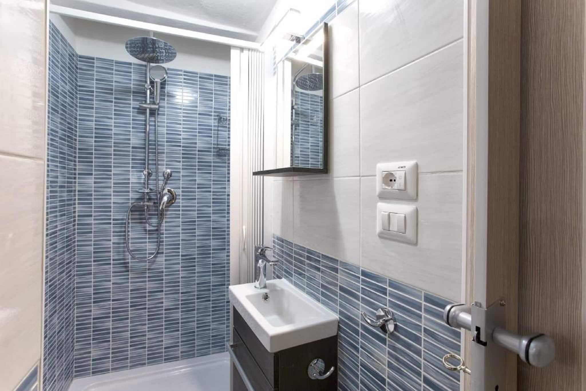 I 2. etasje: (Stue(TV, sittehjørne), åpent kjøkken(komfyr med kokeplater, komfyr, stekovn, kjøleskap med fryser), soveværelse(dobbeltseng), bad(dusj, håndvask, toalett)) klimaanlegg