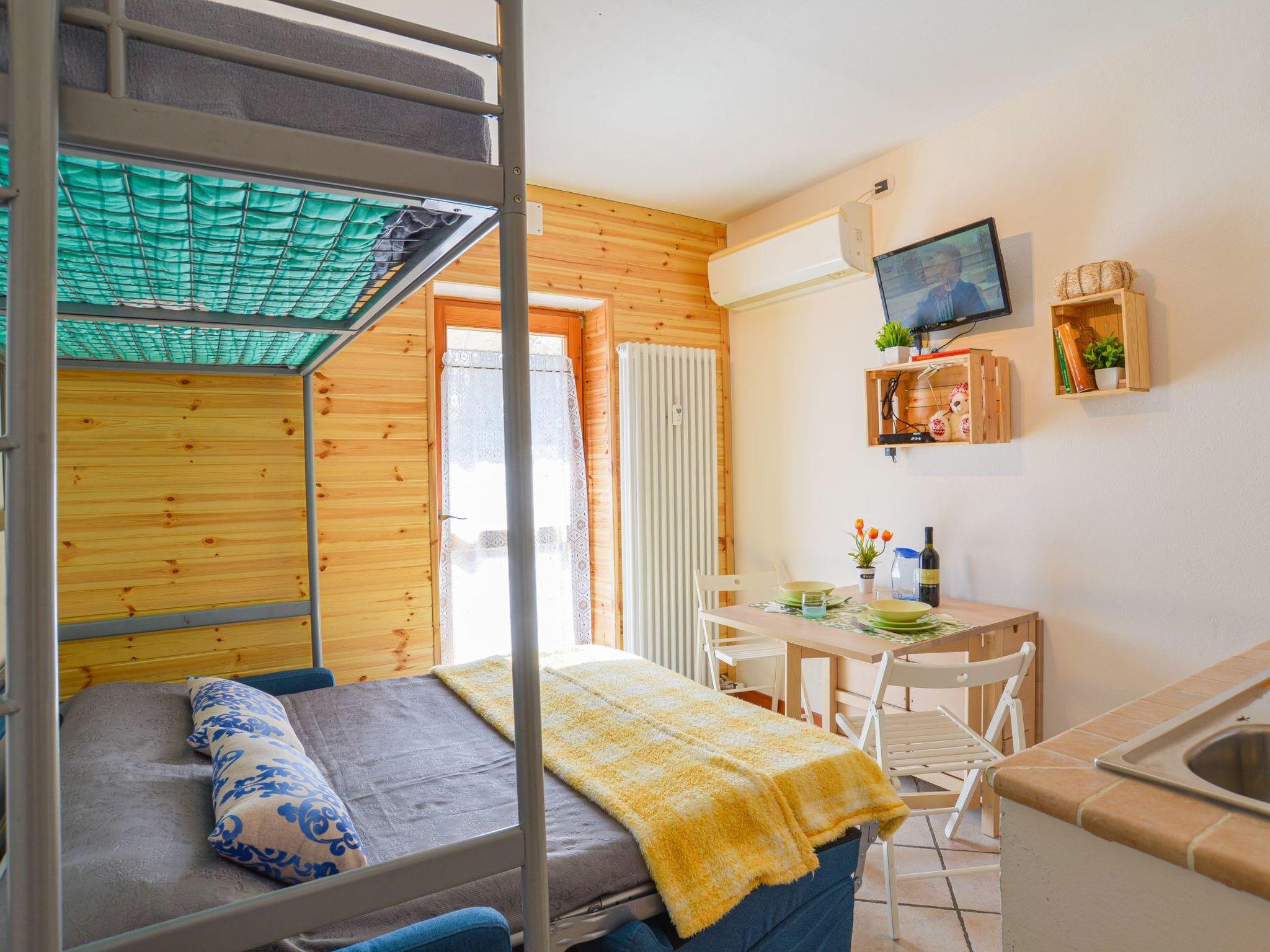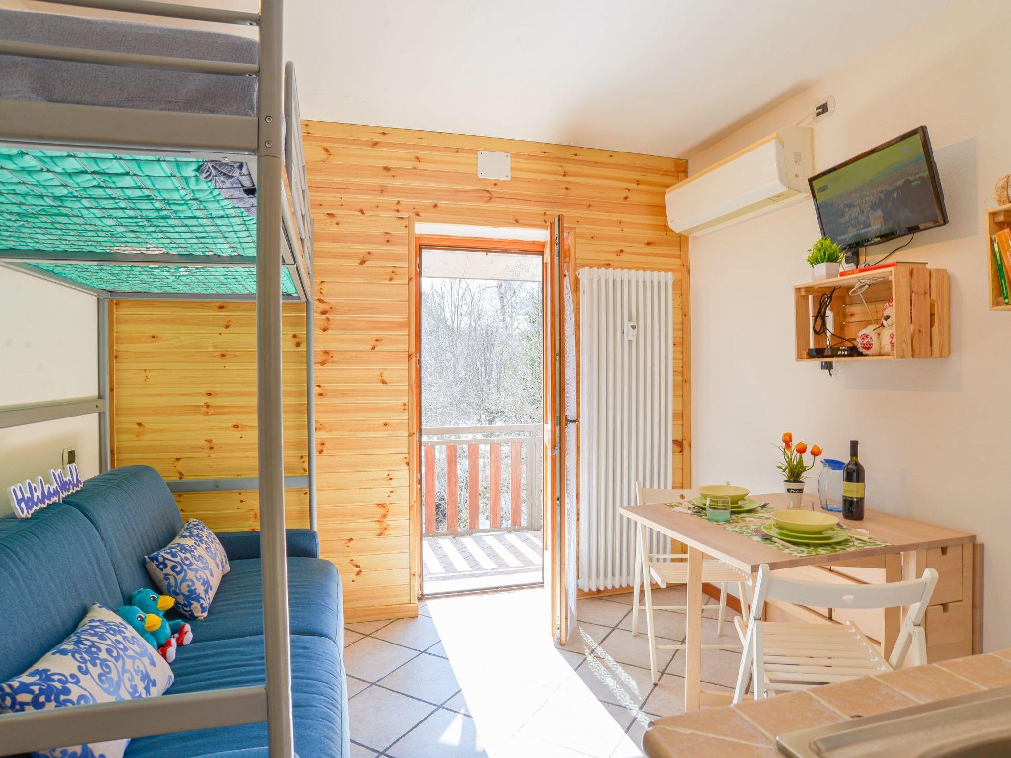 Casa Cicci is a cosy and bright one-room apartment located on the third floor of a building with lift, and is an ideal destination for holidays in the mountains. It has a splendid panoramic terrace with an enchanting view of the surrounding mountains. The flat offers three comfortable beds, with a double sofa bed and a bunk bed, as well as a windowed bathroom with shower. A practical ski rack on the ground floor and unassigned condominium parking spaces complete the property. The flat is perfect for a family in any season, whether for days on the snow or for summer excursions. Casa Cicci is equipped with every comfort, such as Wi-Fi and air conditioning.