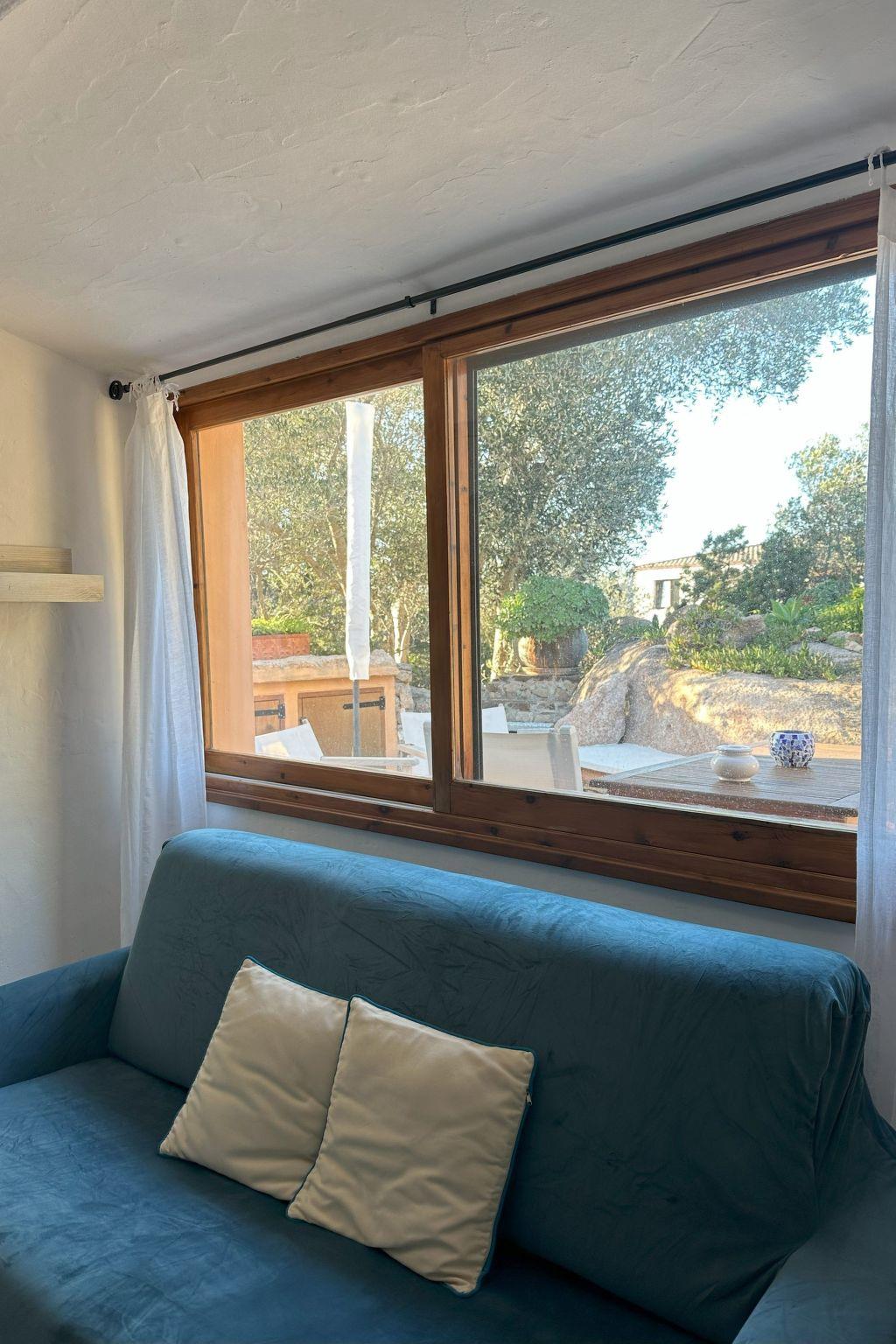 The holiday apartment is located on the ground floor of a row house. A path leads to the apartment. The enchanting apartment is ideal for couples or a family with two children. It has its own entrance and a well-maintained interior. It consists of a spacious kitchen-living room with a sofa bed for two people, a bedroom with a double bed, and a bathroom with a shower. The living area is air conditioned.