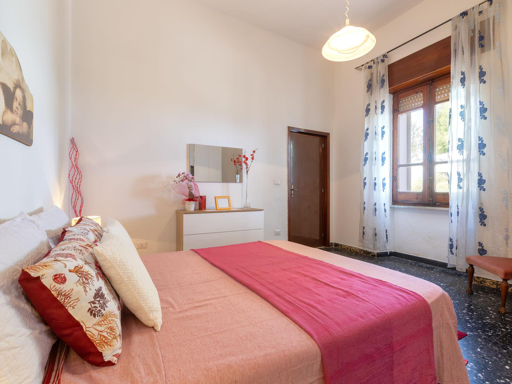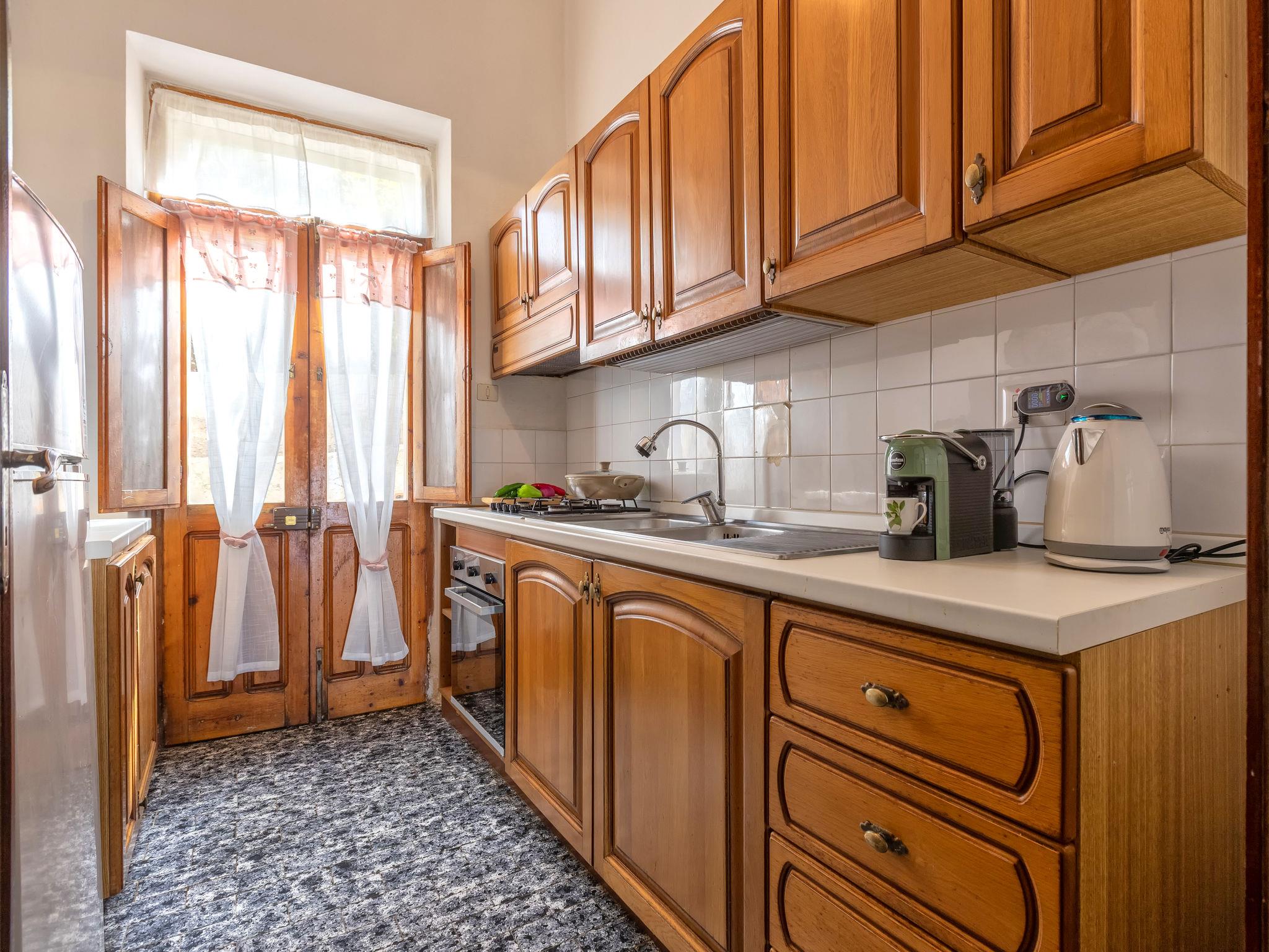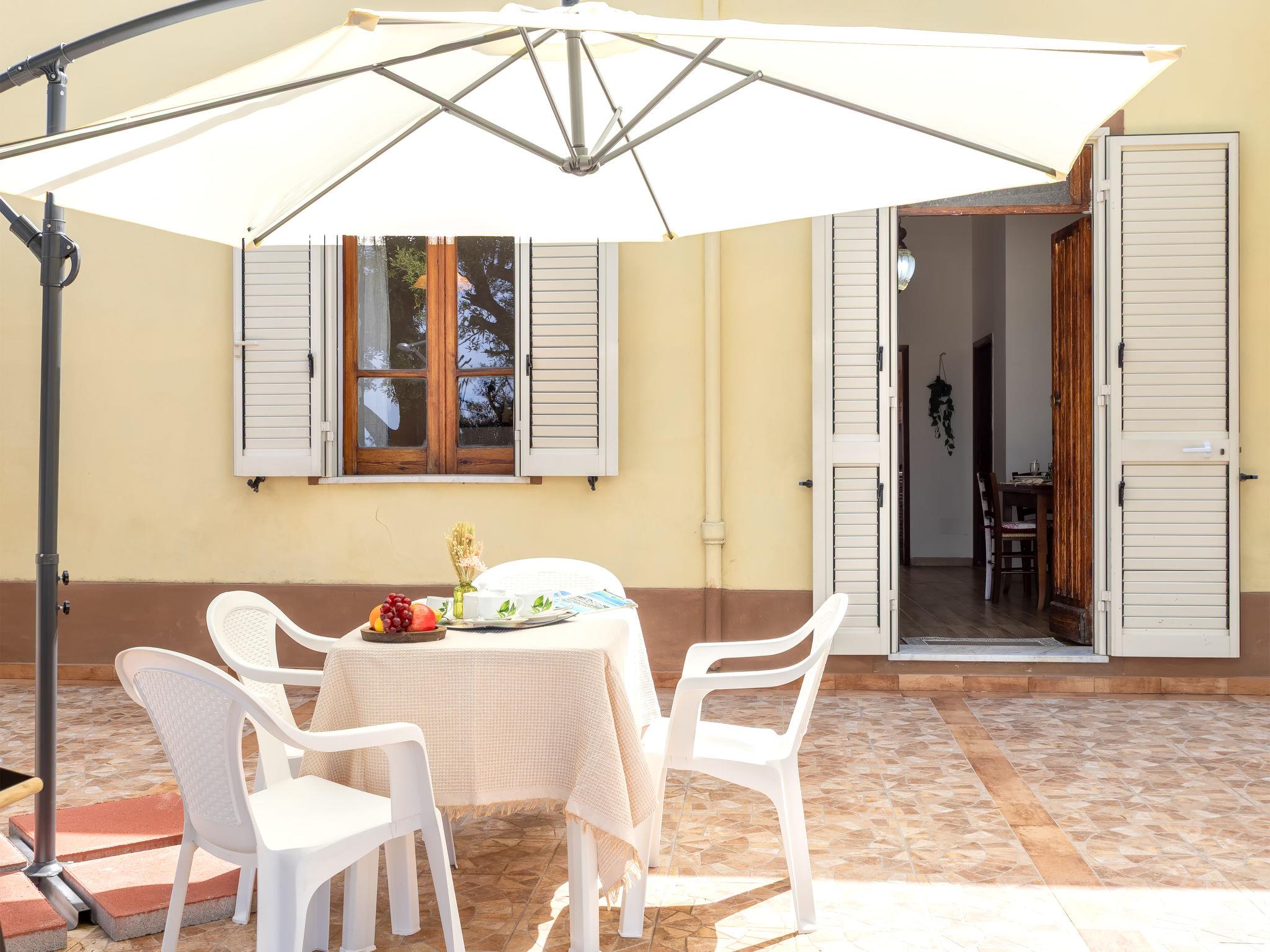 3-room house 85 m2, on the ground floor. Simple and comfortable furnishings: living/dining room with 2 sofabeds and TV (flat screen). Exit to the terrace. 1 double bedroom. Kitchen (4 hot plates, oven, toaster, kettle, electric coffee machine). Shower/bidet/WC. No heating option. Large terrace. Terrace furniture, barbecue. Very beautiful, of the sea. Facilities: washing machine, iron, hair dryer. Maximum 1 pet/ dog allowed. IT090081C2000T8188