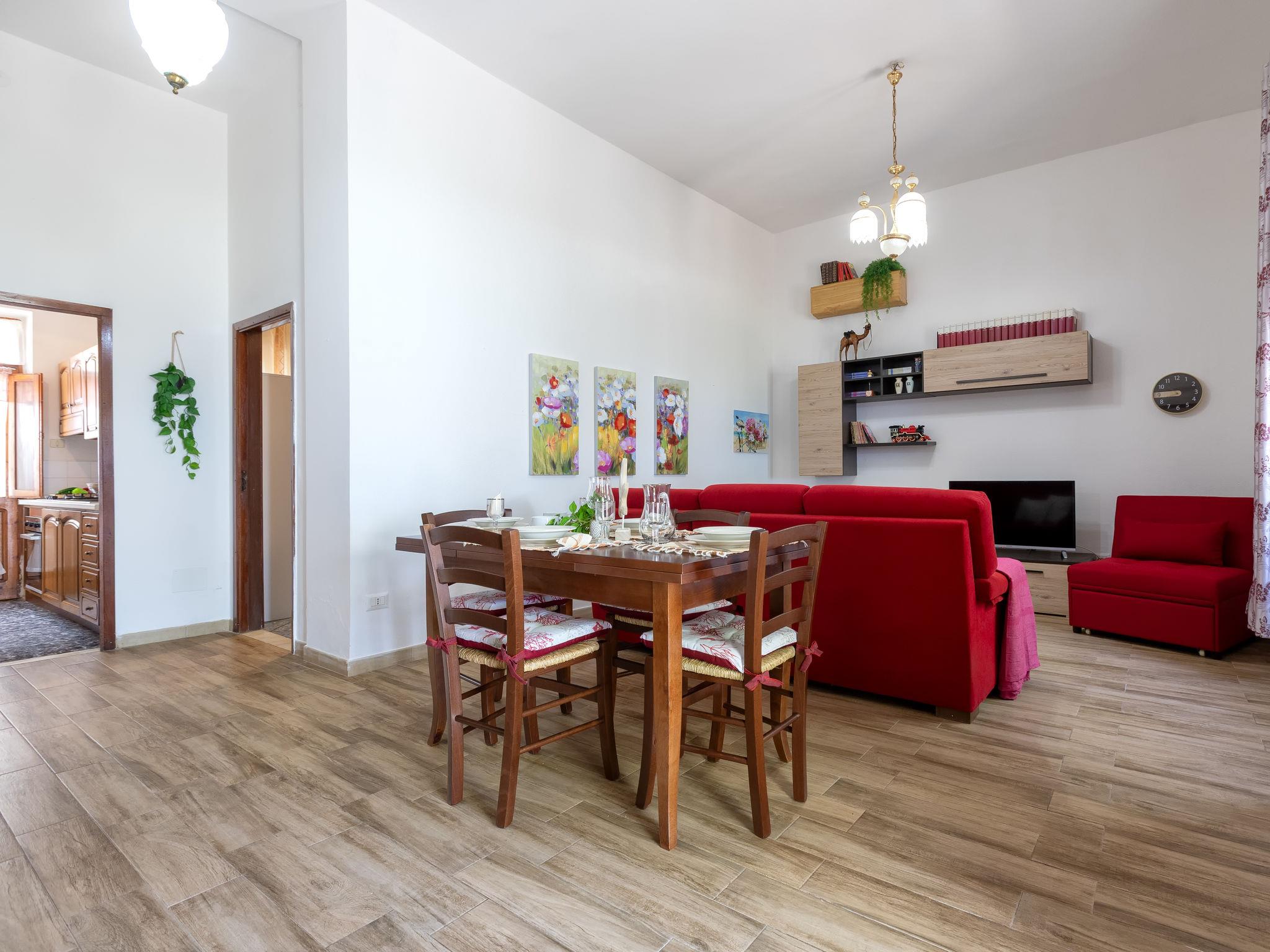 Cosy 2-family house "Il Belvedere di Maria Luisa", surrounded by trees. 2 apartments in the property. In the hamlet Lu Muntiggioni 3 km from the centre of Badesi, in a quiet, sunny position, 4 km from the sea, 4 km from the beach. Private: natural state property, parking at the house, public parking. Supermarket 3 km, restaurant 3 km, bar 250 m, bus stop 2.5 km, sandy beach "Li Junchi" 3.5 km. Nearby attractions: Isola Rossa 15 km, Castelsardo 20 km, Alghero 86 km, Costa Paradiso 20 km, Valledoria 6 km. Please note: car recommended.