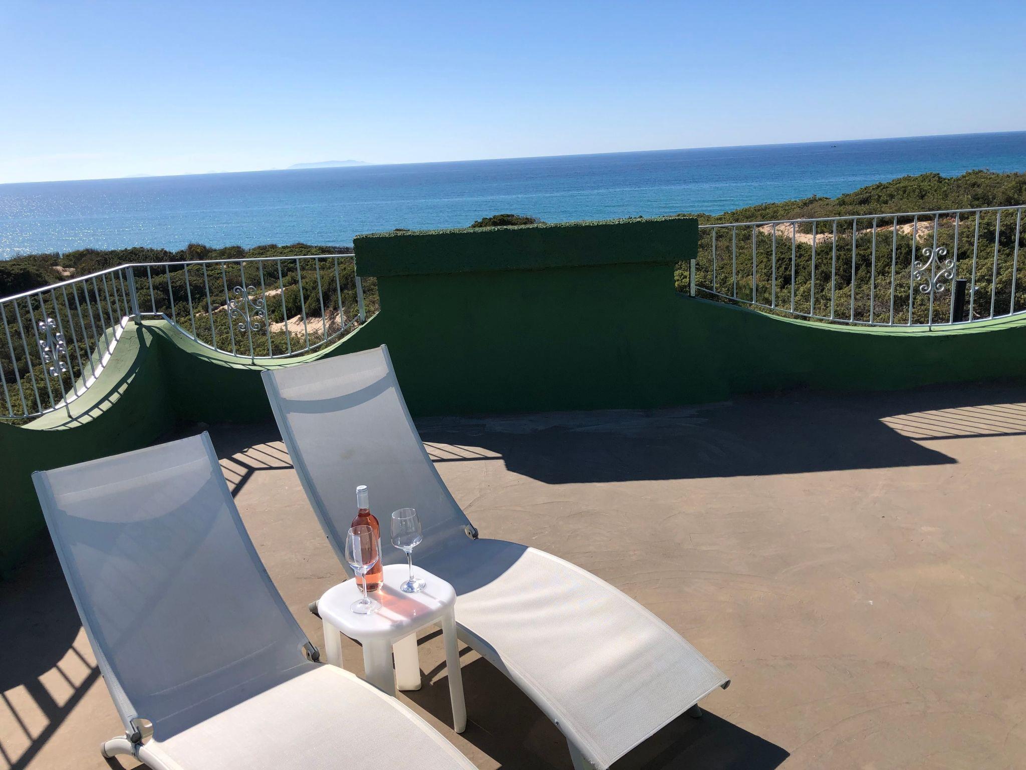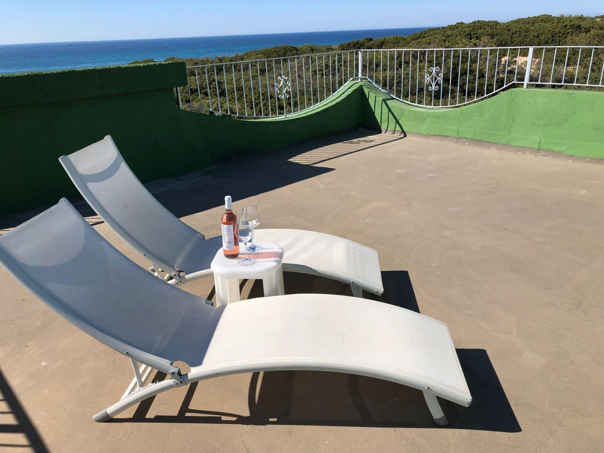 The villa's exterior is equally inviting, with an exclusive-use garden that offers plenty of space to relax in the shade or under the Sardinian sun. The terrace and roof terrace, both for exclusive use, are ideal for enjoying moments of pure peace in the open air, perhaps reading a book or admiring the serenity of the surrounding landscape.