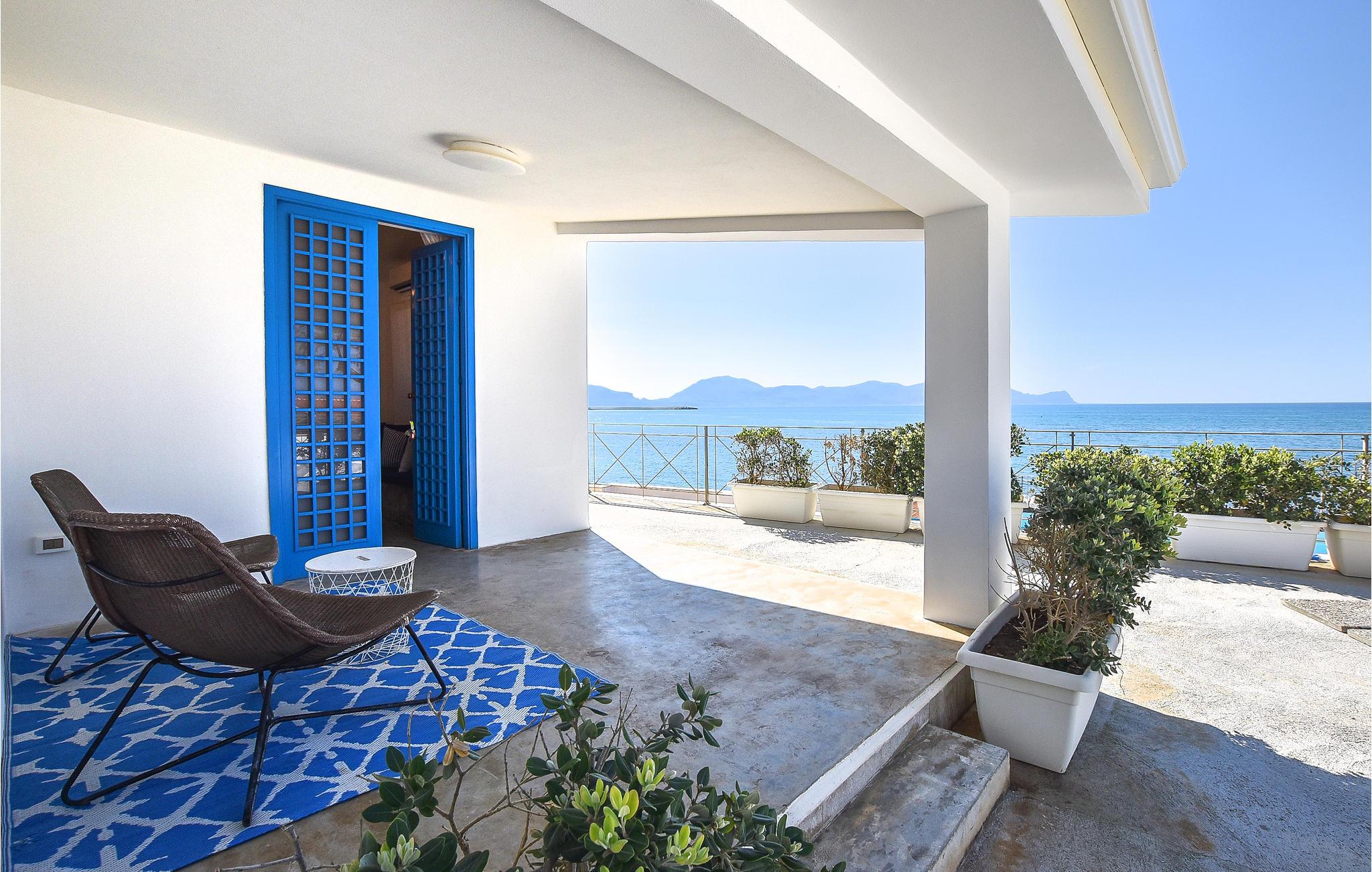 Et vakkert, hvitkalket feriehus med blå skodder og et felles utendørsbasseng rett ved stranden. Høres fantastisk ut, ikke sant? Huset er moderne innredet og fullt av atmosfære. Lag mat sammen i det svarte kjøkkenet. Kanskje du vil prøve å lage en tiramisu? Tilbring litt lykkelig familietid i bassengområdet. Nyt det kjølige vannet i bassenget mens du beundrer Middelhavet. De åpne og overbygde terrassene inviterer deg til å tilbringe vakre ferieøyeblikk med saftig vannmelon, deilige pastaretter og Marsala-vin. Gå bare noen få skritt og hopp i det vakre havet. Utforsk Balestrate og nyt lunsjen på en kafé på Piazza Evola. Ta en båttur eller en sykkeltur.