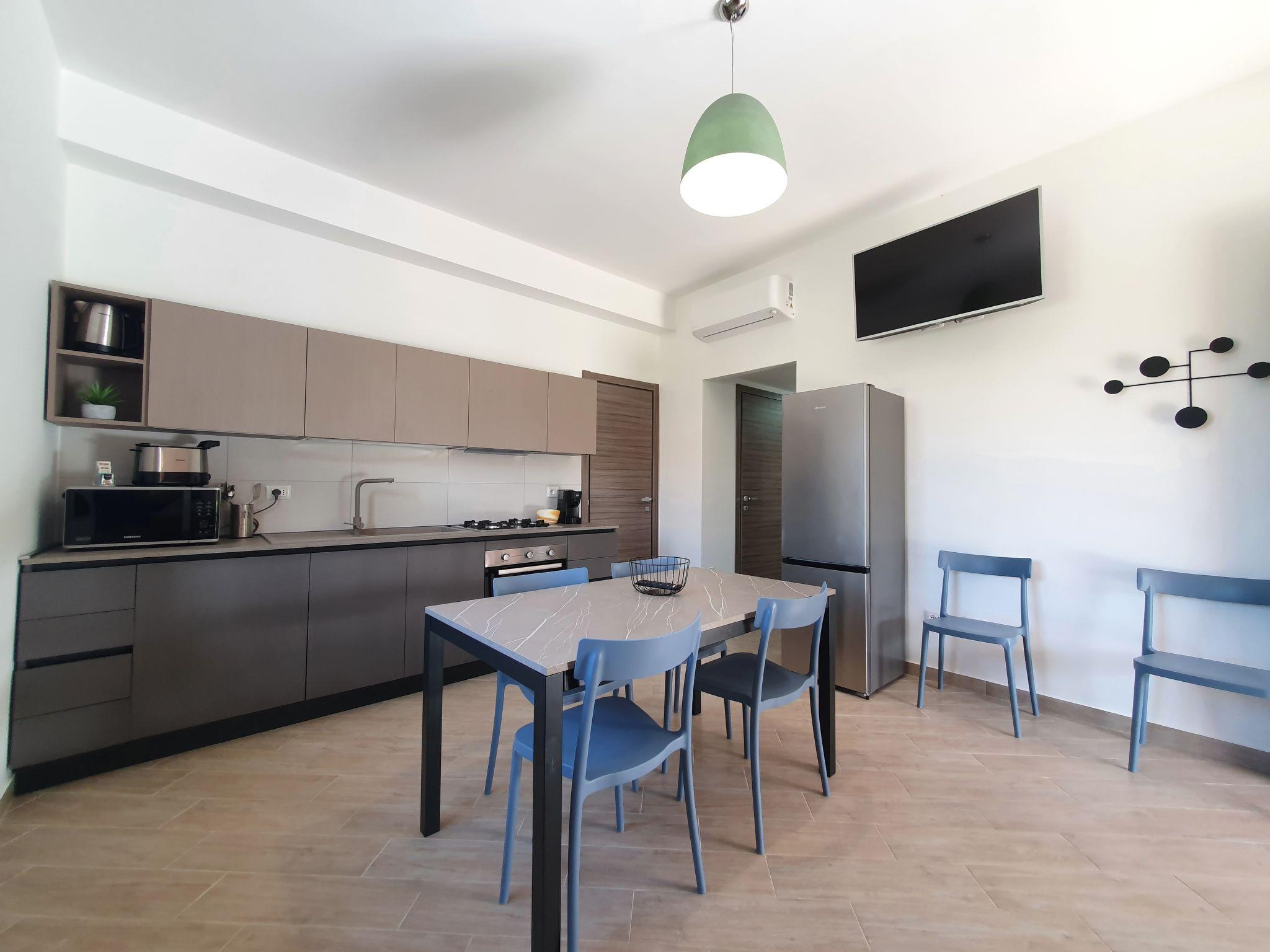 "MareLuna", 3-room apartment 60 m2, on the ground floor. Comfortable and tasteful furnishings: living/dining room with 1 double sofabed, international TV channels, air conditioning and forced-air heating. Exit to the terrace. 1 double bedroom with international TV channels, air conditioning and forced-air heating. 1 double bedroom with air conditioning and forced-air heating. Kitchenette (oven, dishwasher, Gas stove, 4 gas rings, toaster, kettle, microwave, electric coffee machine). Shower/bidet/WC. Heating, forced-air heating. Heating available only from 01.12. to 31.03, Solar power. Large terrace 25 m2, roofed. Terrace furniture, deck chairs (4). View of the countryside. Facilities: washing machine, safe, iron, children's high chair, baby cot for up to 2 year olds (extra), hair dryer. Internet (WiFi, free). Parking (1 car). Please note: smoke alarm, fire extinguisher. IT082007B4I4YZ6YYU