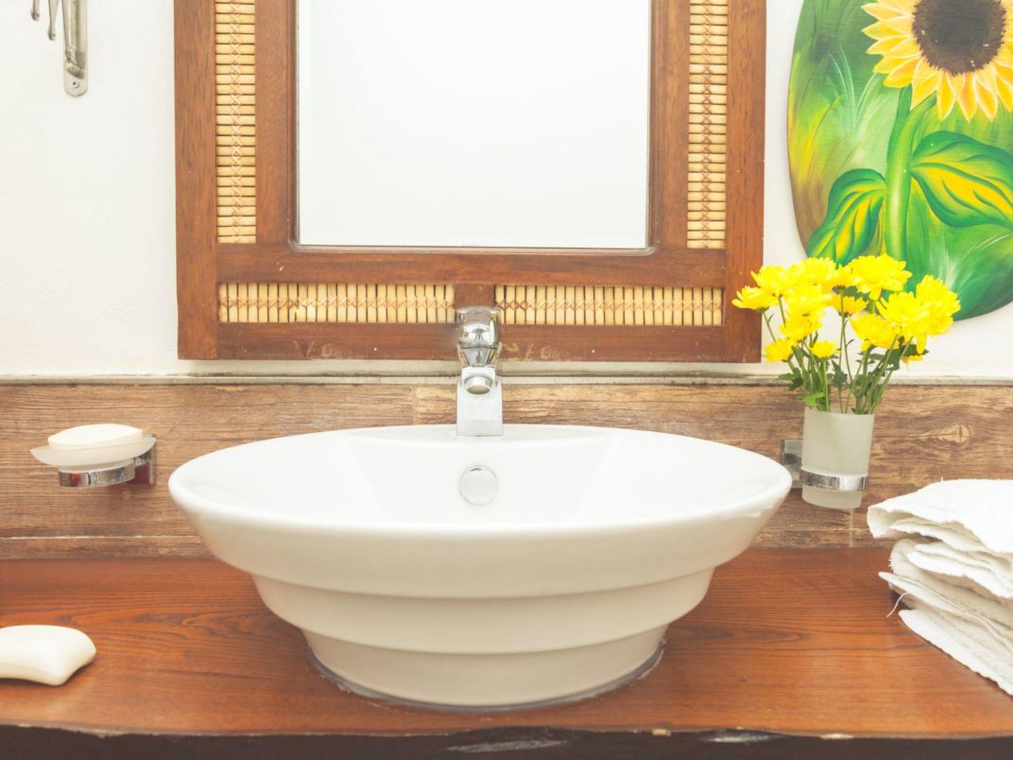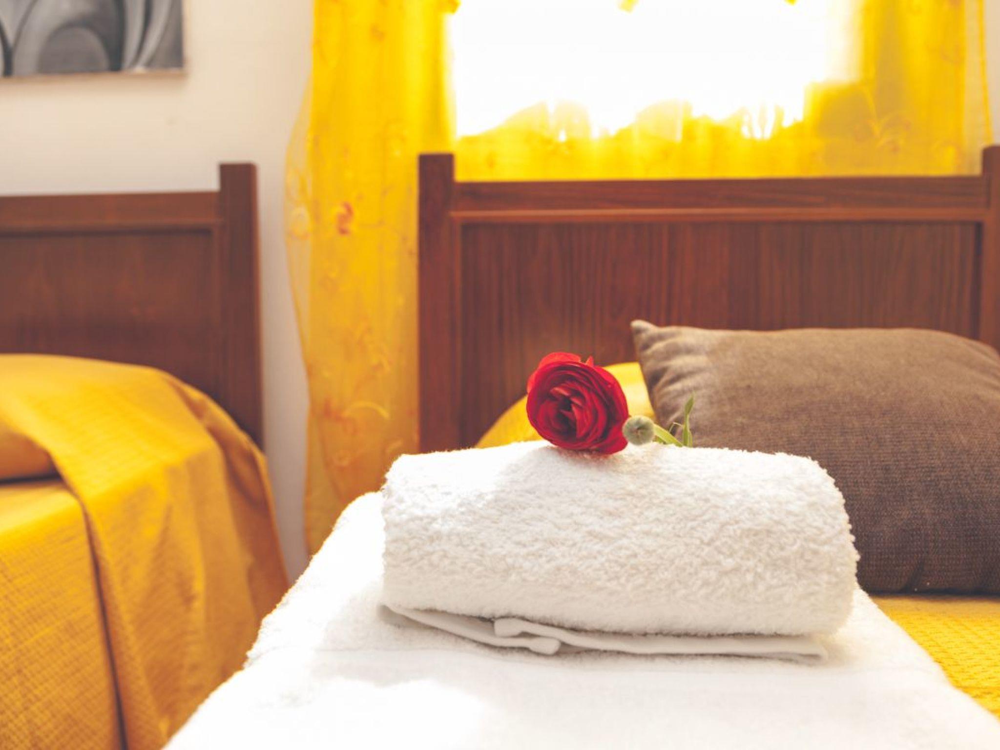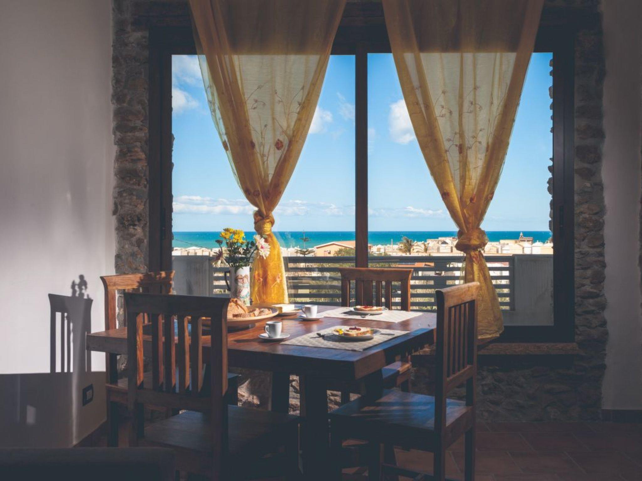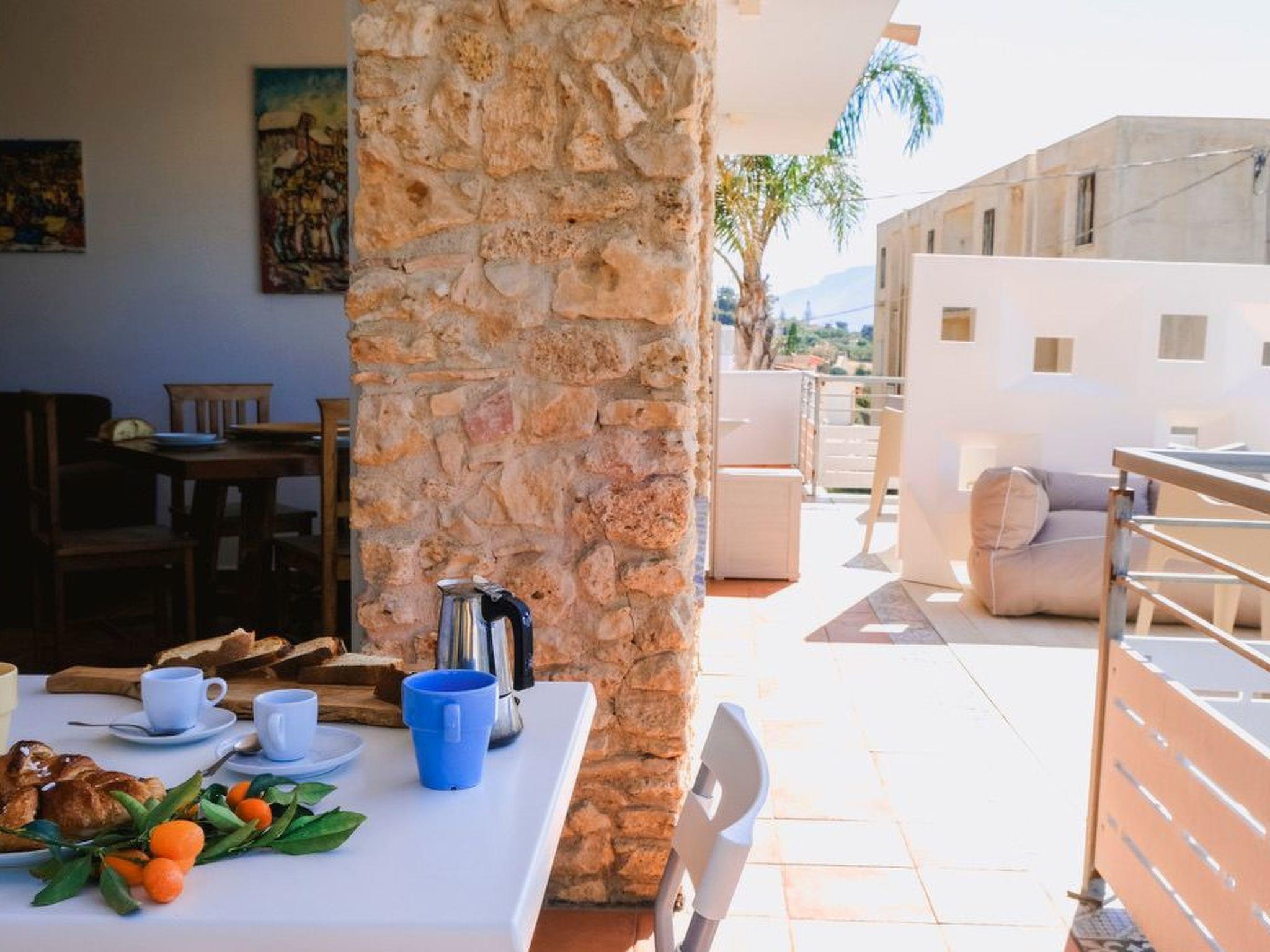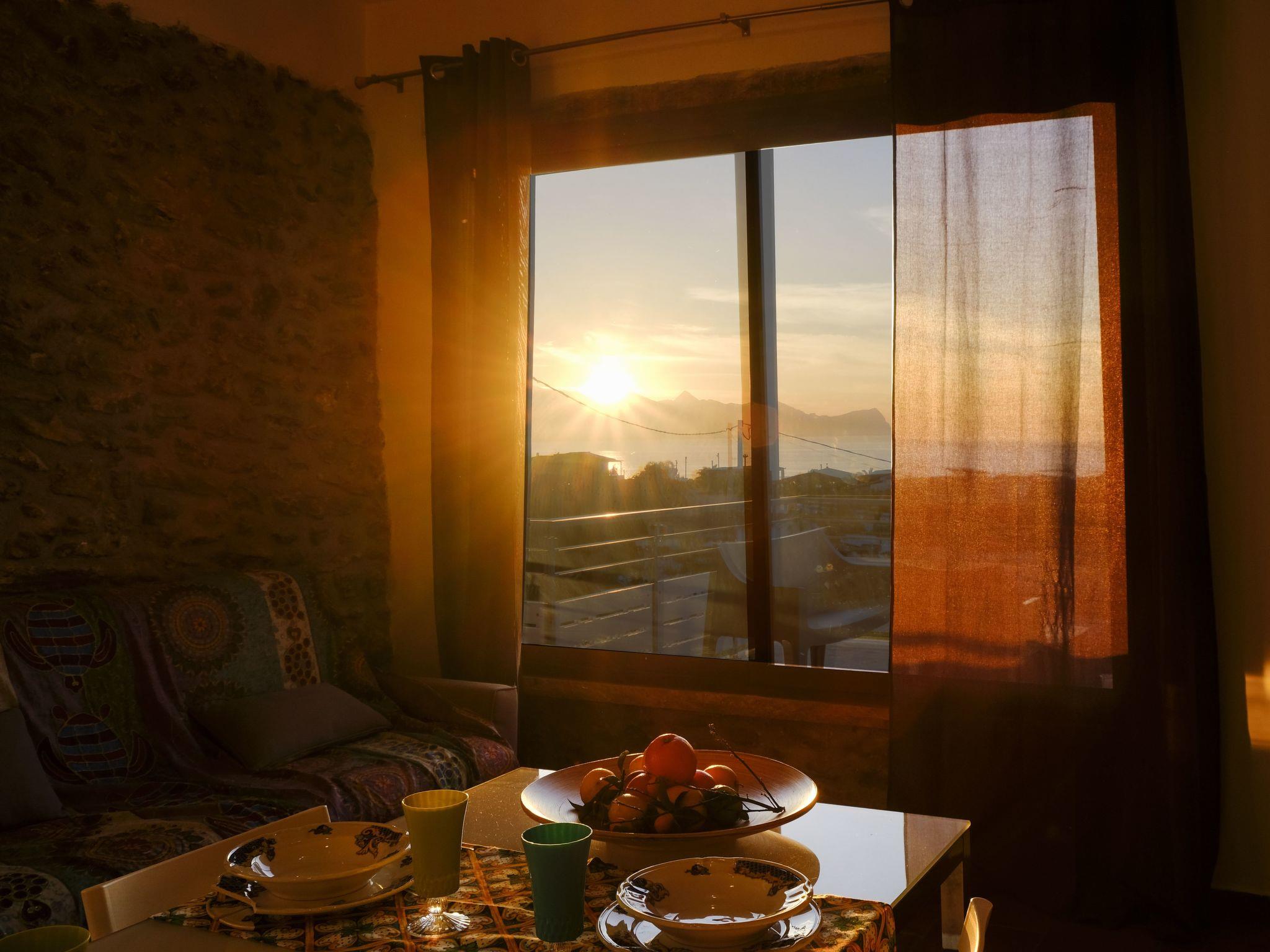 The interior of the flat is elegant and functional, comprising two bedrooms - a double with large windows overlooking the garden and a twin, which can be converted into two singles or a second double as required. The characteristic en-suite bathroom has a shower, stone walls and a solid wood and steel sink, complemented by a small window that adds a touch of brightness. The kitchen opens onto a cosy living room adorned with 19th-century Sicilian majolica tiles and a local stone wall, which together create a tranquil and inviting atmosphere.