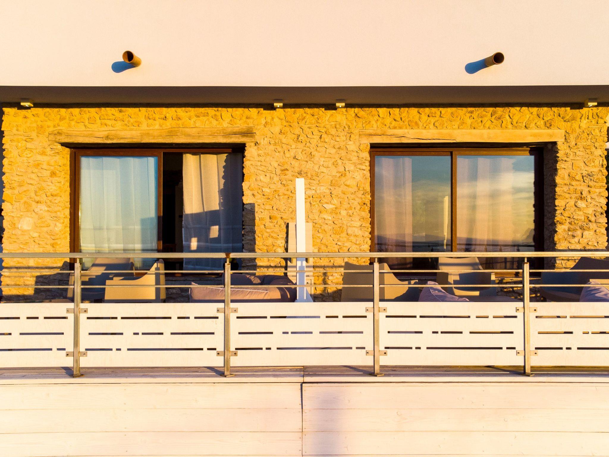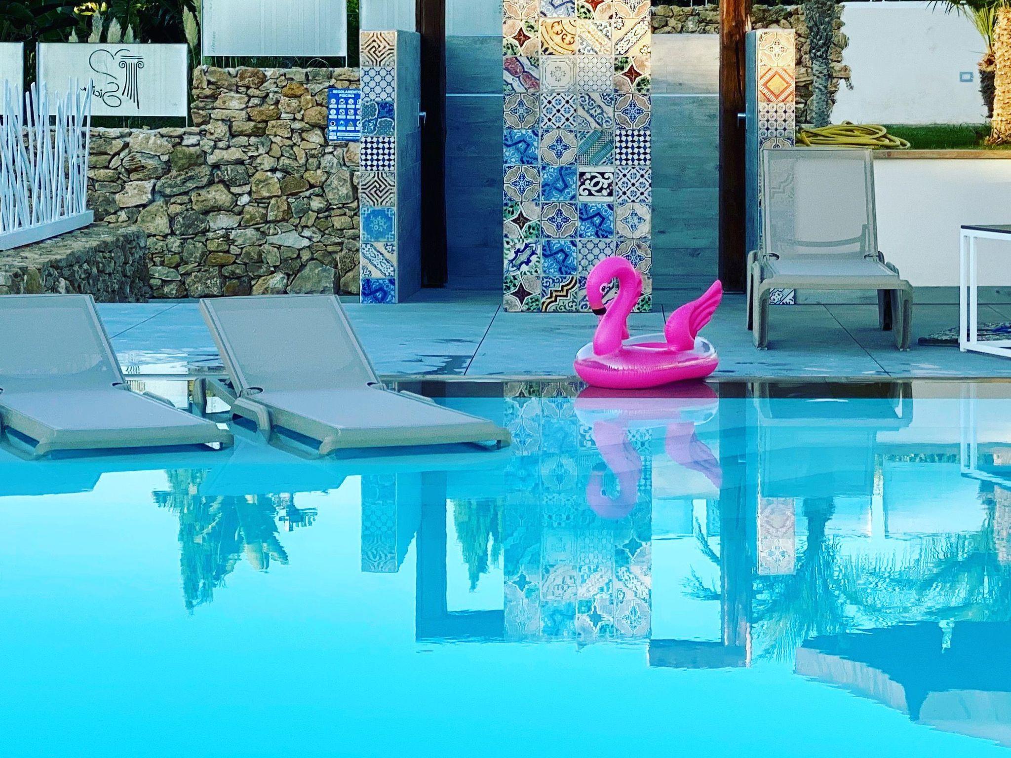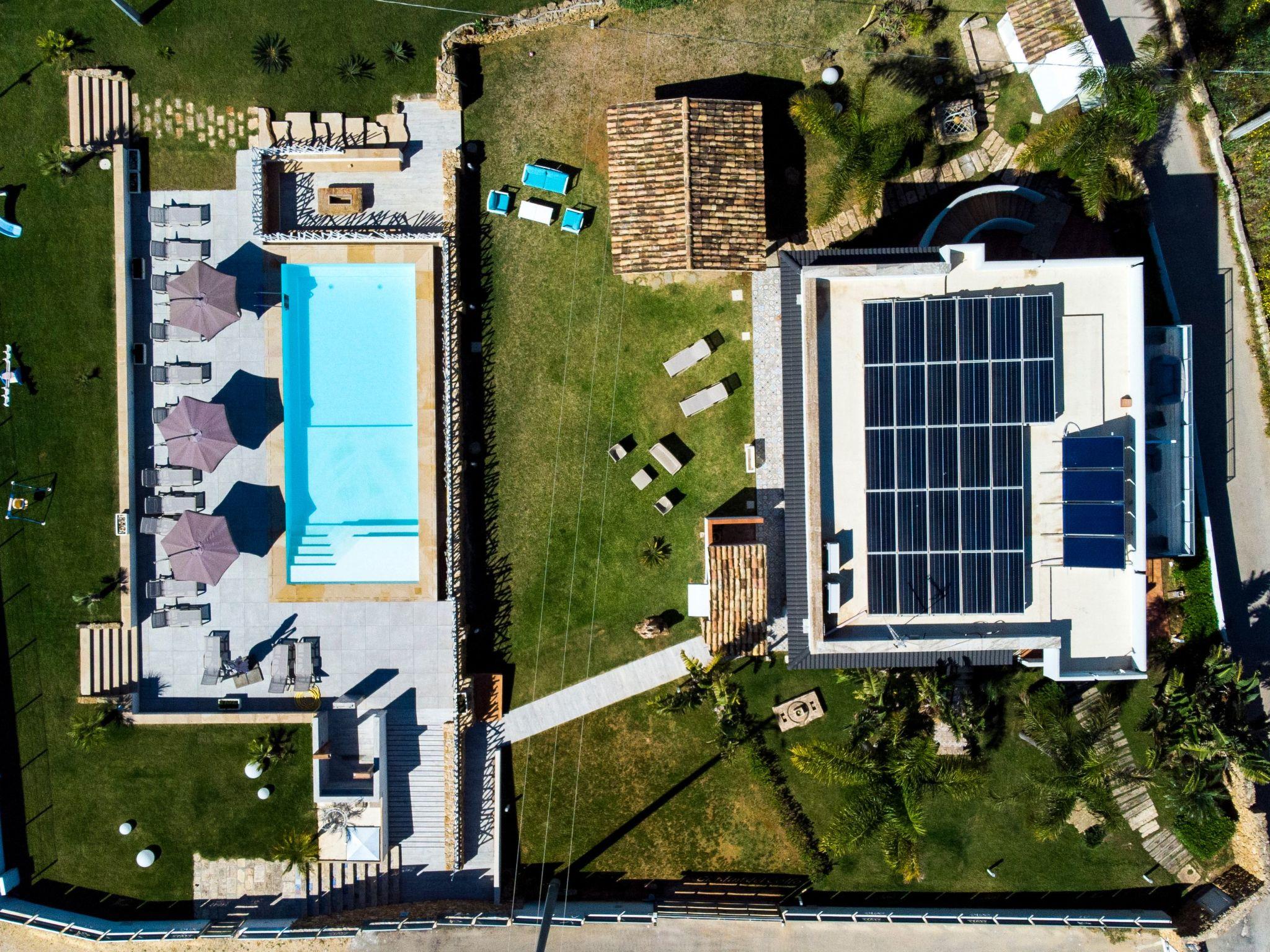 The outside of the flat is no less welcoming: a fantastic infinity pool with salt water, perfect for families with children; in the solarium area there are two beautiful showers with cold and hot water. A second bathroom is located in the garden. All this allows for outdoor living with all the necessary comfort. The small but charming private veranda and a patio with sea view, equipped with table and chairs, offer a perfect corner for romantic sunset dinners or wake-up breakfasts, separate and private from the other flats.