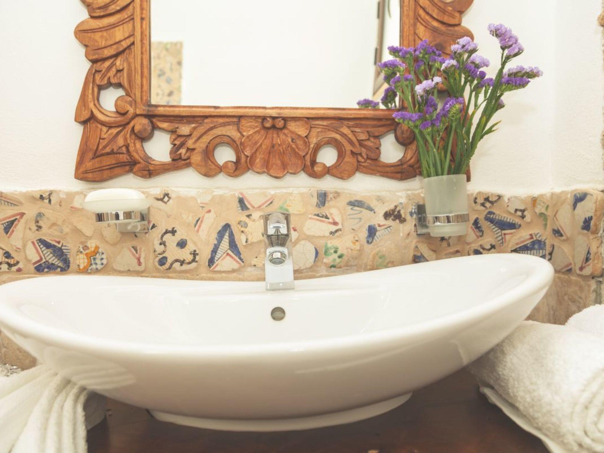 Internally, the flat consists of two elegant rooms including a double bedroom with a panoramic window overlooking the garden and a twin bedroom, smaller than the first, which can easily be converted into two singles or a second double bed depending on your needs. Each room enjoys an atmospheric view of the garden, ensuring a peaceful and rejuvenating awakening. The property also has an en-suite bathroom with a shower, featuring a stone wall, a washbasin with a solid wood and steel base, a toilet, a bidet and a small window for natural ventilation. The living room with open kitchen offers a cosy experience with its large window that opens onto the veranda, where tranquillity meets the beauty of design, thanks to the majestic stone wall and majolica tiles from the Sicilian 1800s.
