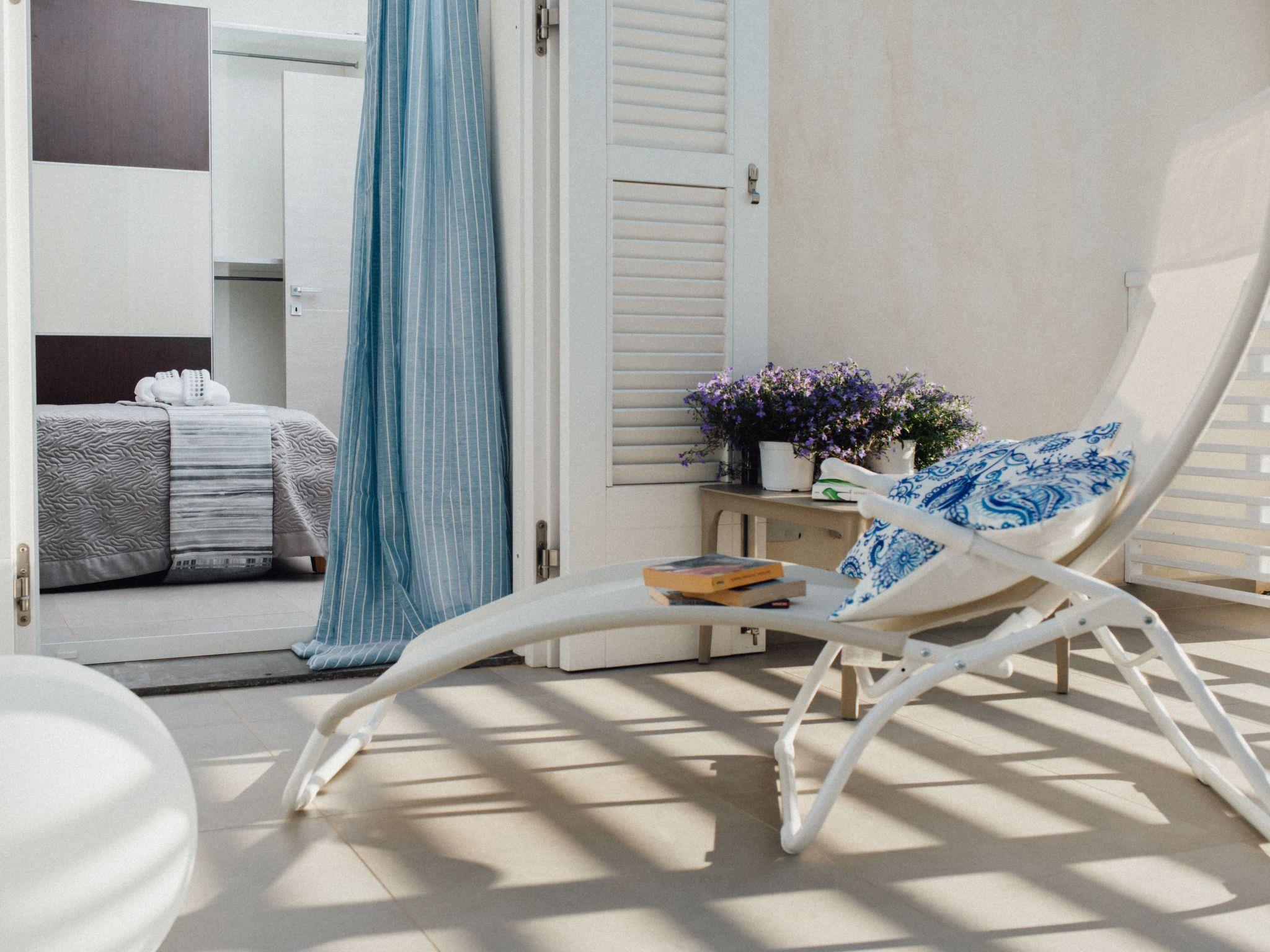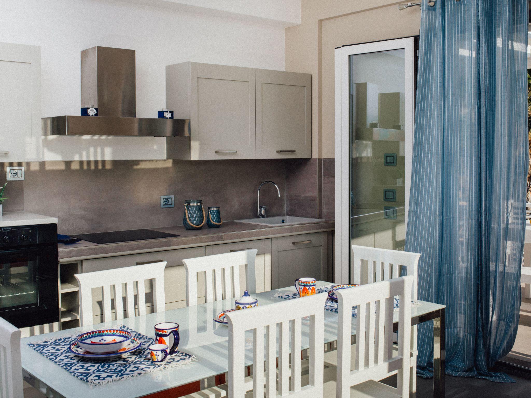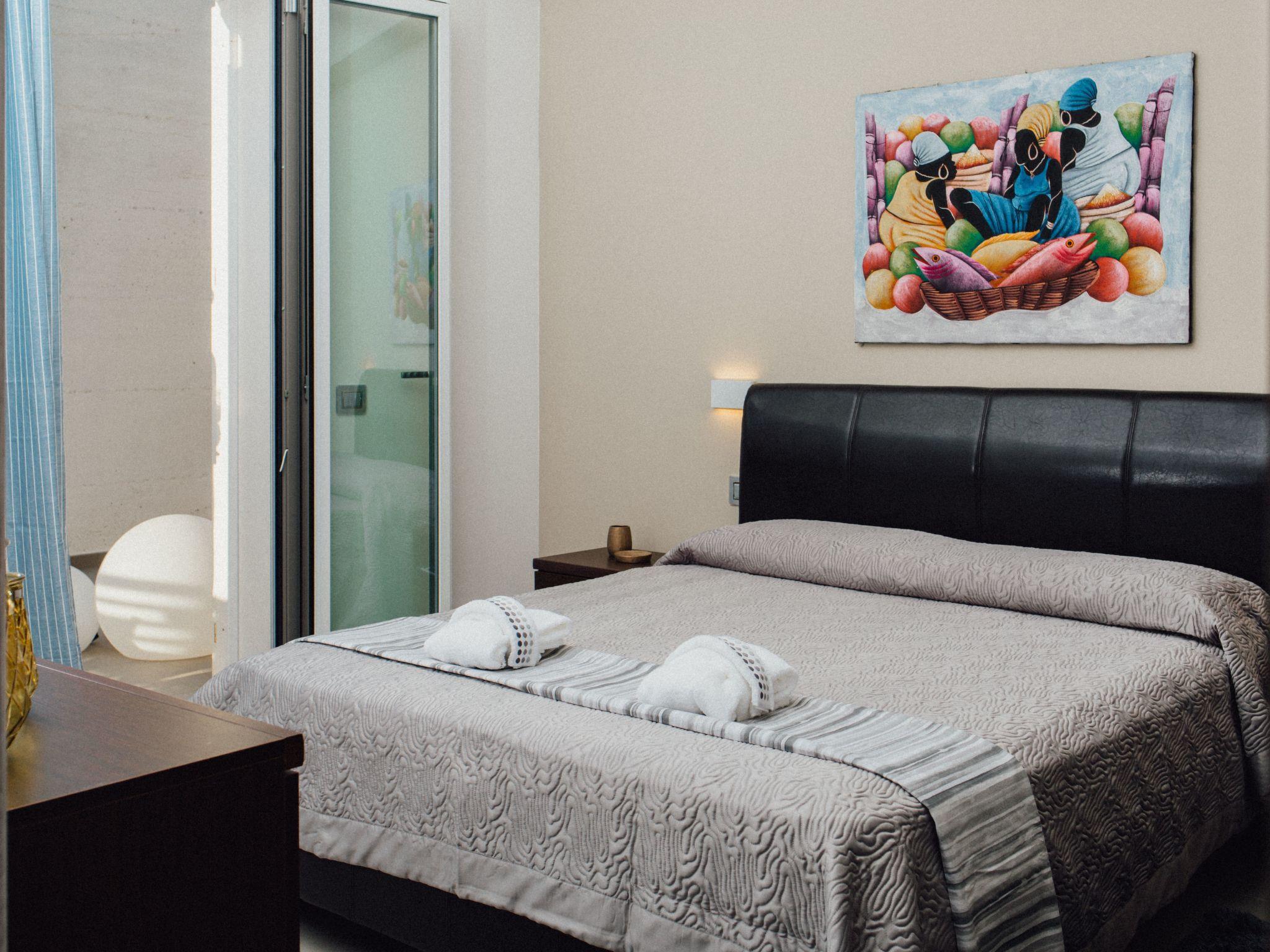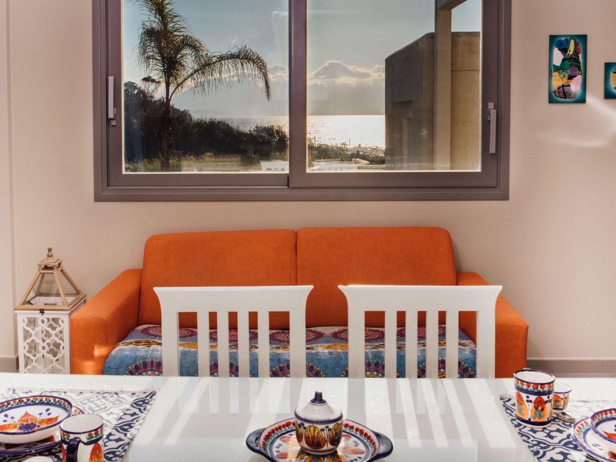 The Villa consists of 2 double bedrooms, a third bedroom can be arranged either with a double bed, or with two singles, according to the guest's needs. A sofa bed, sleeping two, is located in the living room. Every single bedroom has a window, in addition to the door/glass window that opens onto the small terrace, where you can relax in total relaxation; No. 2 shower rooms, bordering the bedrooms, the latter equipped with tablecloths, hair dryer, bidet, toilet, hanging washbasin; Access is from the living room/kitchen, where the glass window that opens onto the garden and the sea stands out;