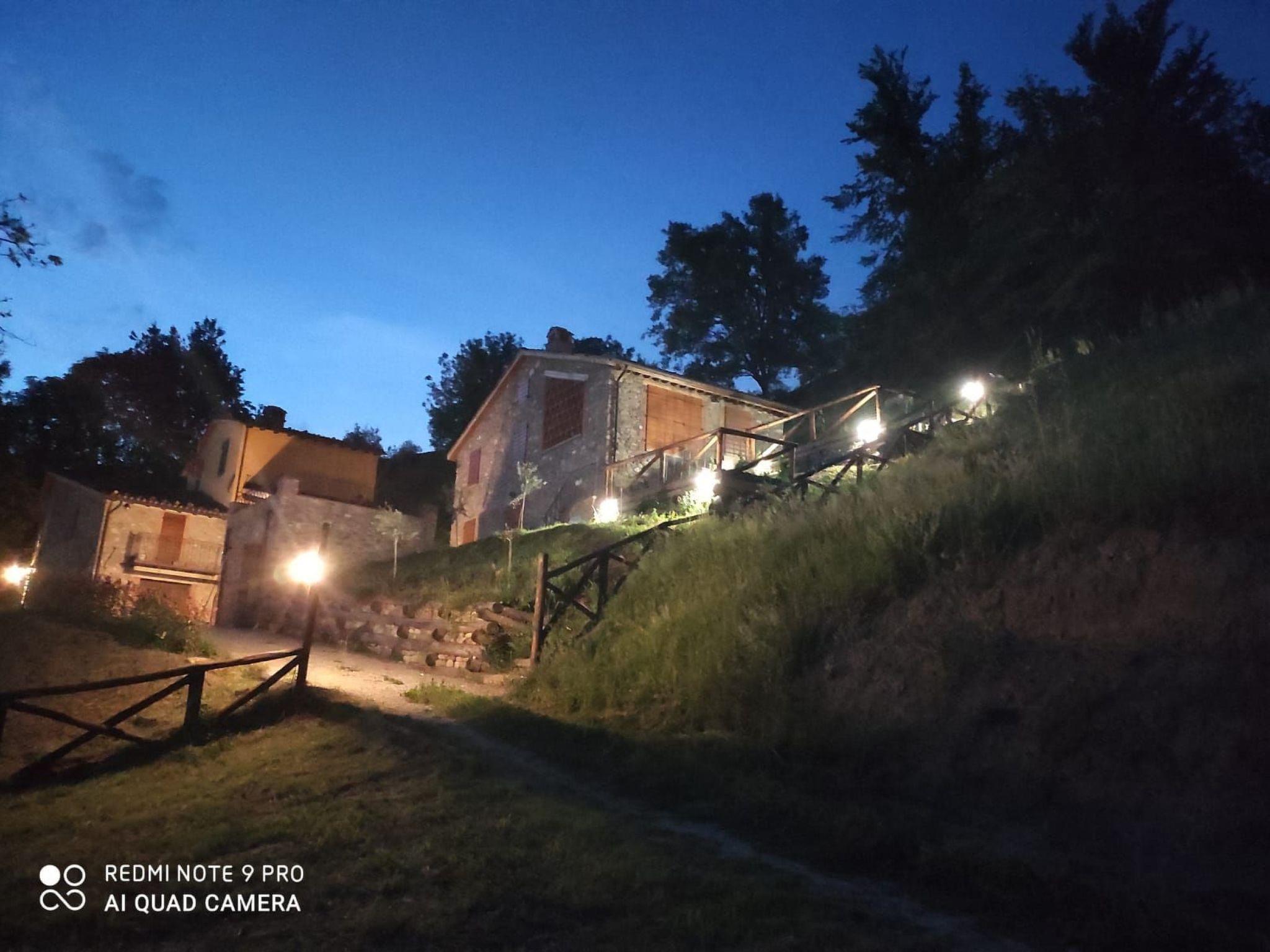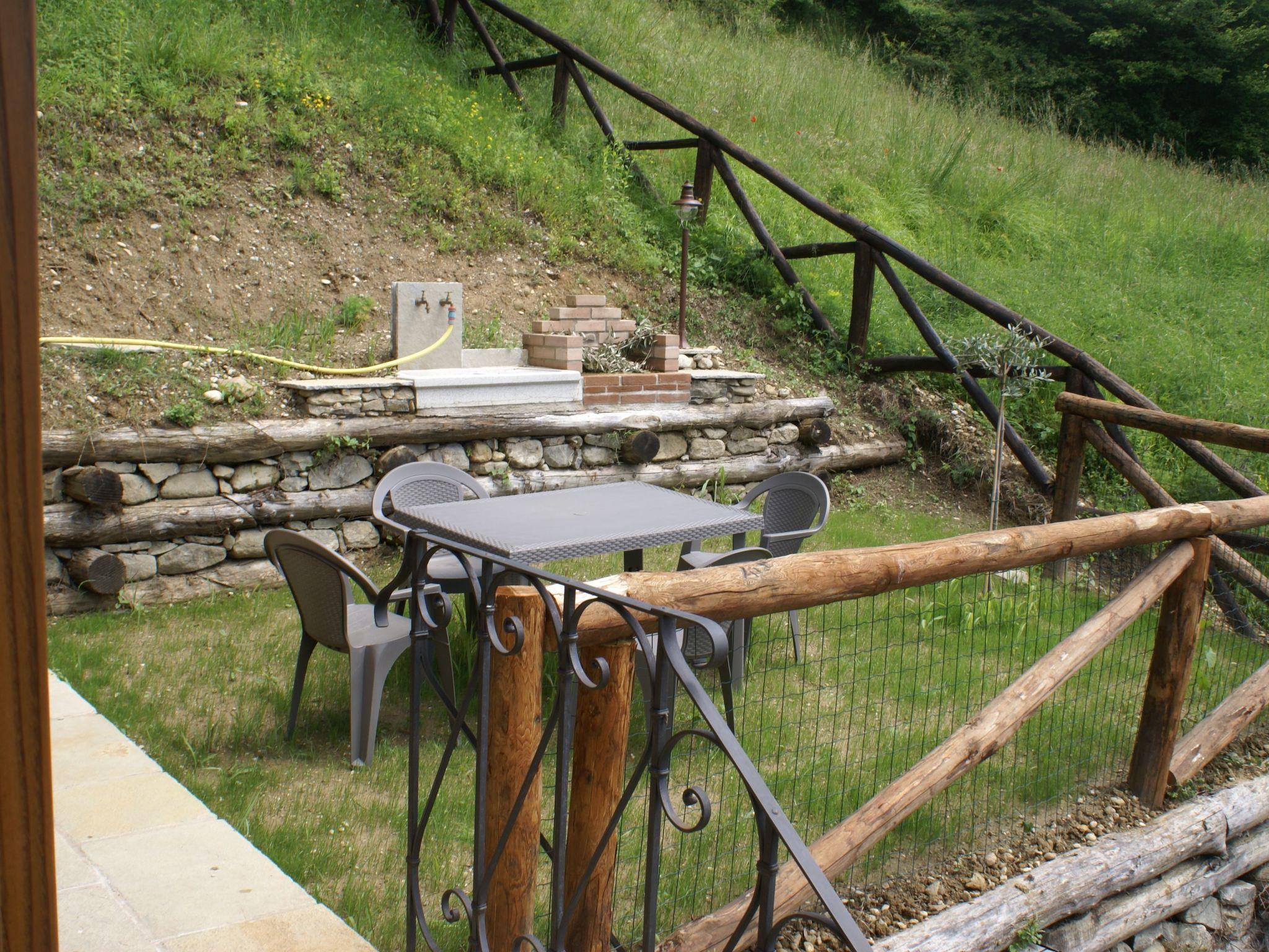 Two small gardens in front of the entrance with barbecue, sink, deck chairs, table and chairs for outdoor dinners/lunches, umbrella for the sun, access to the approximately 16,000 m2 olive grove which extends to an adjacent wood. Parking under the house for loading and unloading and a maximum of two parking spaces a few meters away. Ample parking for 6/7 cars or medium-sized buses. Splendid terrace with total landscape on the valley and adjacent mountains.