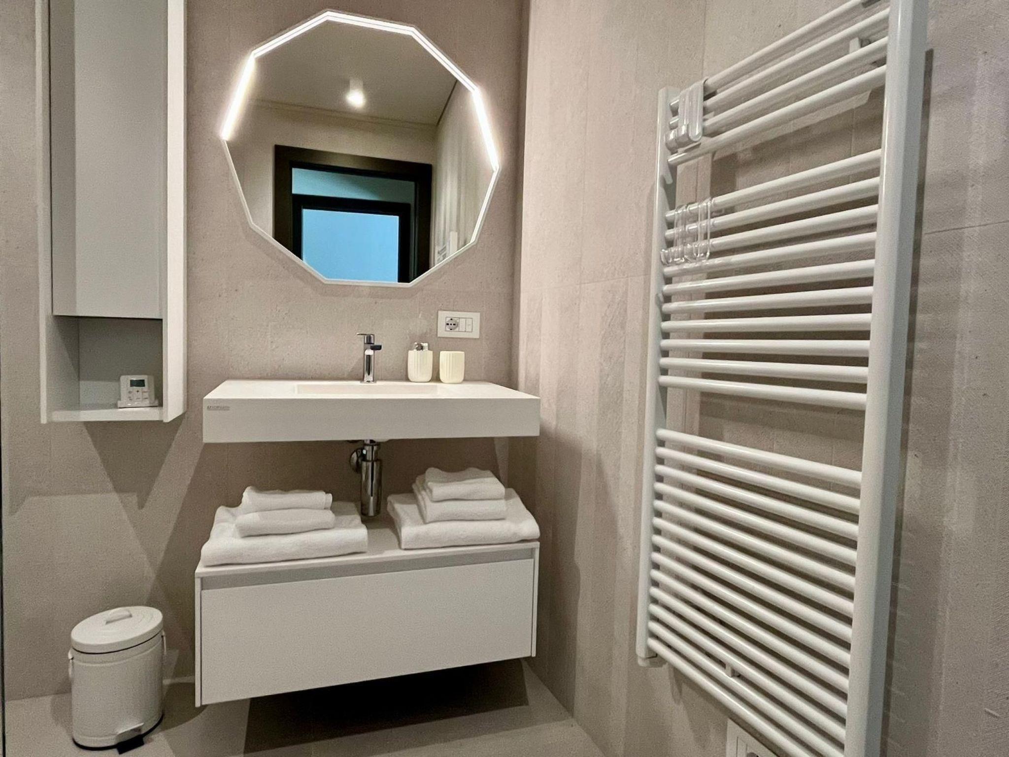 The flat, energy class 'A', is approximately 83 square metres and is on one level. The triple-glazed windows limit heat dispersion to a maximum and perfectly soundproof the environment. Underfloor heating, air cooling and adjustable electric shutters guarantee maximum privacy.