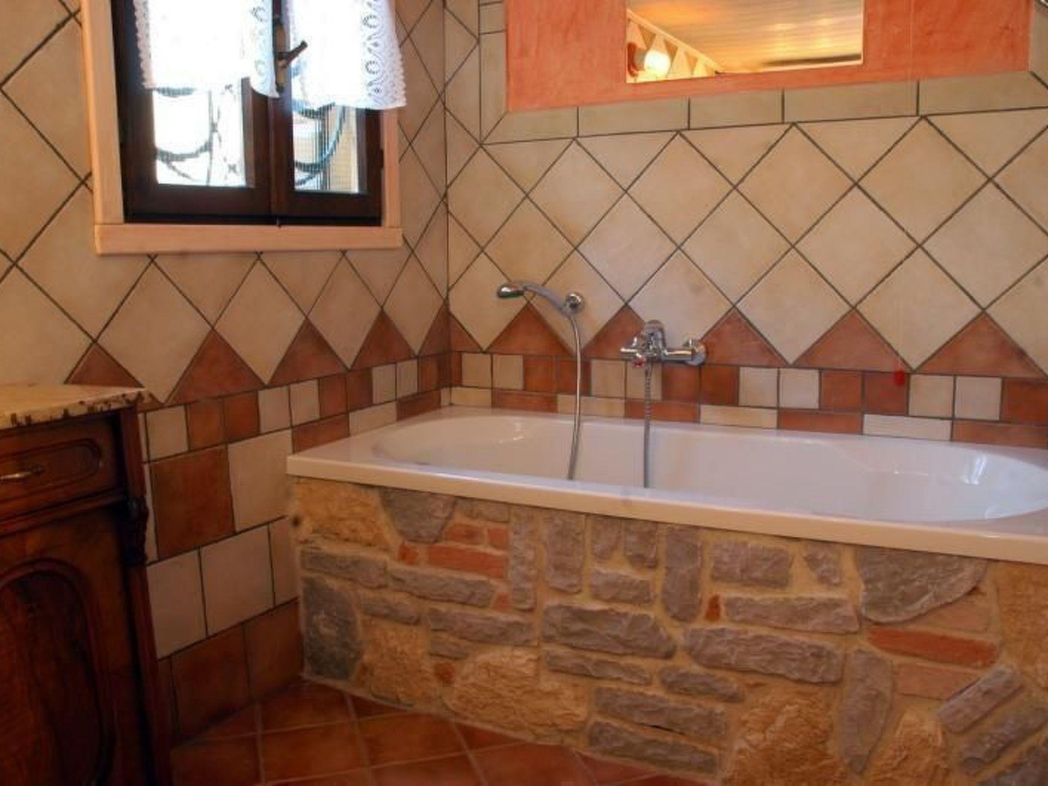 Inside, **Casa Carla** stands out for its comfortable furnishings on two levels, both easily accessible. The masonry ground floor boasts a cosy living room with sofa, armchairs, wood-burning fireplace, table and chairs and satellite TV, as well as a washing machine for all your practical needs. The main bathroom, decorated in rustic style with stone cladding, includes a modern shower stall and bathtub, while a second bathroom is equally well equipped.