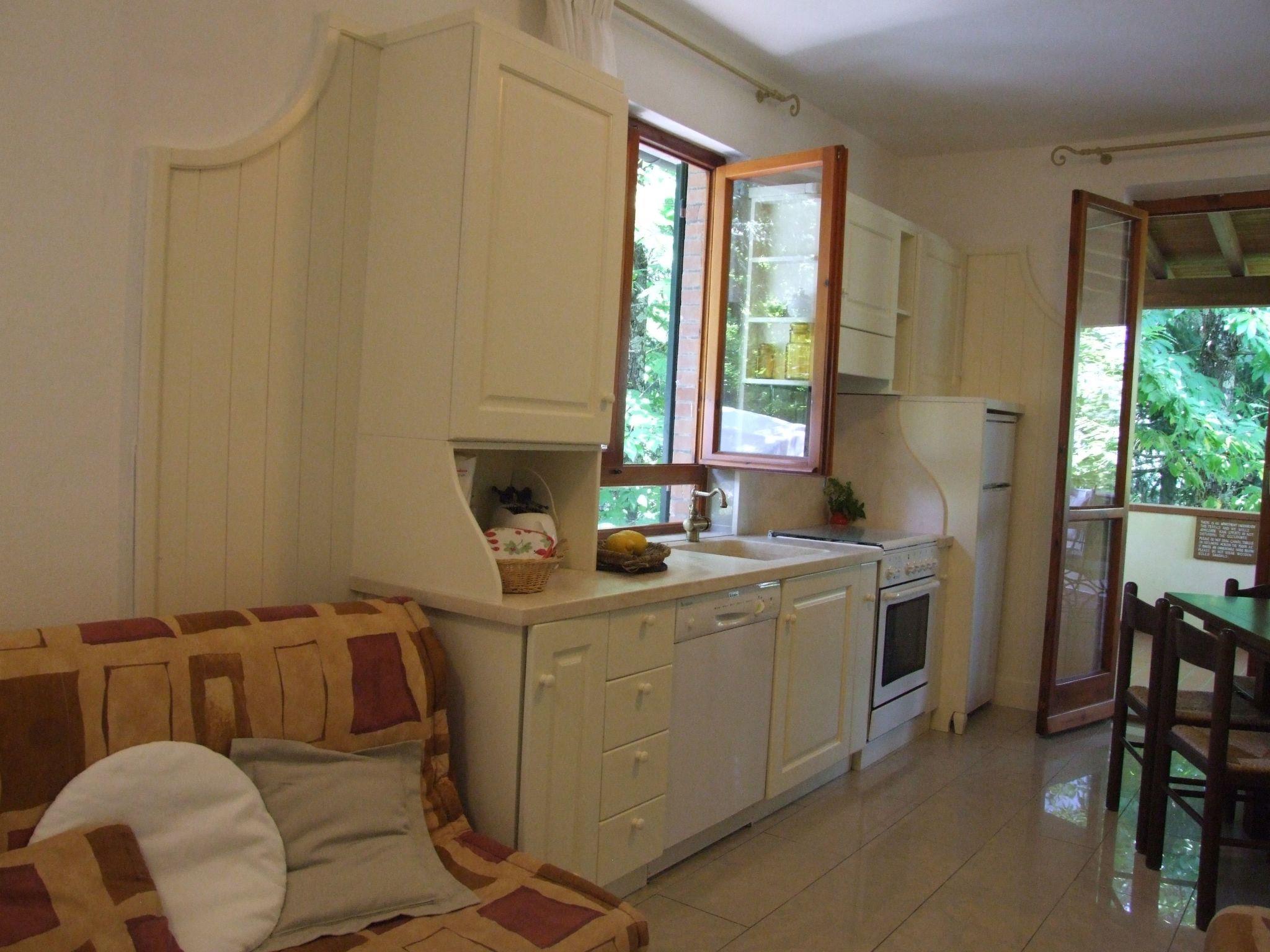 Arcobaleno is an elegant and bright flat located on the first floor of a villa with a large garden and swimming pool, surrounded by greenery. On the west side of the villa there is a furnished area in the garden with barbecue, wrought-iron table and chairs, a rocking sofa and a comfortable outdoor shower. The entrance to the flat is on this side. Arcobaleno consists of a living room with a double sofa bed and an armchair bed, a kitchenette with dining area and a beautiful covered terrace. The living area leads to the two bedrooms, a first double room and a second double room with an additional single bed. Both rooms have en suite bathrooms with shower and bidet. It is possible to use the swimming pool shared with the guests of the Villa and Villa Il Cipresso. Arcobaleno is located in the hills of Sassetta, in the calm and tranquillity of the countryside. It is about 800 metres from the centre of Sassetta and 12 km from the sea at Castagneto Carducci. Guests have free access to a botanical garden and a private beach located 17 kilometres from the Villa.