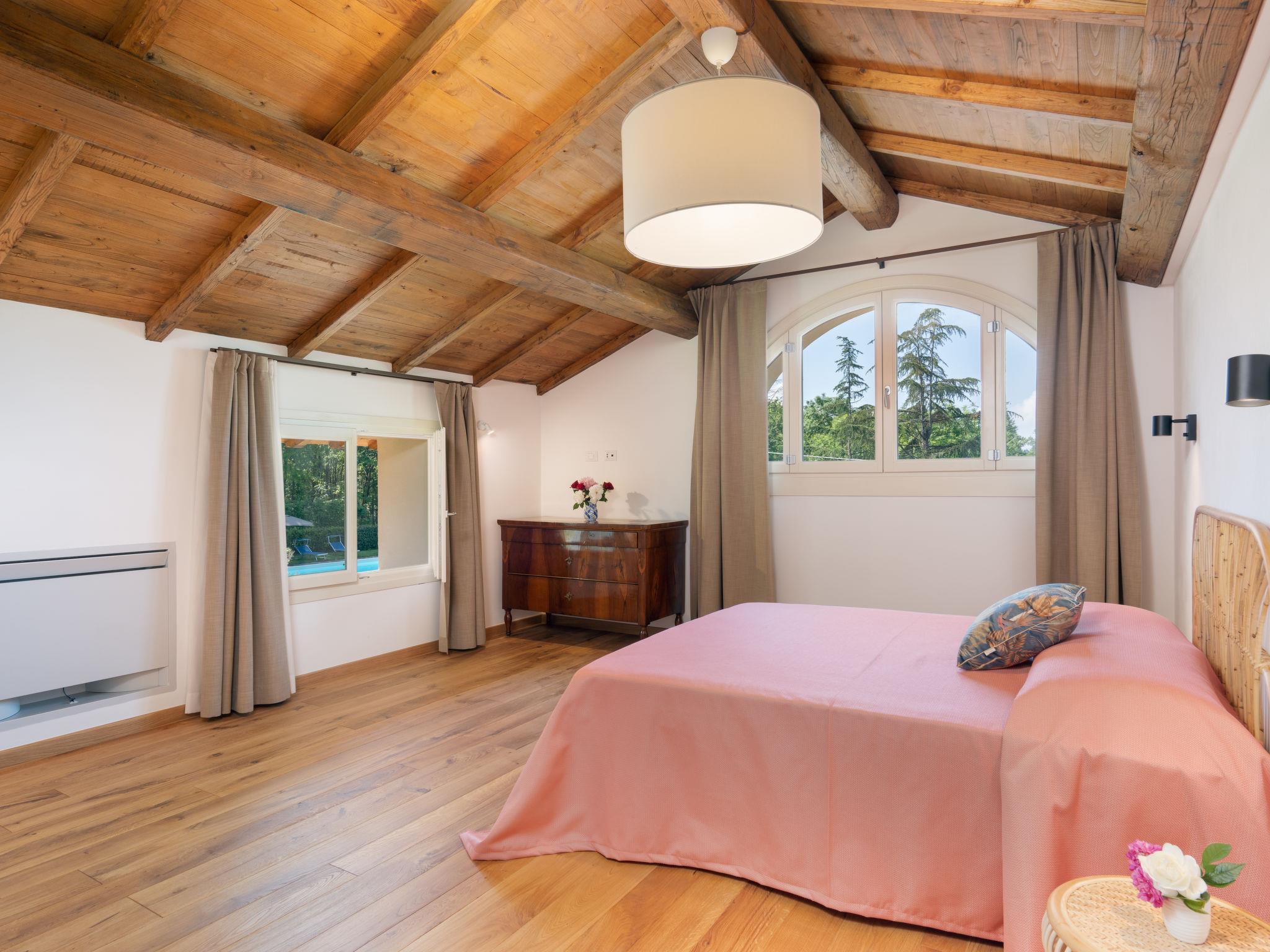 "Il Fienile", 4-room house 140 m2 on 2 levels, on the ground floor. Renovated in 2023, comfortable and cosy furnishings: living/dining room with satellite TV and air conditioning. Exit to the loggia. 1 room with 3 beds and air conditioning. Exit to the garden. Kitchenette (oven, dishwasher, 4 induction hot plates, toaster, kettle, microwave, freezer, electric coffee machine). Shower/bidet/WC. Upper floor: 1 double bedroom with shower/bidet/WC and air conditioning. 1 room with 1 french bed (140 cm), shower/bidet/WC and air conditioning. Terrace furniture, barbecue. Panoramic view of the countryside. Facilities: washing machine, iron, baby cot for up to 2 year olds, hair dryer. Internet (WiFi, free). Suitable for families. IT048004C2PROZLZIG