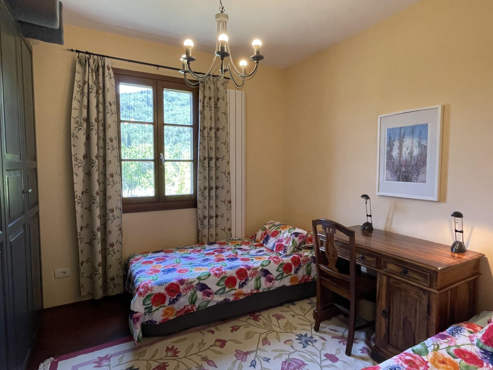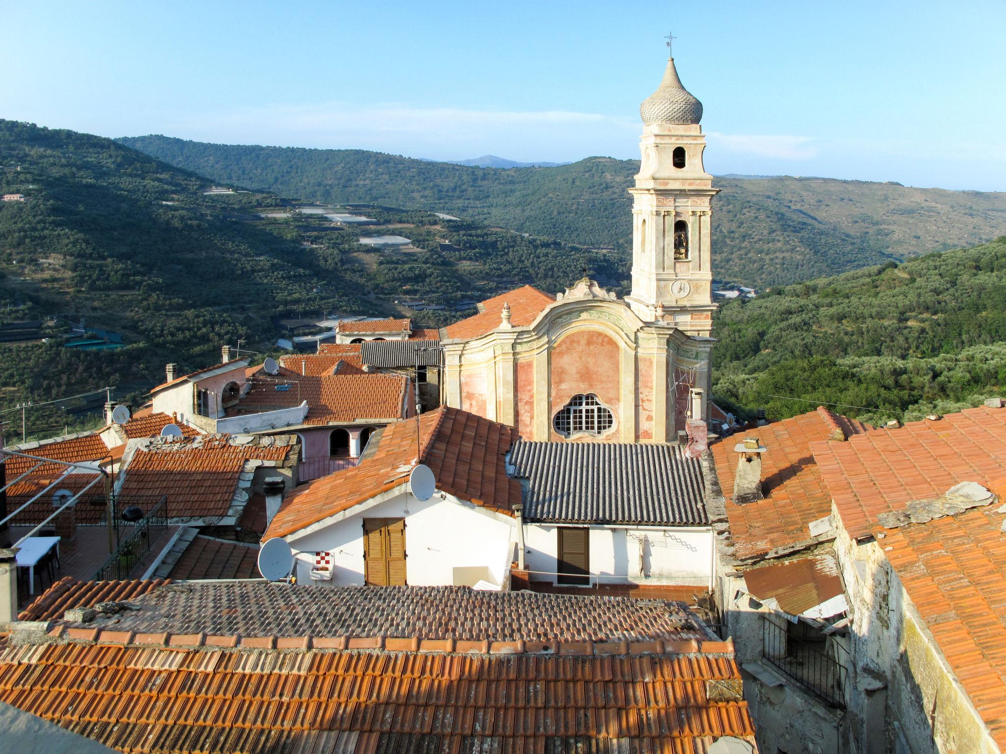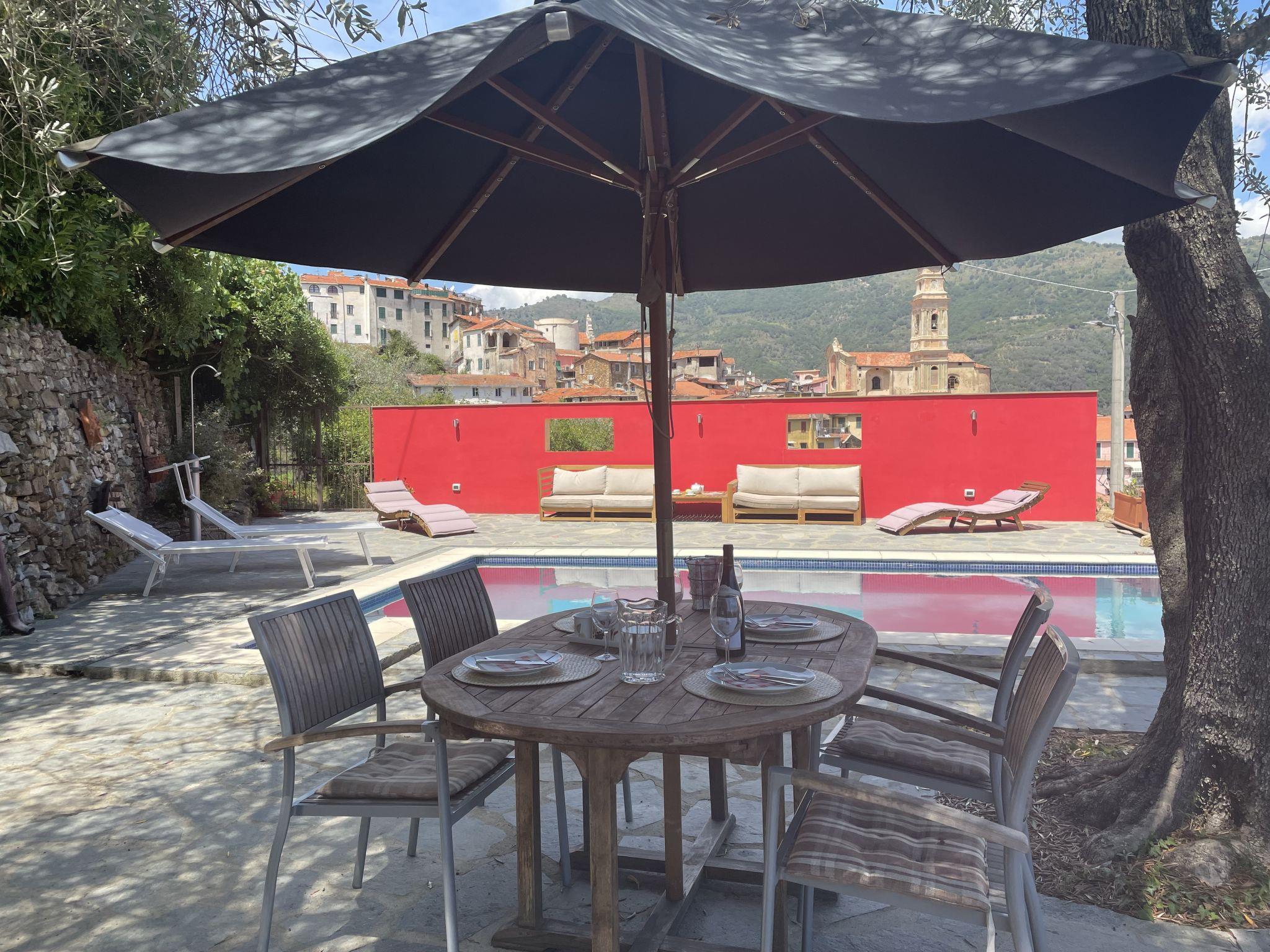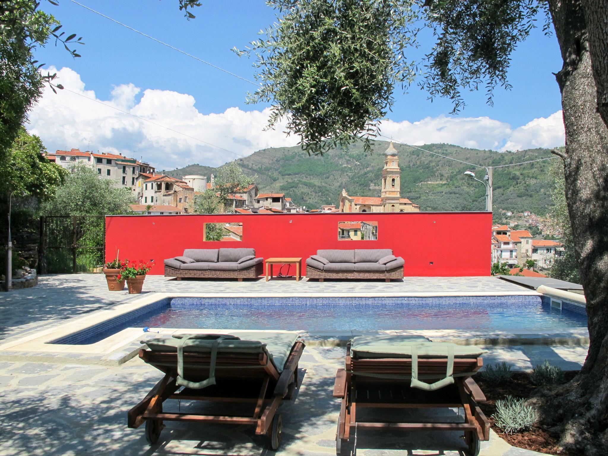 Comfortable single-family house "Il Rifugio", 380 m a.s.l., detached, built in 2011, surrounded by trees and fields. 300 m from the centre of Boscomare, on the outskirts, 9 km from the centre of San Lorenzo al Mare, 15 km from the centre of Imperia, 9 km from the sea. Private: beautiful, well-kept terraced garden, 300 m2 with wildlife garden and trees, swimming pool (7 x 3 m, depth 150 cm, seasonal availability: 15.May. - 01.Oct.). Outdoor shower, patio, terrace, garden furniture. In the complex: sun terrace. Stepped path (14 steps) to the house. Parking at the house. Shop 4 km, supermarket 9 km, restaurant, bus stop 200 m, railway station "Imperia Porto Maurizio" 15 km, sandy beach "San Lorenzo al Mare" 9 km, indoor swimming pool 15 km. Golf course (18 hole) 32 km.