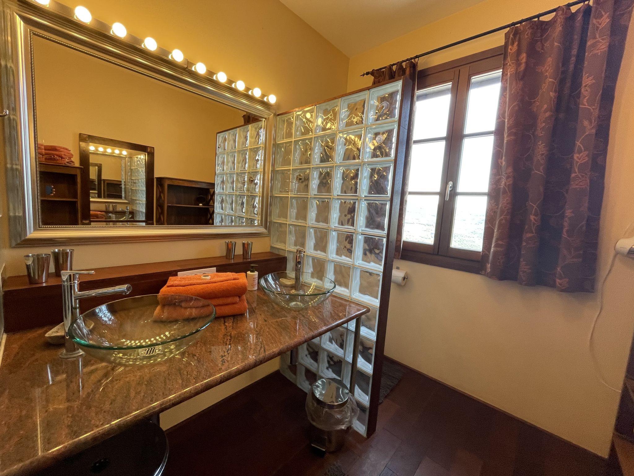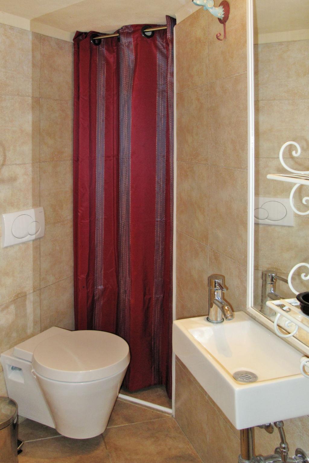 "Il Rifugio (BCM110)", 3-room house 80 m2 on 2 levels. Comfortable and tasteful furnishings: living/dining room with dining table, satellite TV, CD-player and hi-fi system. Exit to the terrace. Open kitchen (oven, dishwasher, 5 gas rings, toaster, kettle, freezer, electric coffee machine). Sep. WC. Upper floor: 1 room with 1 double bed (160 cm). 1 room with 2 beds (80 cm). Shower/WC, double hand-basin. Gas heating, air-conditioning. 2 large terraces, south facing position and, east facing position. Terrace furniture, barbecue, deck chairs (4). Very beautiful view of the countryside and the resort. Facilities: washing machine, dryer, mosquito net, children's high chair, baby cot. Please note: non-smoking house. IT008041C2JHNIRYAT
