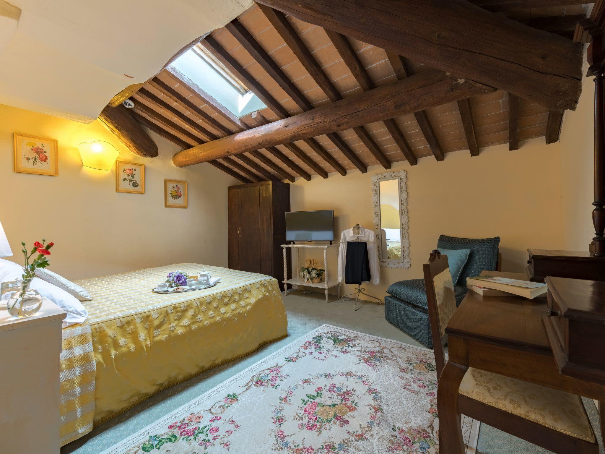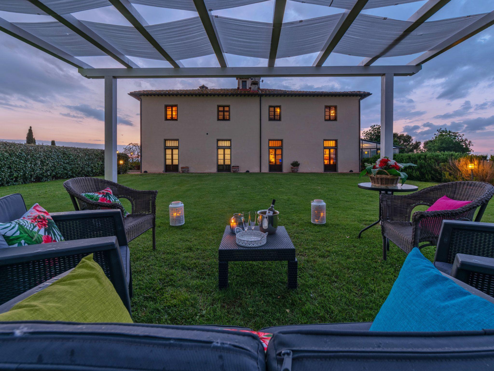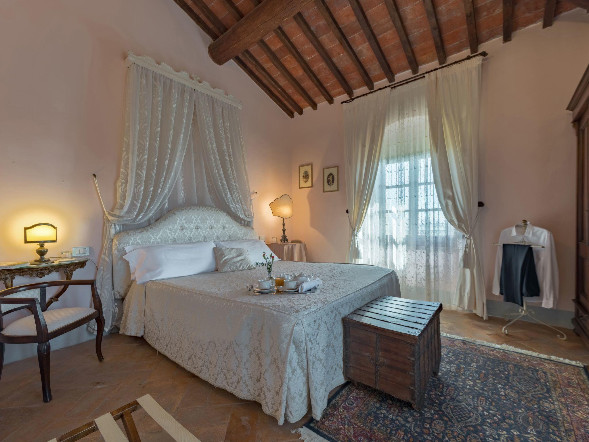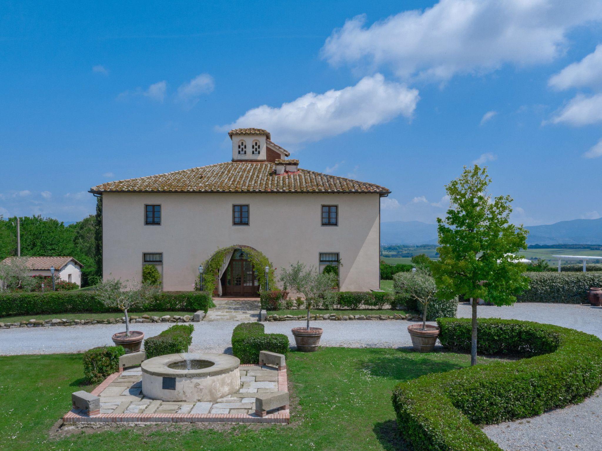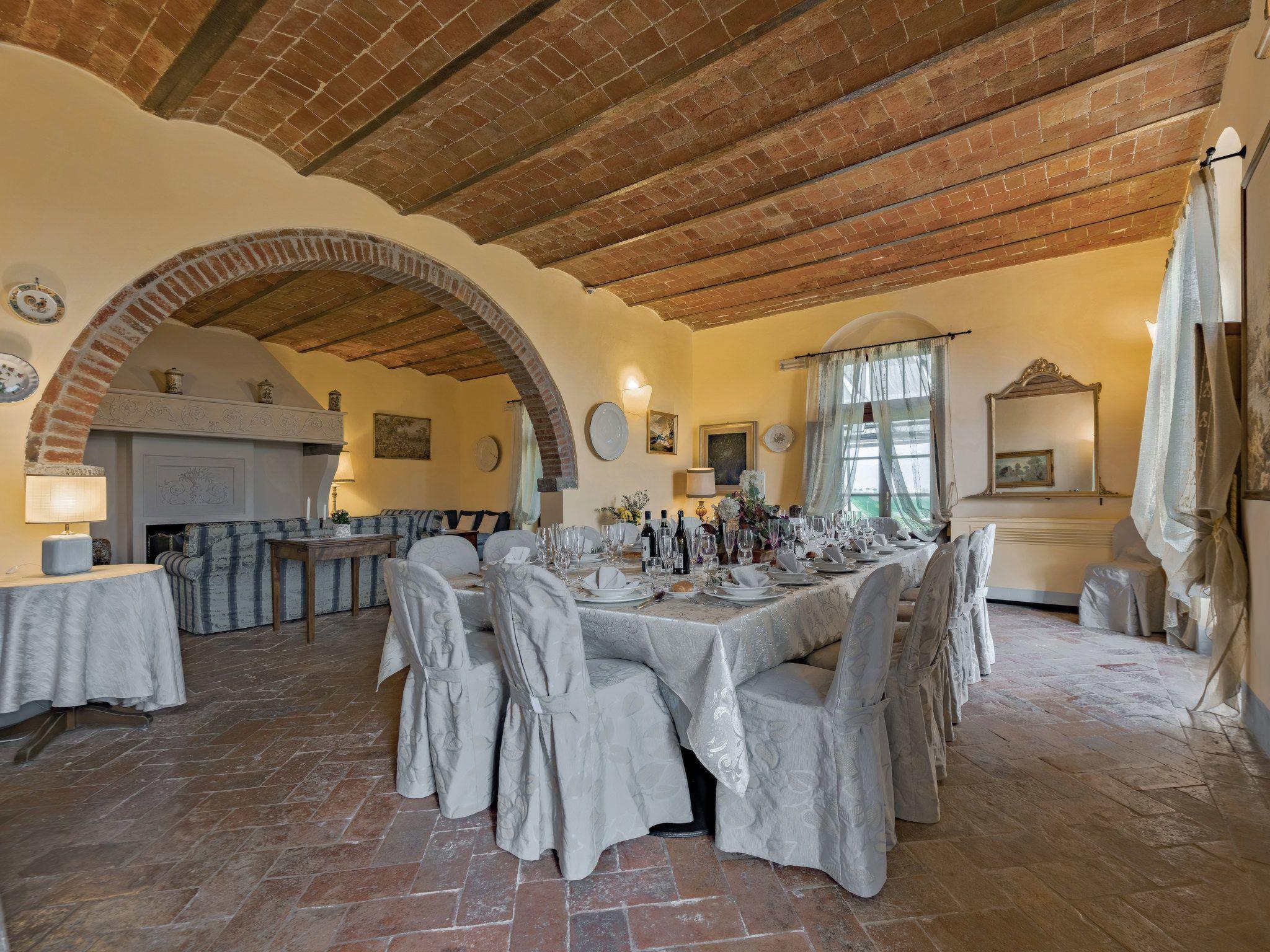 This fantastic villa is surrounded by olive groves and gardens and is ideal for an unforgettable, relaxing holiday in one of Tuscany's most beautiful landscapes: the Val di Chiana. Here you will be close to renowned cities of art and history such as Florence, Siena, Cortona, Assisi, Montepulciano and the Chianti area. The villa retains its original architectural style, with terracotta floors, doors and windows with stone frames and ceilings with wooden beams and bricks. The period furnishings of the interiors, enriched with vintage objects and attention to detail, contribute to creating an exclusive atmosphere.