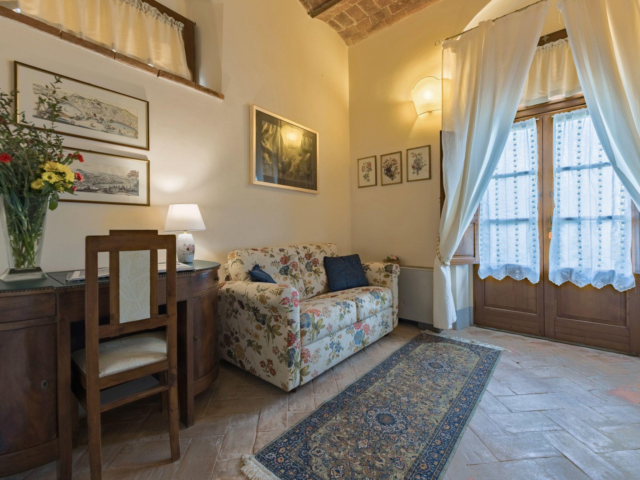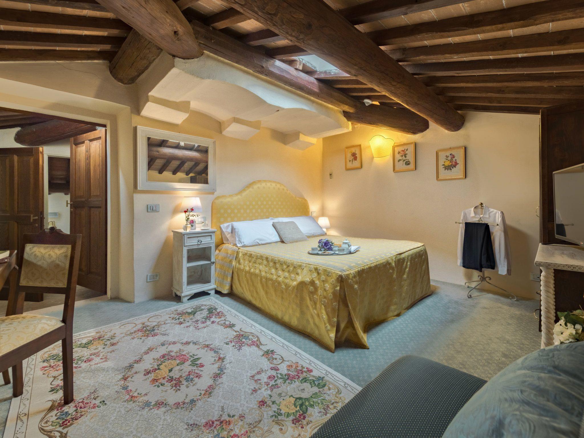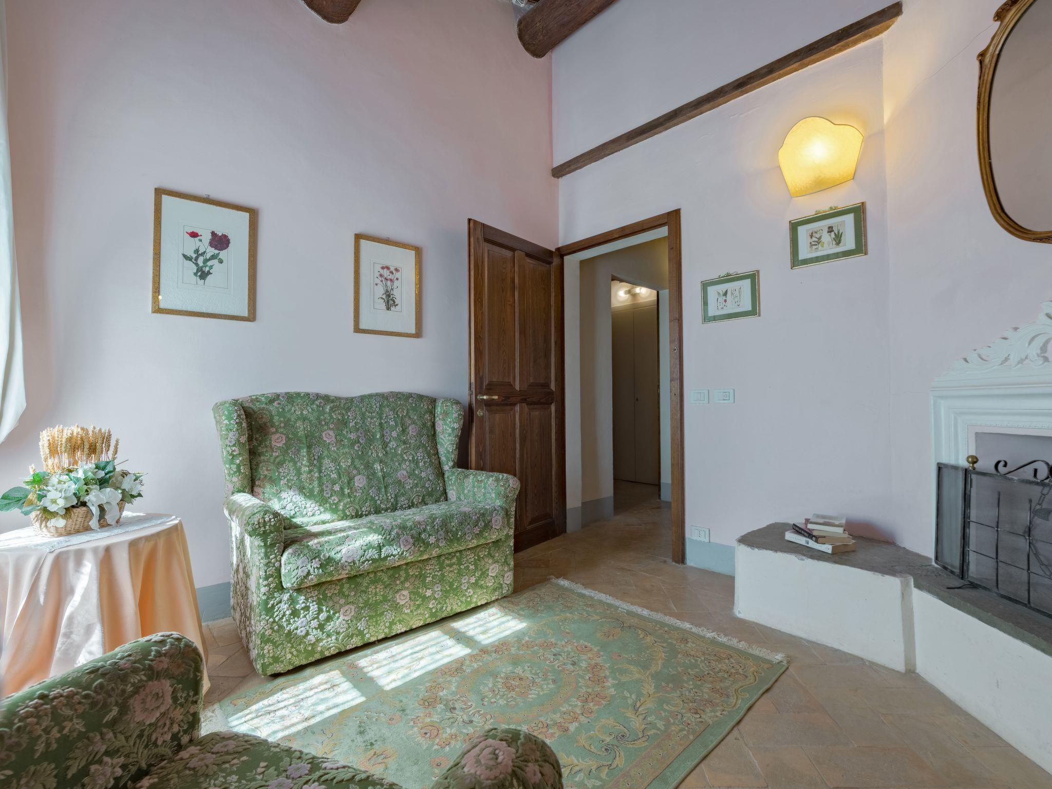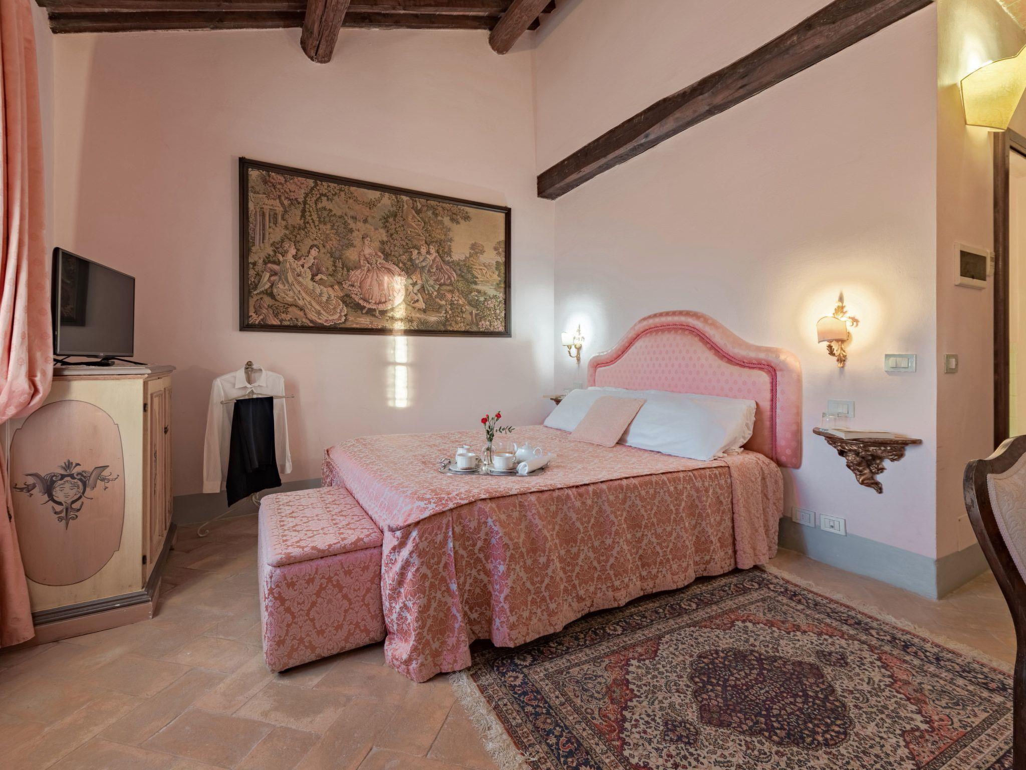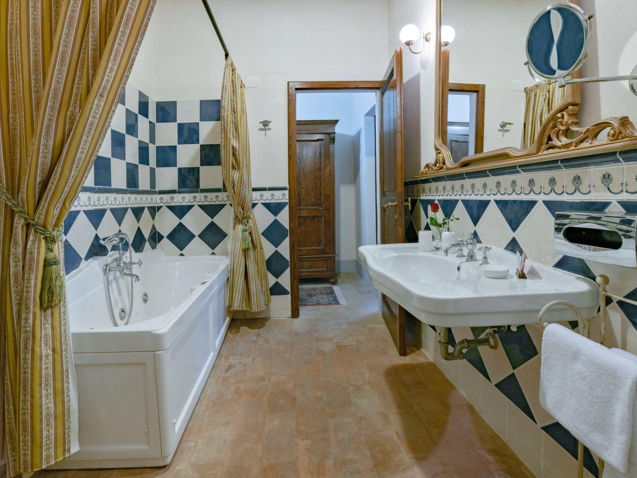 This fantastic villa is surrounded by olive groves and gardens and is ideal for an unforgettable, relaxing holiday in one of Tuscany's most beautiful landscapes: the Val di Chiana. Here you will be close to renowned cities of art and history such as Florence, Siena, Cortona, Assisi, Montepulciano and the Chianti area. The villa retains its original architectural style, with terracotta floors, doors and windows with stone frames and ceilings with wooden beams and bricks. The period furnishings of the interiors, enriched with vintage objects and attention to detail, contribute to creating an exclusive atmosphere.