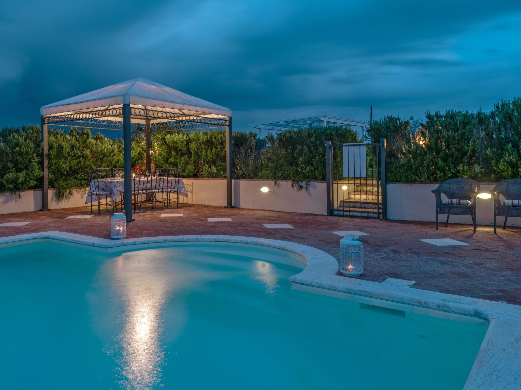 There are two swimming pools. The indoor pool is heated and has a whirlpool corner (extra charge, 350 €/week). A sauna is available in the same room (extra charge). The outdoor pool (12 x 6 m and 1.20 - 2.00 m deep) is located in an enclosed area of the garden. Here you can enjoy breathtaking views of the surrounding landscape or relax in the shade of the pavilion.