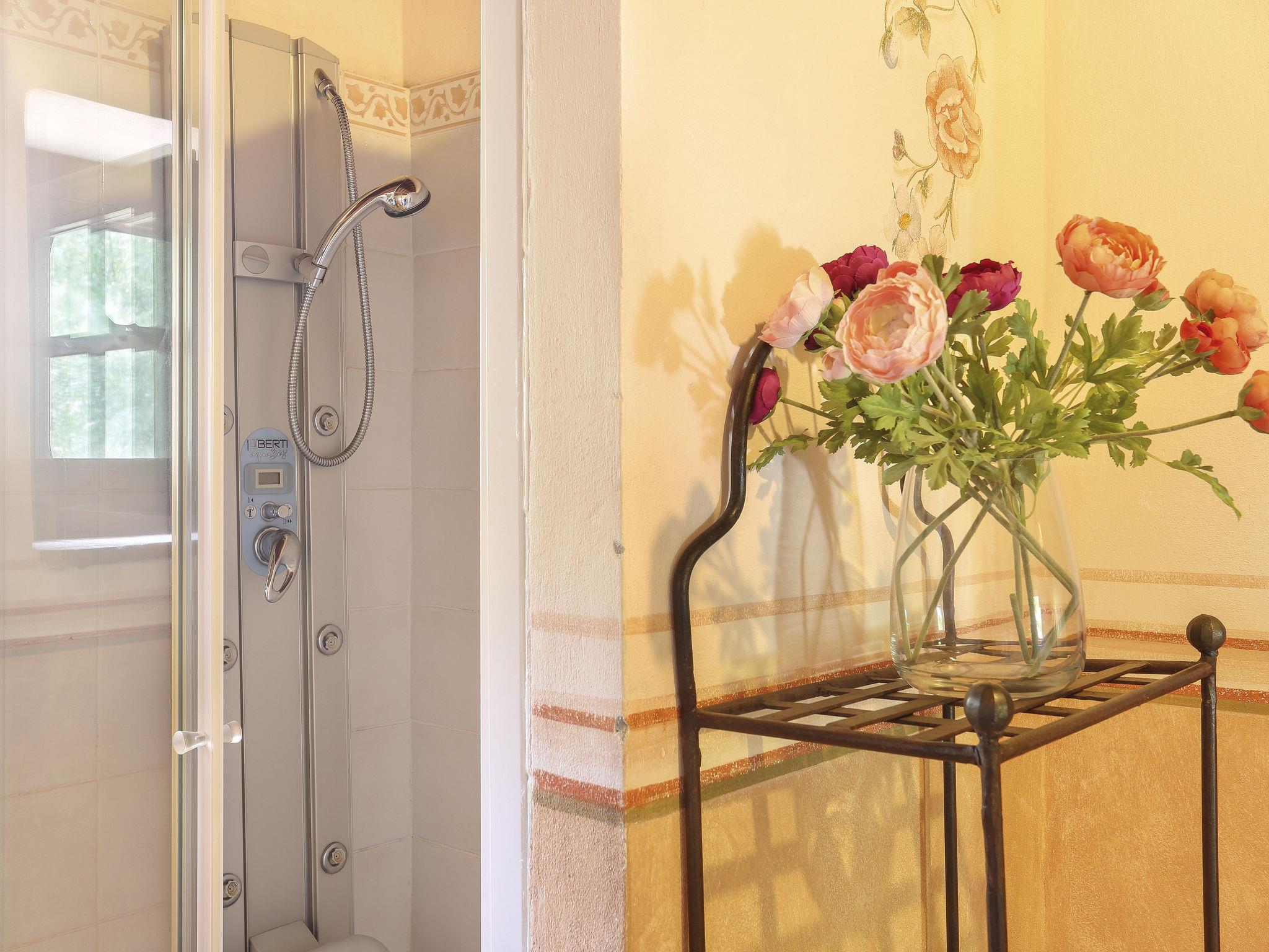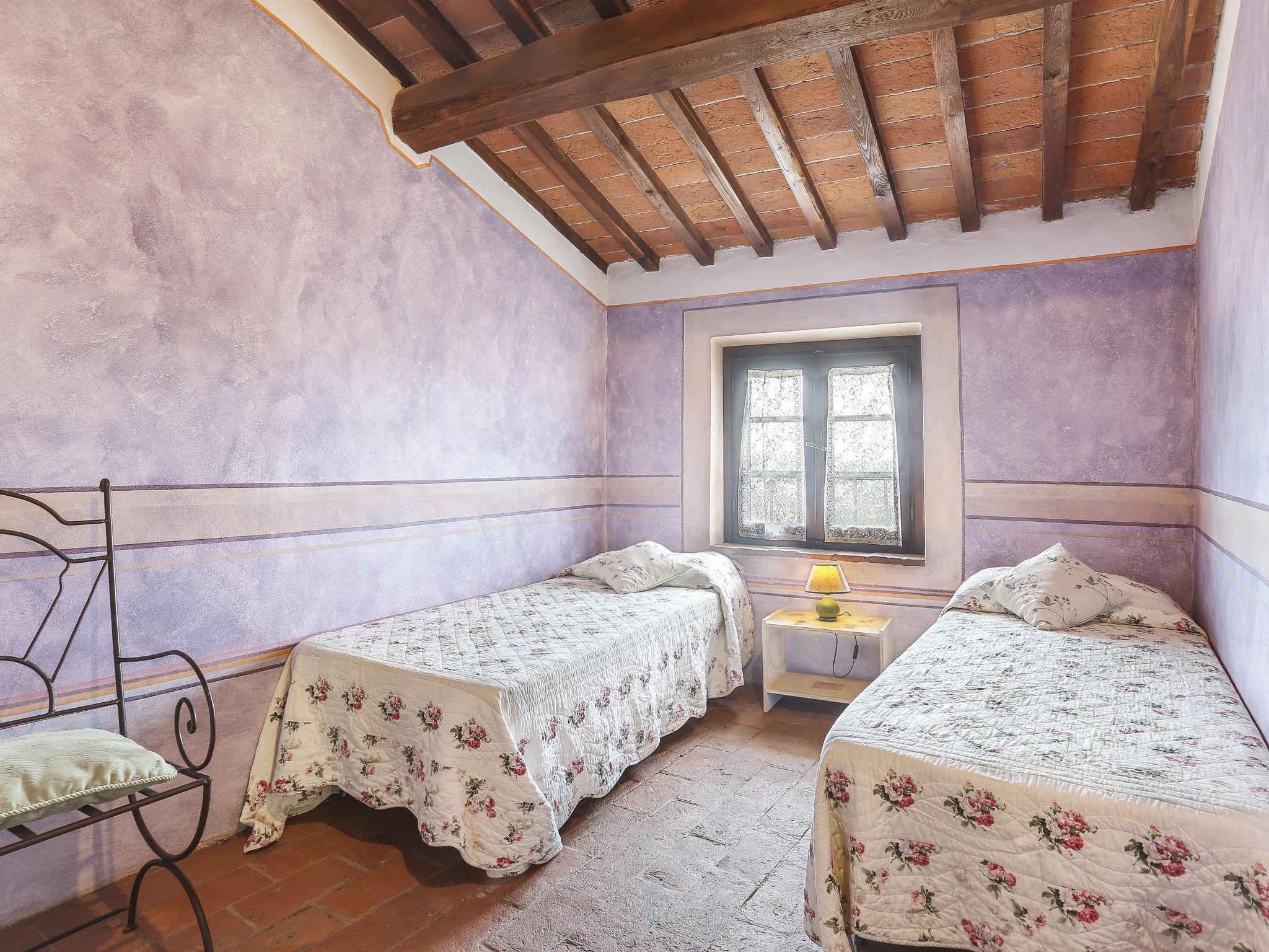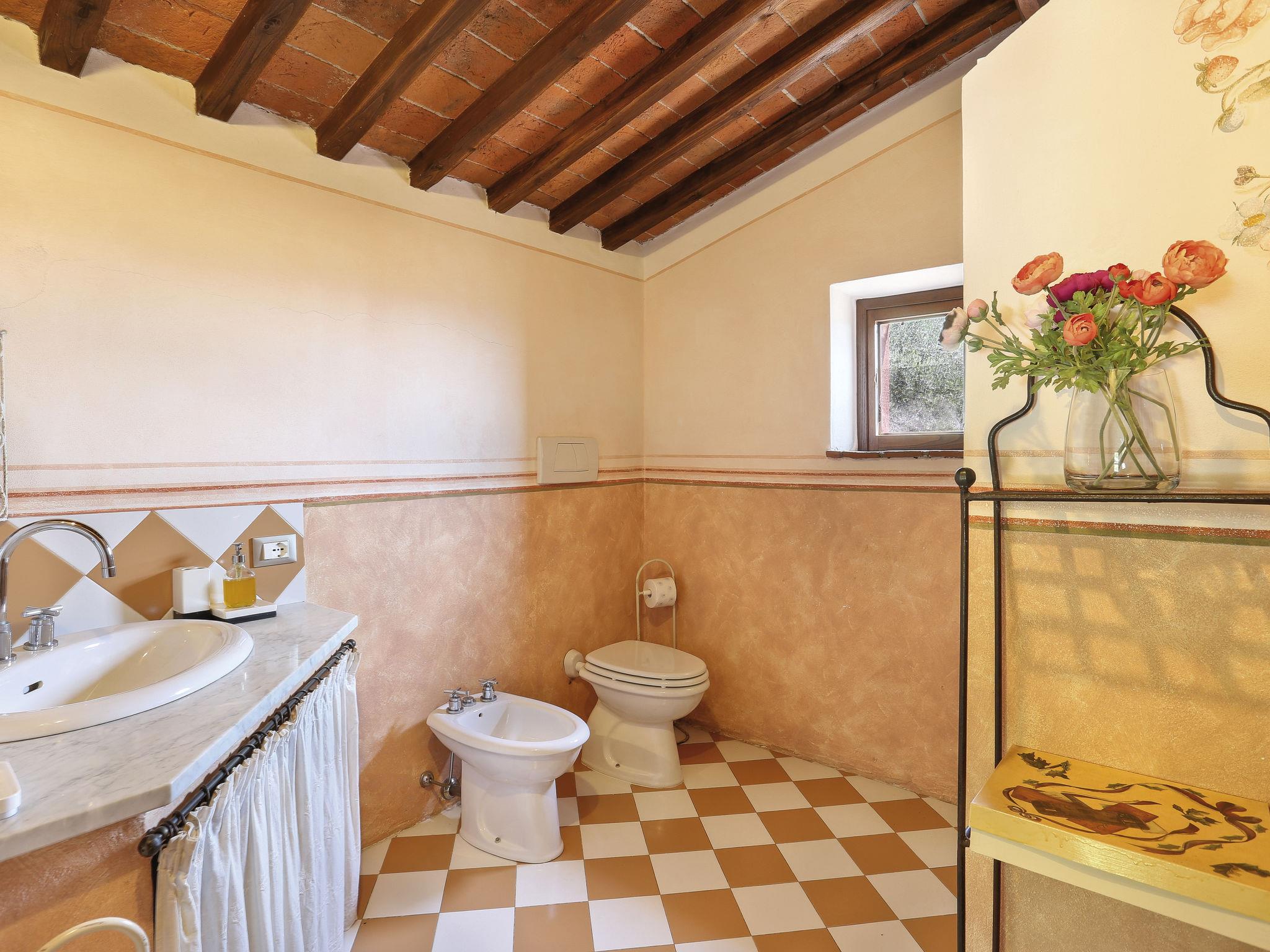 Farmhouse "San Bastiano", 160 m a.s.l., detached, renovated. 2 apartments in the property. 1 km from the centre of Buti, 24 km from the centre of Lucca, 25 km from the centre of Pisa, in a secluded position on a slope, 40 km from the sea. For shared use: property 10'000 m2 (fenced), terraced garden with trees, meadow, swimming pool (13 x 5 m, depth 116 - 240 cm, seasonal availability: 02.May. - 03.Oct.). Outdoor shower, children's playground. In the house: washing machine (for shared use). 2 km long narrow motor access (mountain road). Parking on the premises. Shop 1 km, supermarket 3.6 km, bus stop 900 m, park "Marina di Pisa" 40 km. Please note: the owner lives on the same property. Possibility of direct sale of oil on the spot.