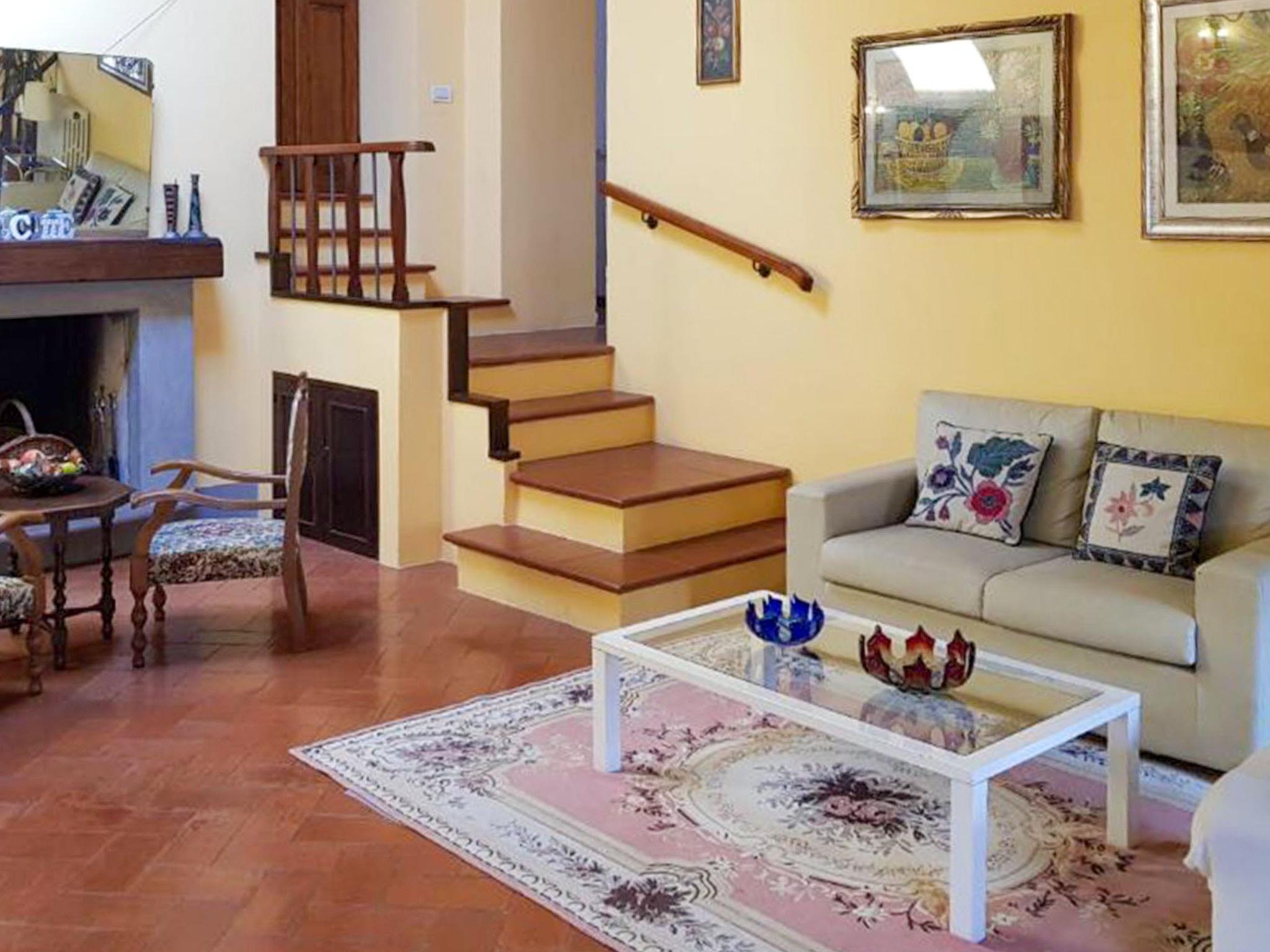"Appartamento Valle Verde", 5-room apartment 130 m2 on 2nd floor. Comfortable and cosy furnishings: living room with open-hearth fireplace, satellite TV and fan. Dining room with fan. 1 room with 1 bed, 1 double bed, bath/bidet/WC and air conditioning. 1 double bedroom with air conditioning. Open gallery with sloping ceilings with 2 beds and shower/bidet/WC. Kitchenette (4 hot plates, oven, dishwasher, toaster, kettle, microwave, freezer). Sep. WC. Large terrace 25 m2. Terrace furniture, barbecue. Panoramic view of the countryside and the city. Facilities: washing machine, iron, baby cot for up to 2 year olds, hair dryer. Internet (WiFi, free). Suitable for families. Under-terrace room with gymnastic equipment (small gym). From the living room to the other rooms is accessed via four steps. IT050002C2JES8IEMK