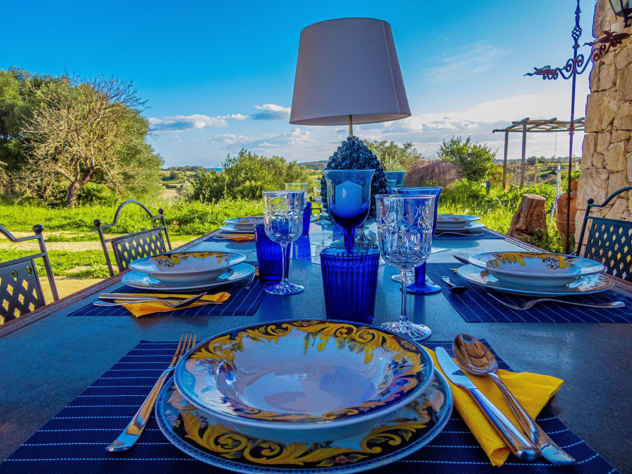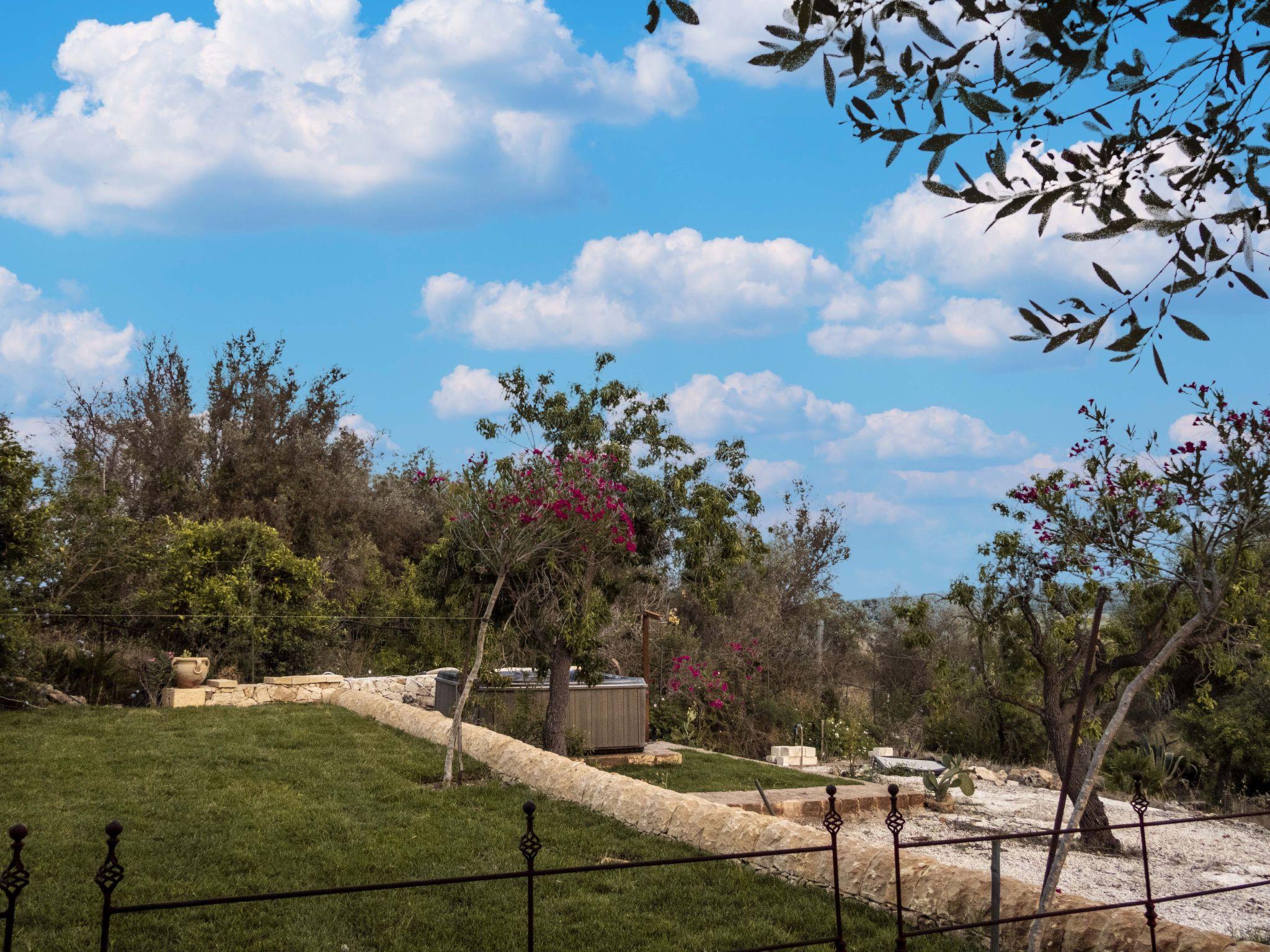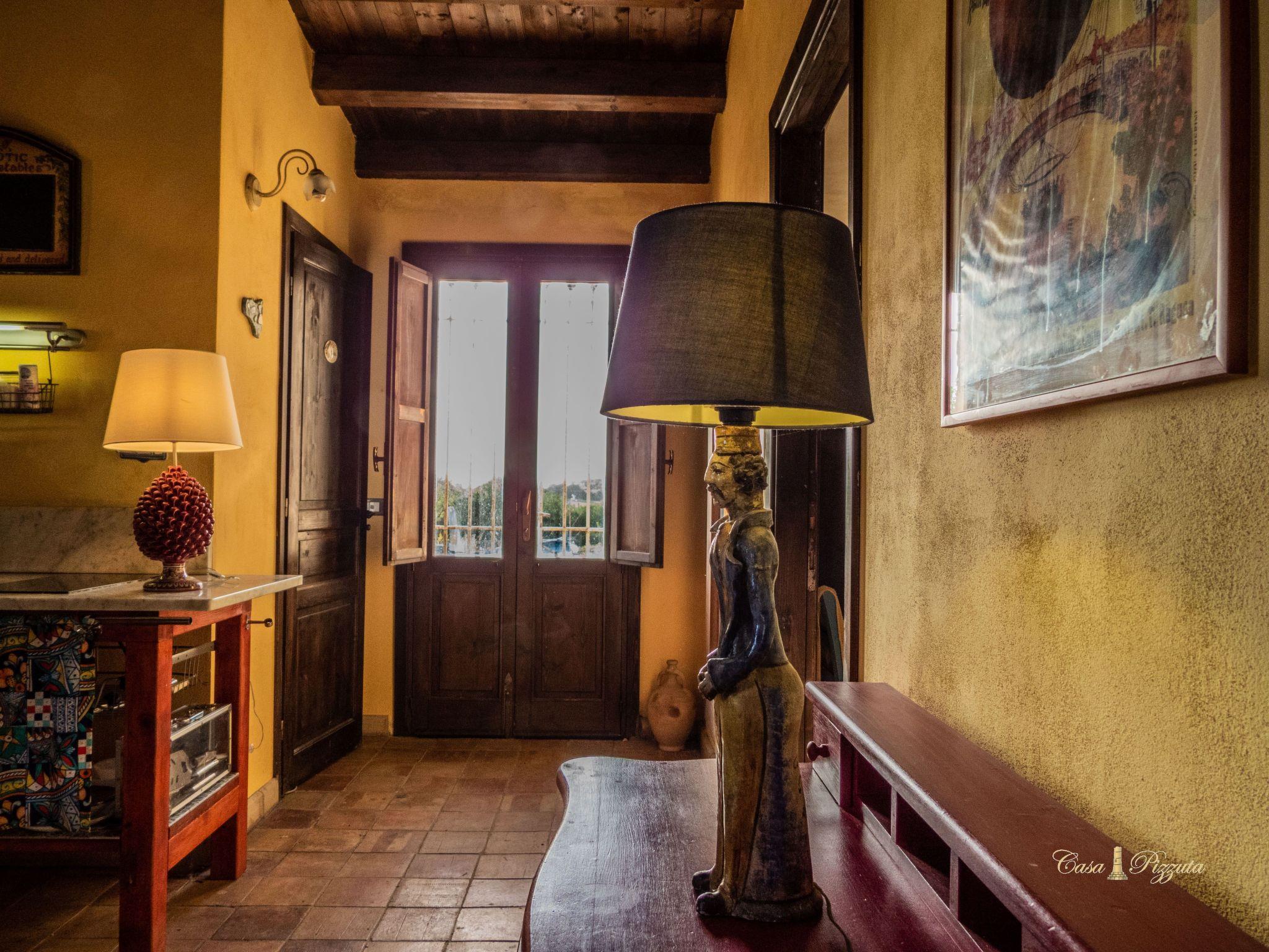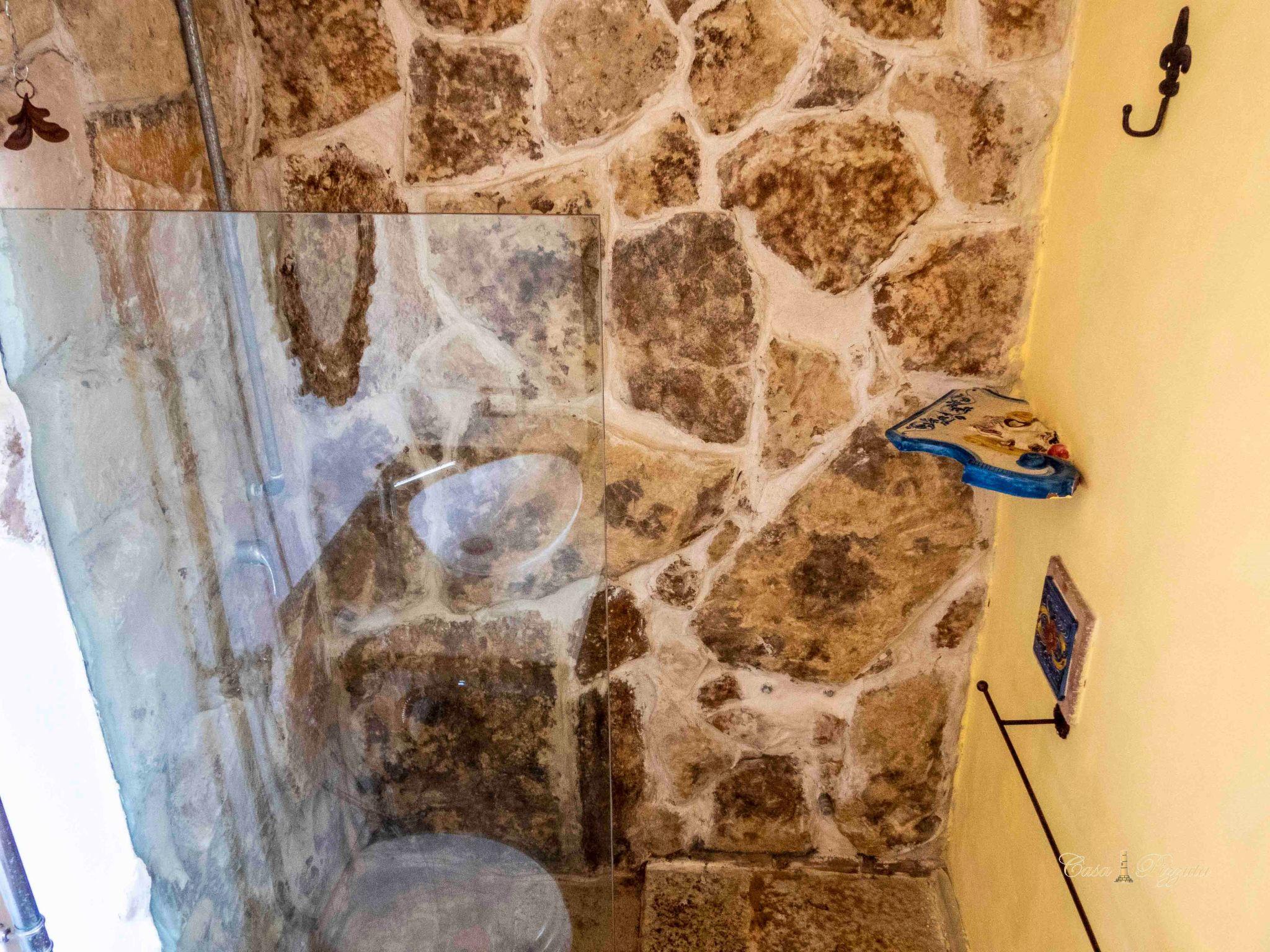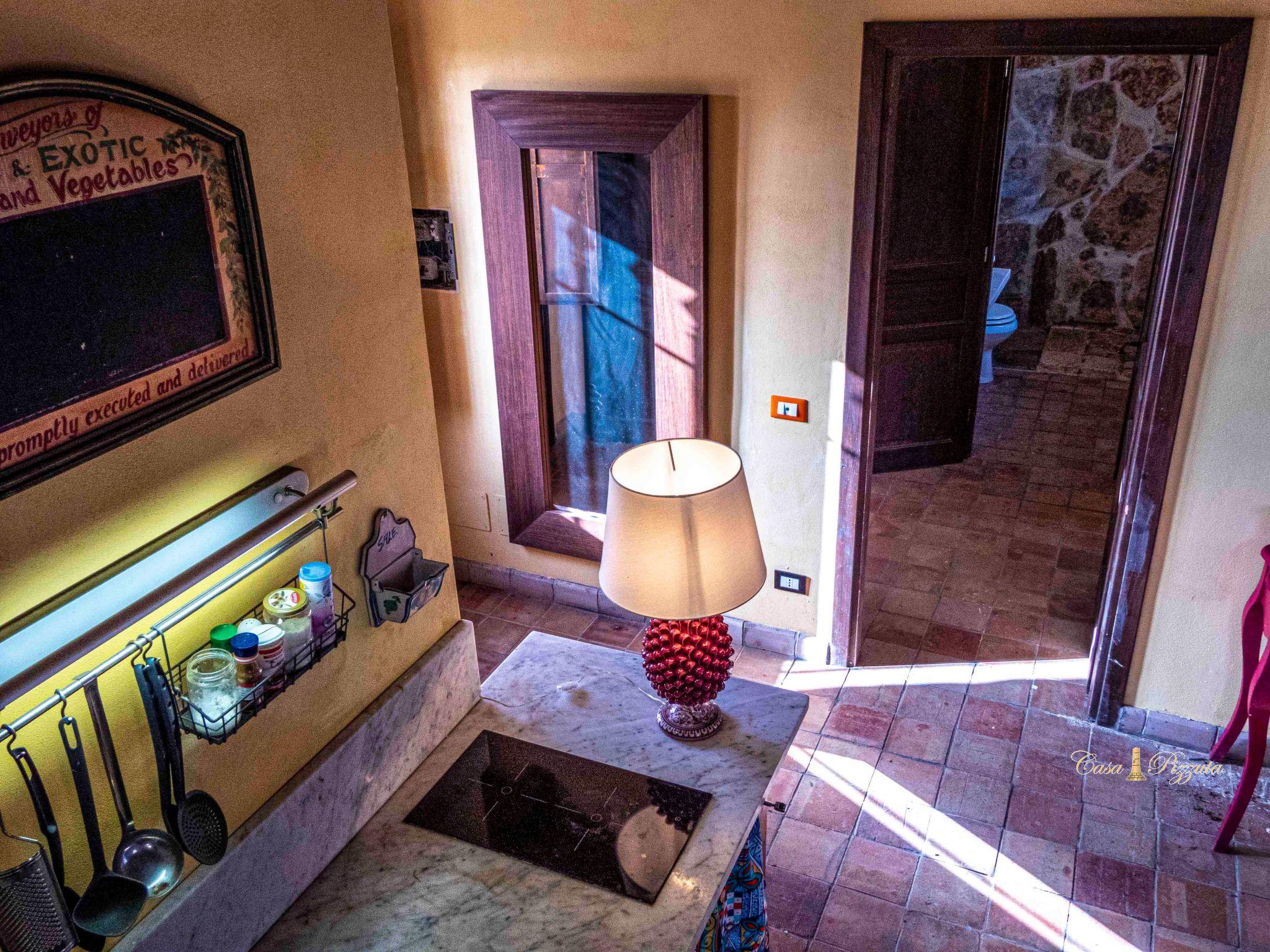 A white stone house situated on a gentle hillside with beautiful views of the Vendicari coastline. A dirt road climbs from a pristine golden sandy beach inland to a gate. Behind this hides Casa Pizzuta amidst the olive trees of a vast estate that borders in the distance on the excavations of Eloro, a Greek city dating back to the 5th century BC that was destroyed during the conquest of Sicily by the Arabs. Casa Pizzuta offers the wonderful combination of a beautiful natural environment, rural and marine at the same time. In fact, 600 metres from the house is one of the most beautiful beaches in Sicily, with its golden sand surrounded by fragrant hedges of rosemary, thyme, myrtle, boxwood and lentiscus, typical of the Mediterranean maquis, and interspersed with white sandstone cliffs that plunge into an incredible turquoise sea. To the south of this beach is the Vendicari coastal reserve that extends for 10 km to San Lorenzo, near the fishing village of Marzamemi. Just north of the beach is the small seaside resort of Lido di Noto, which has a promenade with bars, ice cream parlours and a beautiful beach. The baroque town of Noto, a UNESCO heritage site, is 6 km away. Casa Pizzuta has a large garden with many almond trees. The house has a large covered terrace and consists of a double bedroom, two nice bathrooms with bidet, shower and toilet and a living room with a basic kitchen, a dining table and a double sofa bed. From the living room there is access to a covered terrace. Further into the garden is another terrace with deck chairs and a beautiful view of the coast. A white stone house situated on a hill with beautiful views of the coast of Vendicari. A dirt road climbs, starting with a pristine golden sand beach, inland and leads up to a gate. Behind this lurks Casa Pizzuta among the olive trees of a large estate that borders in the distance with the excavations of Eloro, a Greek city dating from the fifth century BC which it was destroyed during the conquest of Sicily by the Arabs. Casa Pizzuta offers the wonderful combination of beautiful natural environment, rural and marine together. At 600 metres from the house in fact, it is located one of the most beautiful beaches of Sicily, with its golden sand surrounded by fragrant hedges of rosemary, thyme, myrtle, boxwood and mastic trees, typical of the Mediterranean, and interspersed with white sandstone cliffs They immerse themselves in an incredible turquoise sea. To the south of this beach there is the coastal reserve of Vendicari that extends for 10 km until San Lorenzo, near the village of Marzamemi. Just north of the beach there is the small seaside resort of Lido di Noto, this has a promenade with cafes, ice cream shops and a beautiful beach. At 6 km is the baroque town of Noto, heritage of 'UNESCO. Casa Pizzuta has a large garden with lots of almond trees. The house has a large covered terrace and consists of a double bedroom, two nice bathrooms with bidet, shower and toilet and a living room with a basic kitchen, a dining table and a sofa bed. The living room leads to a covered terrace. Further out in the garden there is another terrace with deck chairs and a beautiful view of the coast.