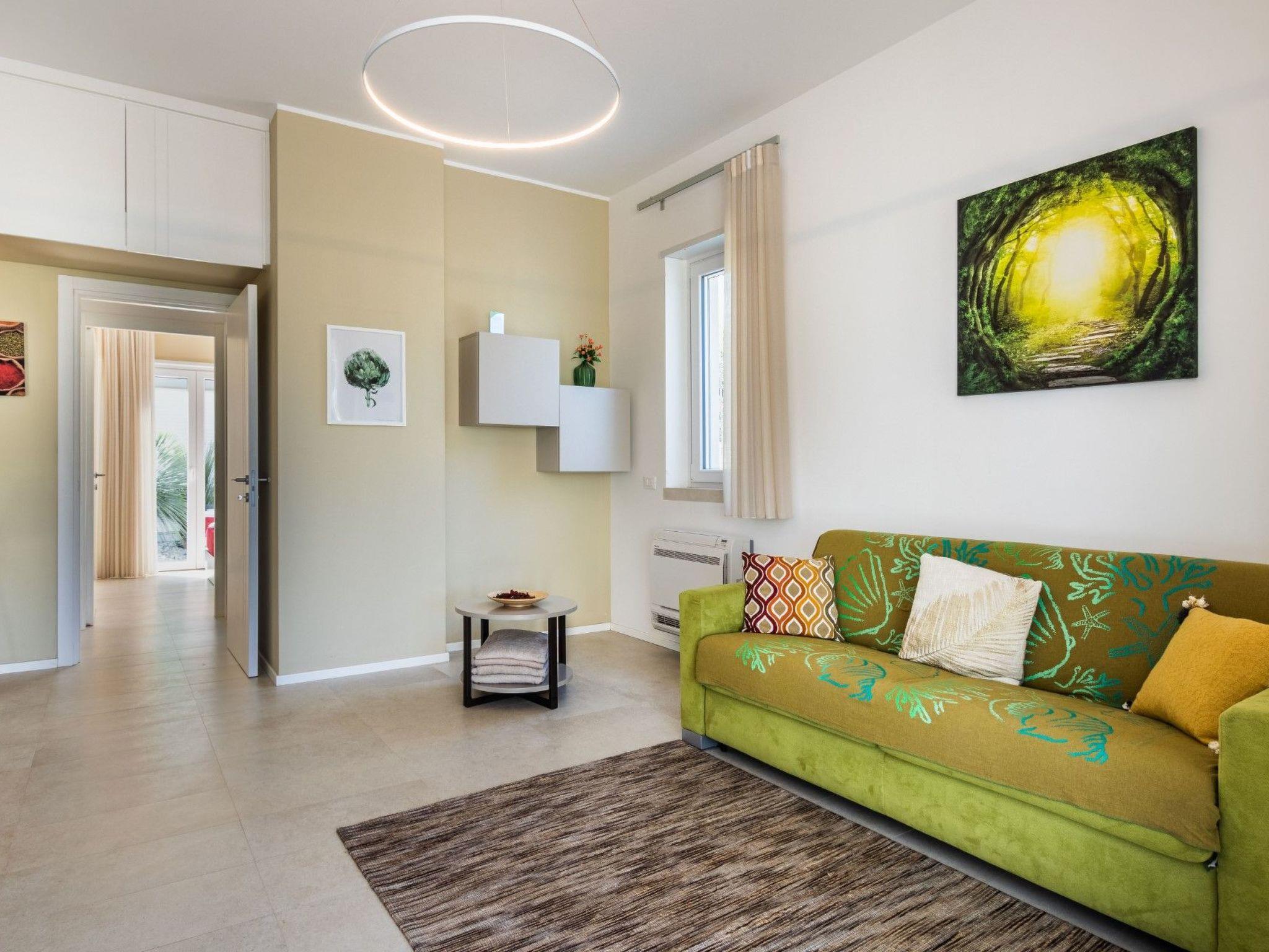 It has two bedrooms, bathroom, kitchen and living room with double sofa bed for each villa, double bedroom with bathroom and shower for the dependance. Each villa has its own private outdoor Jacuzzi.