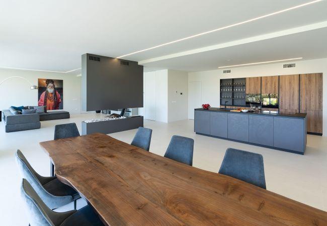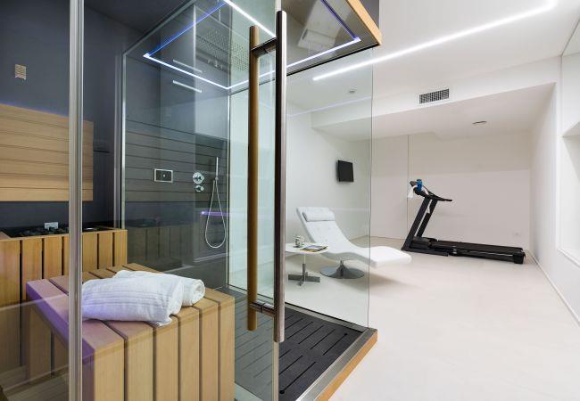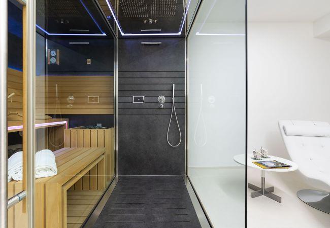 MANOR HOUSE Ground Floor: Large living area with lounge, dining room and kitchen, 1 bathroom with shower, laundry, 1 double bedroom with Jacuzzi and en-suite shower, 2 double bedrooms with en-suite shower, wellness area (sauna). First Floor (accessed from outside): living/dining room, kitchen, 1 double bedroom (king size bed) with en-suite shower, 1 twin bedroom, 1 bathroom (toilet-washbasin). ANNEX Ground floor: 2 double bedrooms (not communicating) with bathroom-shower. Patio with pergola, garden.