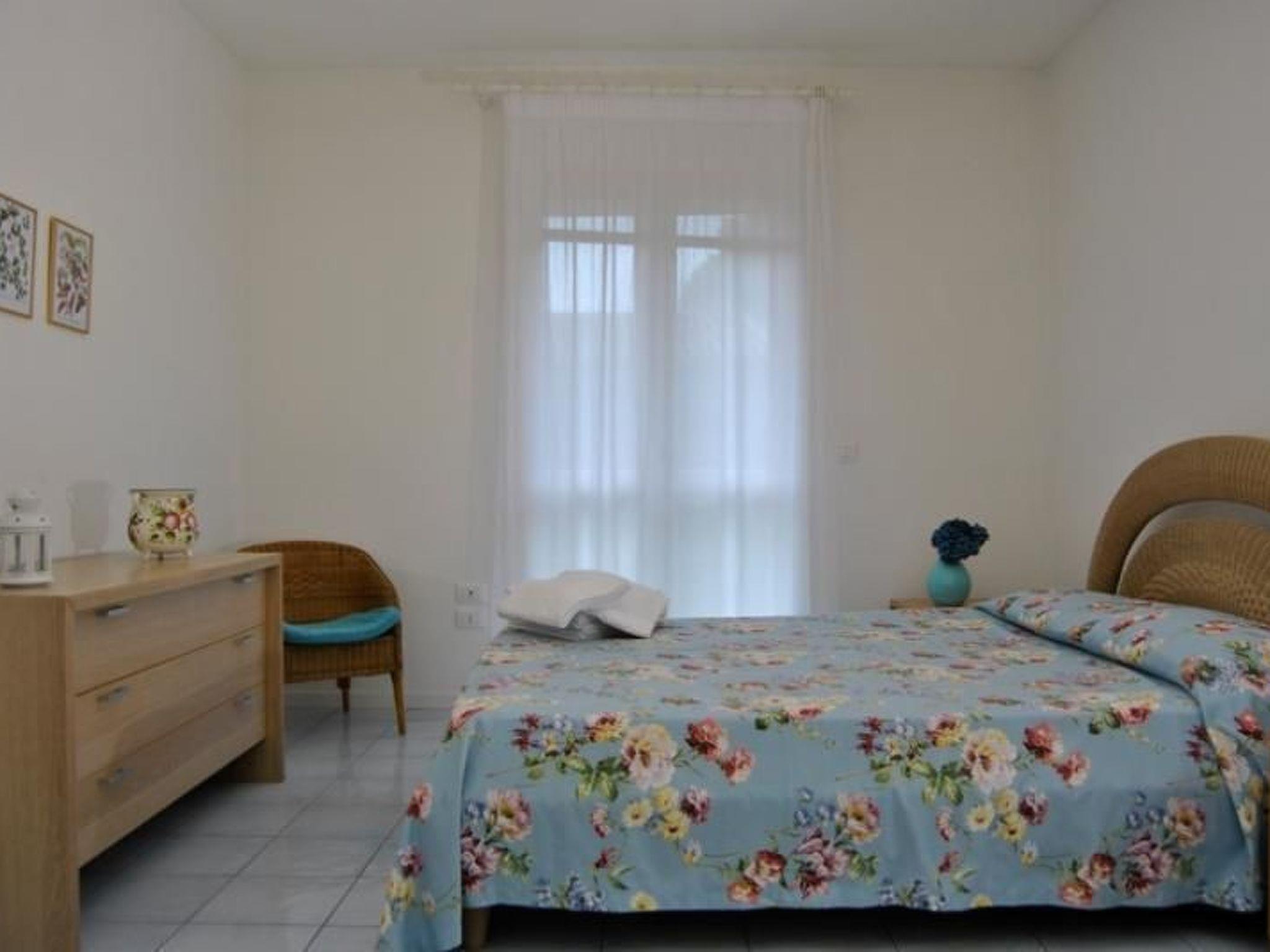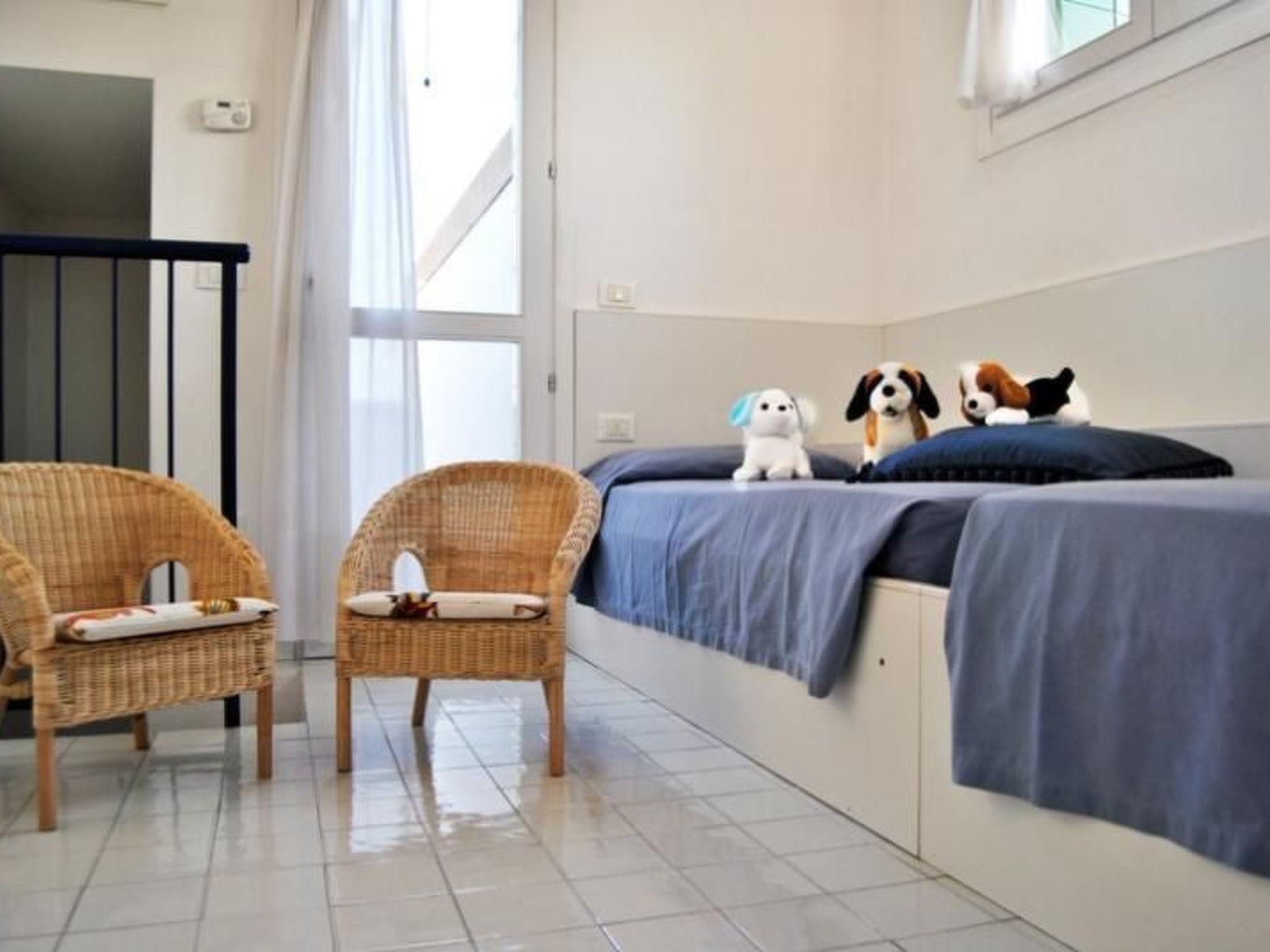 Each flat in the Tamerici Residence comfortably accommodates up to 6 people. Each consists of a spacious living room with a beautiful loggia overlooking the garden, where it is possible to dine in the shade of an awning that can be opened. In the living room there is also a fully equipped kitchen and a sofa; bedroom with double bed and two bedrooms with single beds overlooking the garden; bathroom.