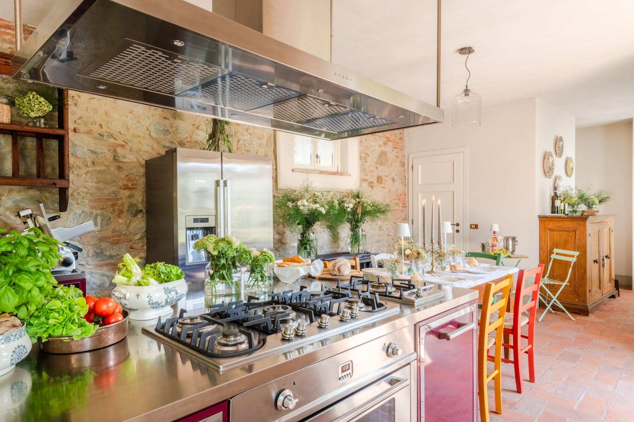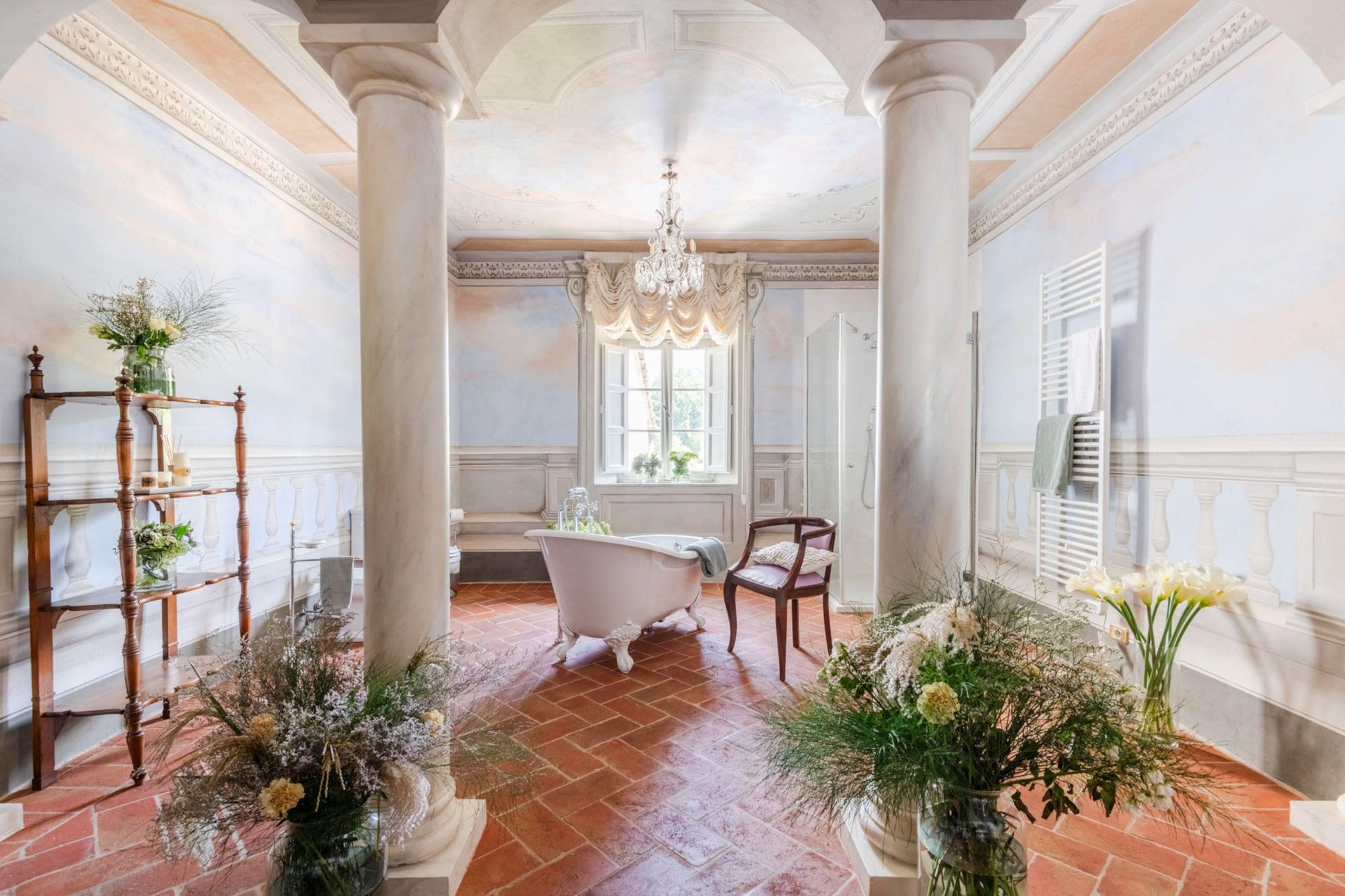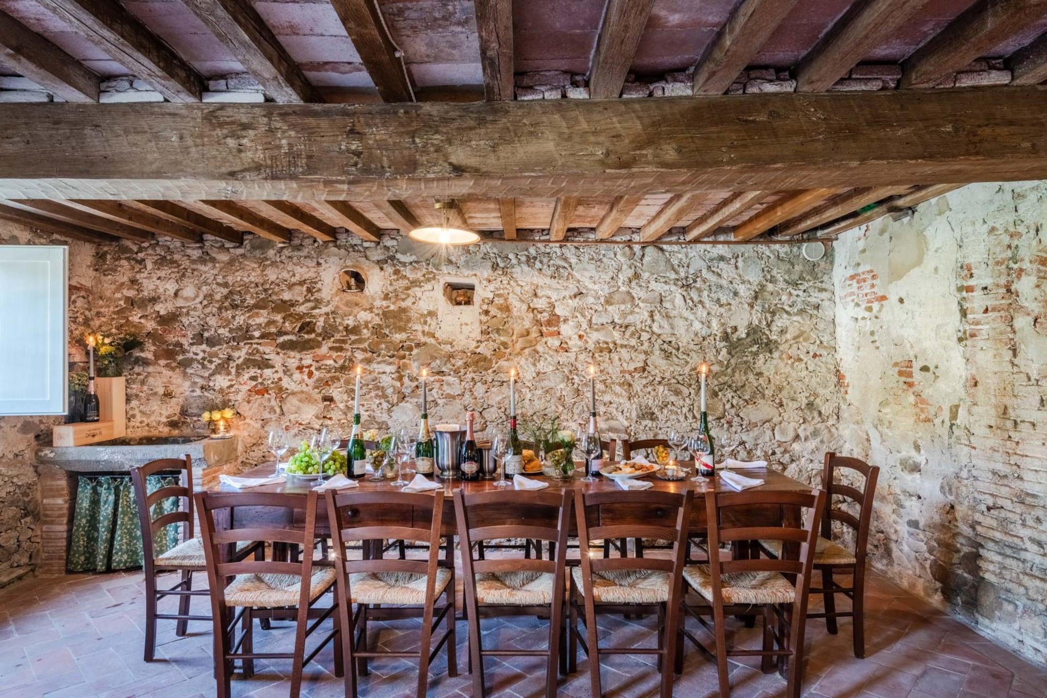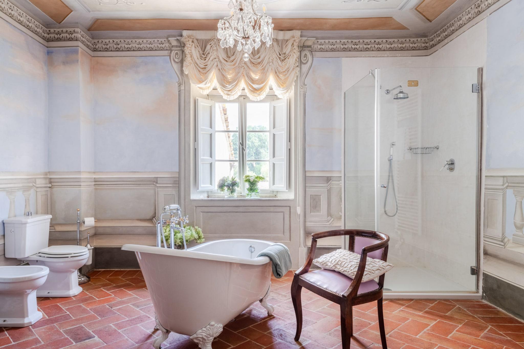 Denne ekstraordinære villaen ligger ved foten av de pittoreske Lucca-åsene, og inviterer deg til en virkelig unik flukt. Den er fullt klimaanlegg for moderne komfort, omgitt av frodige vingårder og omhyggelig velstelte hager, noe som skaper et idyllisk tilfluktssted fra omverdenens kjas og mas. Den store terrassen, som dateres tilbake til 1600-tallet, tilbyr fengslende panoramautsikt over bølgende åser, hvor fantastiske solnedganger kaster nyanser av rosa og oransje over de fjerne vinmarkene. Et sant høydepunkt er den store, overbygde terrassen som er tilgjengelig fra kjøkkenet i første etasje, med en stor utendørs spiseplass med plass til 20 personer – ideelt for å arrangere overdådige måltider med familie og venner. Utstyrt med en grill, inviterer den deg til å nyte utendørs servering mens du nyter den fredelige skjønnheten i det toskanske landskapet. Innvendig blander villaen harmonisk historisk eleganse med moderne luksus; hvert rom har originale møbler sammen med splitter nye king-size-senger og toppmoderne klimaanlegg. Opplev sjarmen til en historisk vinkjeller, hvor vinfat danner scenen for private smaksprøver, og nyt koselige kvelder ved peisen i tradisjonelle kjøkken. Ta en tur ut for å slappe av ved det store bassenget (13m x 6m) med et avslappende boblebad, omgitt av fredelige hager. Villaens førsteklasses beliggenhet gir enkel tilgang til Luccas historiske sentrum og pulserende bymurer, samtidig som du har enkel tilgang til ikoniske destinasjoner som Firenze, Pisa, Cinque Terre og de vakre strendene i Versilia. Denne villaen lover en autentisk toskansk opplevelse, og fungerer som det perfekte fristedet for de som søker avslapning uten å forlate Italias rike kultur og fantastiske landskap. Nyt kjøkkenet i drivhuset på forespørsel mot et tillegg i prisen, noe som forsterker den luksuriøse opplevelsen. Merk: Turistskatt betales på eiendommen.