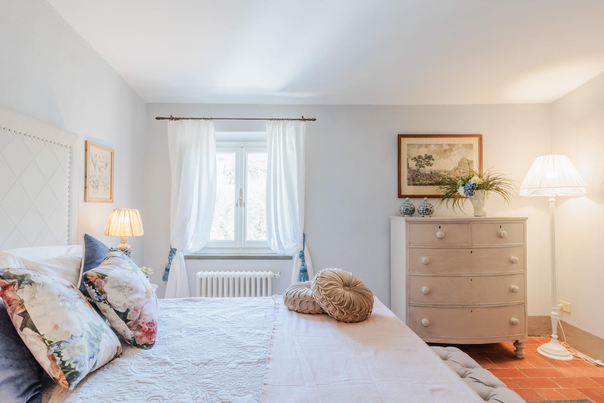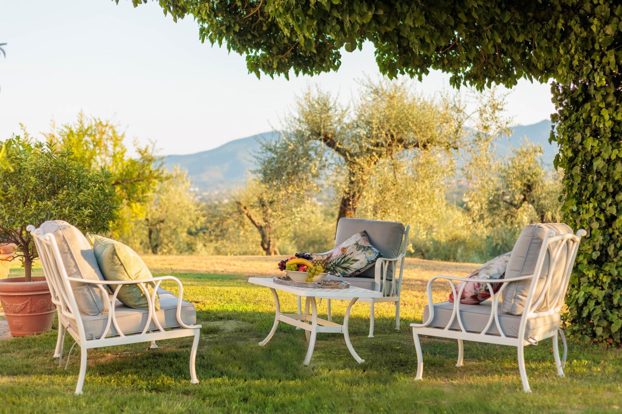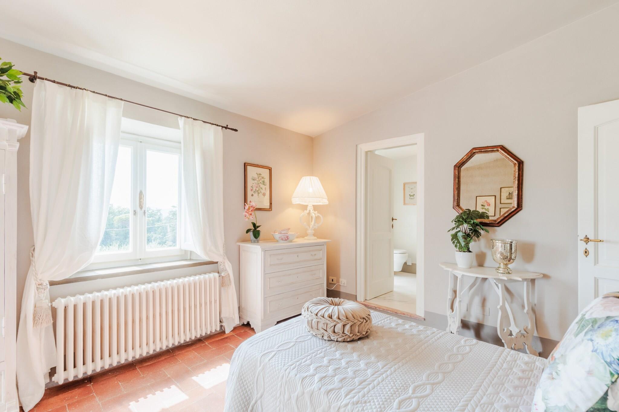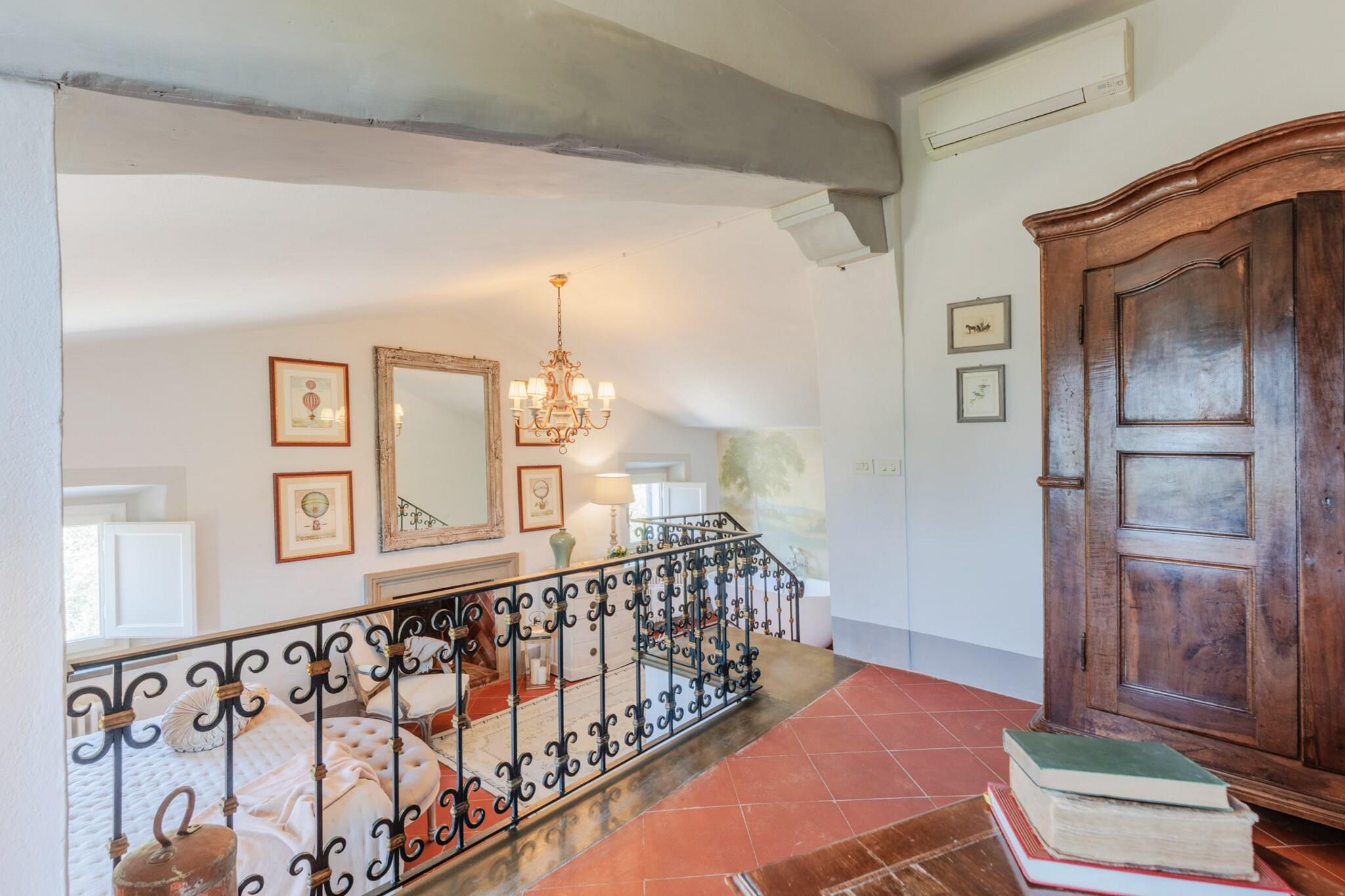 Dette sjarmerende gårdshuset ligger på en ås med utsikt over Lucca, og tilbyr fantastisk utsikt over de omkringliggende åsene. Det ble nylig renovert og blander rustikk sjarm med moderne luksus, og har plass til opptil seksten gjester – noe som gjør det til et ideelt sted for familiesammenkomster eller romantiske utflukter i hjertet av Toscana. De rolige uteområdene er perfekte for avslapning og bespisning, mens interiøret kan skilte med romslige hovedsoverom, marmorbad og et fullt utstyrt kjøkken for en hotelllignende opplevelse. Eiendommen har åtte vakkert innredede soverom, inkludert to i første etasje for enkel tilgang. Mange rom åpner ut mot private balkonger eller verandaer, og den beroligende lyden av vinden som rasler gjennom nesten 700 oliventrær gir en rolig atmosfære, supplert av produksjonen av utsøkt olivenolje. Hvert soverom tilbyr en perfekt blanding av rustikk sjarm og moderne komfort, noe som sikrer et avslappende opphold for alle. Våningshuset har en beleilig beliggenhet like utenfor Marlia, bare en kort kjøretur fra Luccas historiske sentrum, med en rekke butikker og restauranter i nærheten. Gjestene kan slappe av ved evighetsbassenget eller ta et bad i boblebadet mens de nyter spektakulær utsikt. Om kveldene kan du grille ferske, lokale råvarer eller leie en privat kokk for å lage deilig italiensk mat. Utforsk den rike historien i regionen, med Luccas romerske amfiteater bare noen minutter unna og ikoniske byer som Pisa, Firenze og San Gimignano innen en times kjøretur, slik at du kan oppleve både det fantastiske landskapet og roen i Toscana. Merk: Turistskatt skal betales på eiendommen.