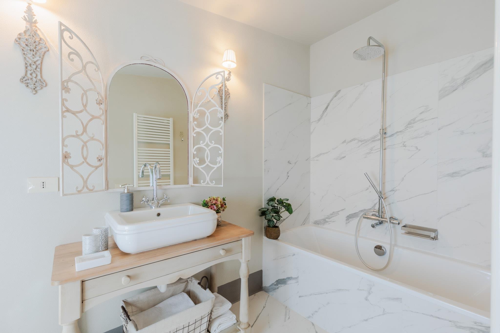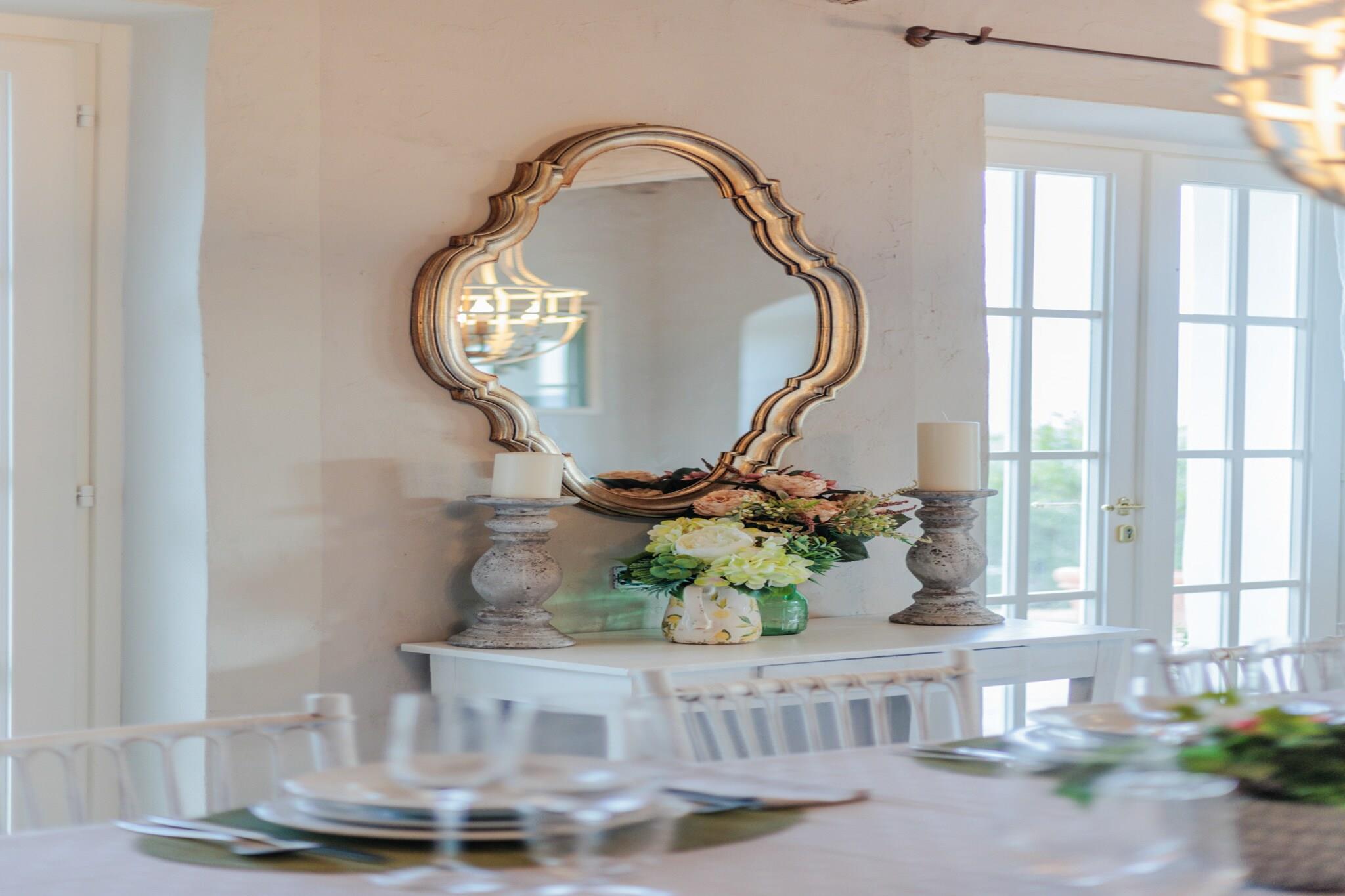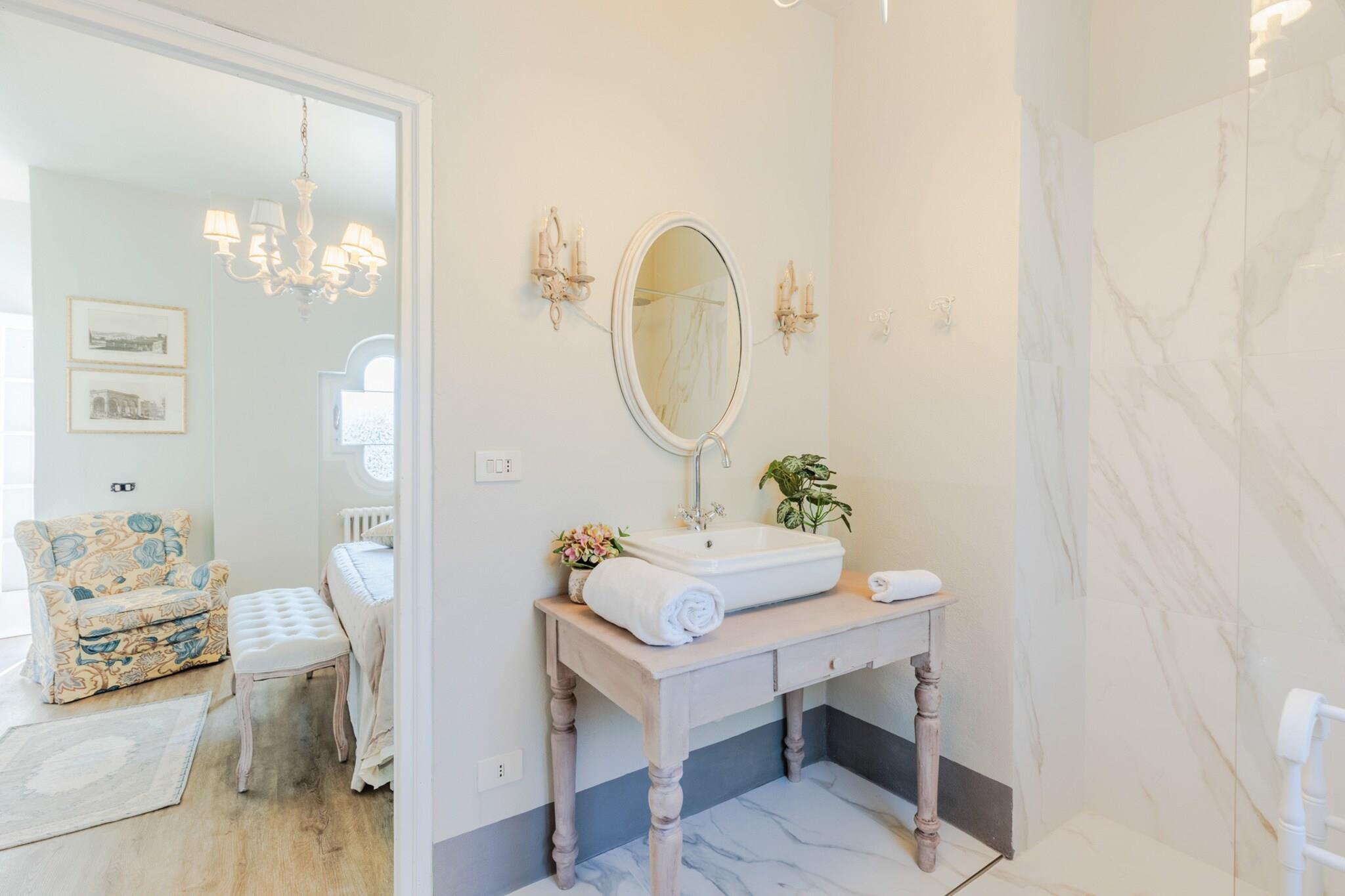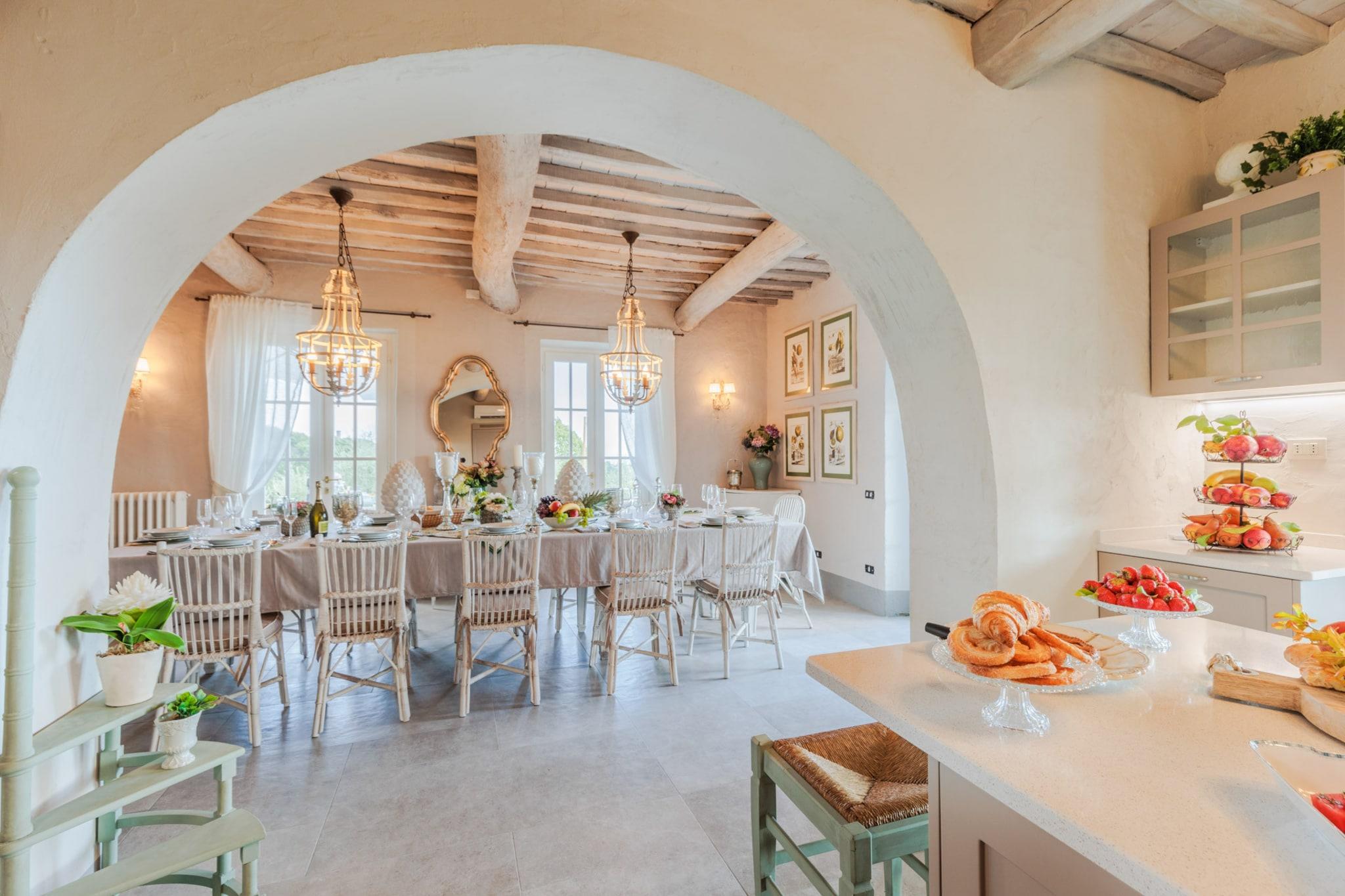 Dette sjarmerende gårdshuset ligger på en ås med utsikt over Lucca, og tilbyr fantastisk utsikt over de omkringliggende åsene. Det ble nylig renovert og blander rustikk sjarm med moderne luksus, og har plass til opptil seksten gjester – noe som gjør det til et ideelt sted for familiesammenkomster eller romantiske utflukter i hjertet av Toscana. De rolige uteområdene er perfekte for avslapning og bespisning, mens interiøret kan skilte med romslige hovedsoverom, marmorbad og et fullt utstyrt kjøkken for en hotelllignende opplevelse. Eiendommen har åtte vakkert innredede soverom, inkludert to i første etasje for enkel tilgang. Mange rom åpner ut mot private balkonger eller verandaer, og den beroligende lyden av vinden som rasler gjennom nesten 700 oliventrær gir en rolig atmosfære, supplert av produksjonen av utsøkt olivenolje. Hvert soverom tilbyr en perfekt blanding av rustikk sjarm og moderne komfort, noe som sikrer et avslappende opphold for alle. Våningshuset har en beleilig beliggenhet like utenfor Marlia, bare en kort kjøretur fra Luccas historiske sentrum, med en rekke butikker og restauranter i nærheten. Gjestene kan slappe av ved evighetsbassenget eller ta et bad i boblebadet mens de nyter spektakulær utsikt. Om kveldene kan du grille ferske, lokale råvarer eller leie en privat kokk for å lage deilig italiensk mat. Utforsk den rike historien i regionen, med Luccas romerske amfiteater bare noen minutter unna og ikoniske byer som Pisa, Firenze og San Gimignano innen en times kjøretur, slik at du kan oppleve både det fantastiske landskapet og roen i Toscana. Merk: Turistskatt skal betales på eiendommen.