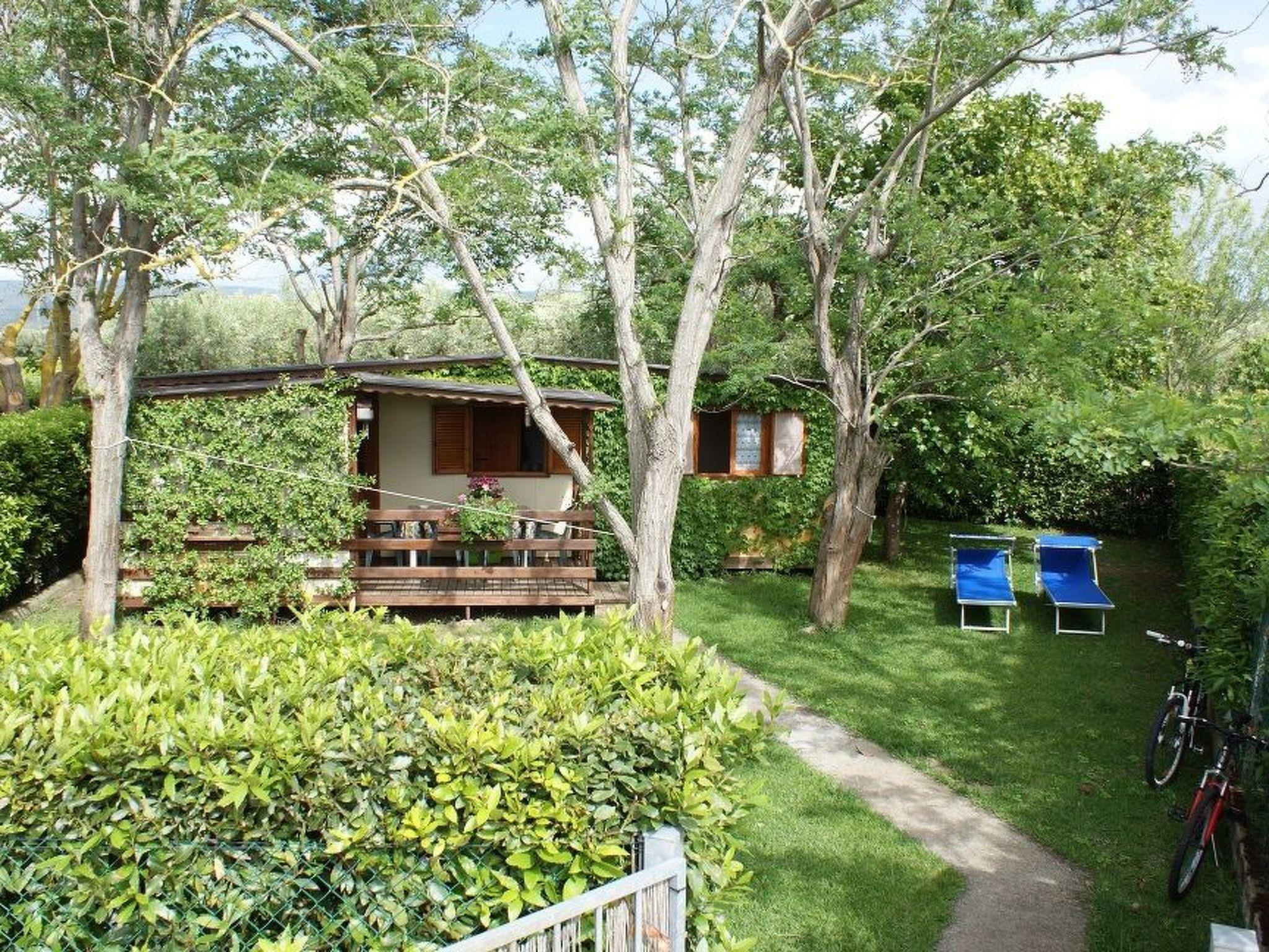 Outside, the chalet opens onto a covered wooden veranda, ideal for al fresco dining or simply enjoying the fresh air, furnished with a table and chairs. The private garden of about 150 square metres is a true piece of paradise, equipped with sun loungers for your moments of relaxation and a personal barbecue for unforgettable evenings of conviviality. The entire outdoor area is fenced off with a 180 cm high green metal mesh fence, ensuring privacy and security, and bordered by a delightful scented laurel hedge. In addition, you will have a private covered car park, to keep your car sheltered and close at hand.